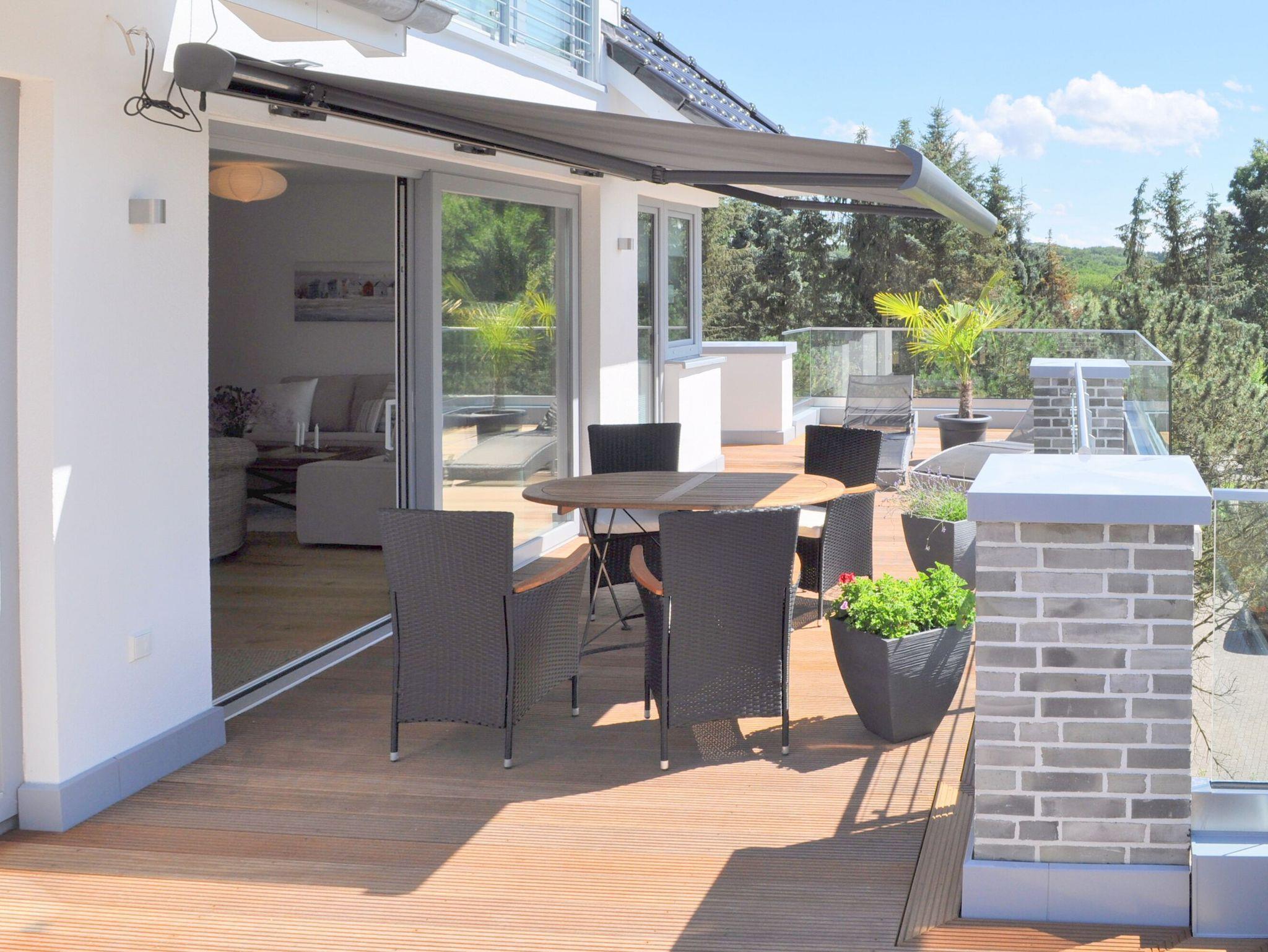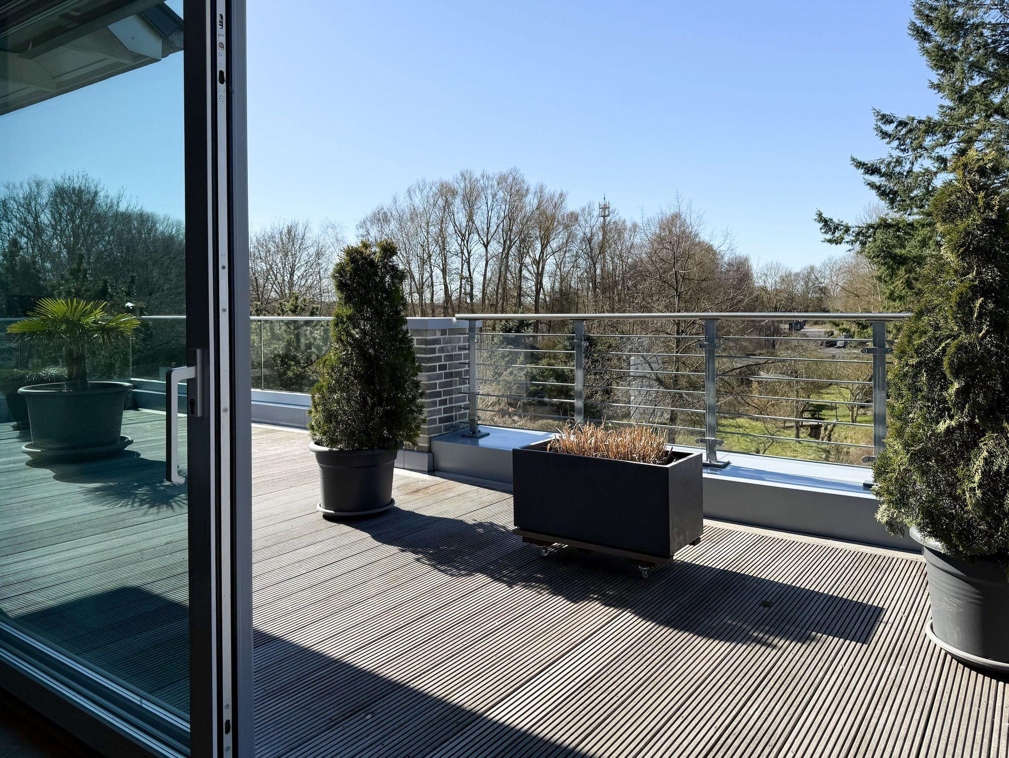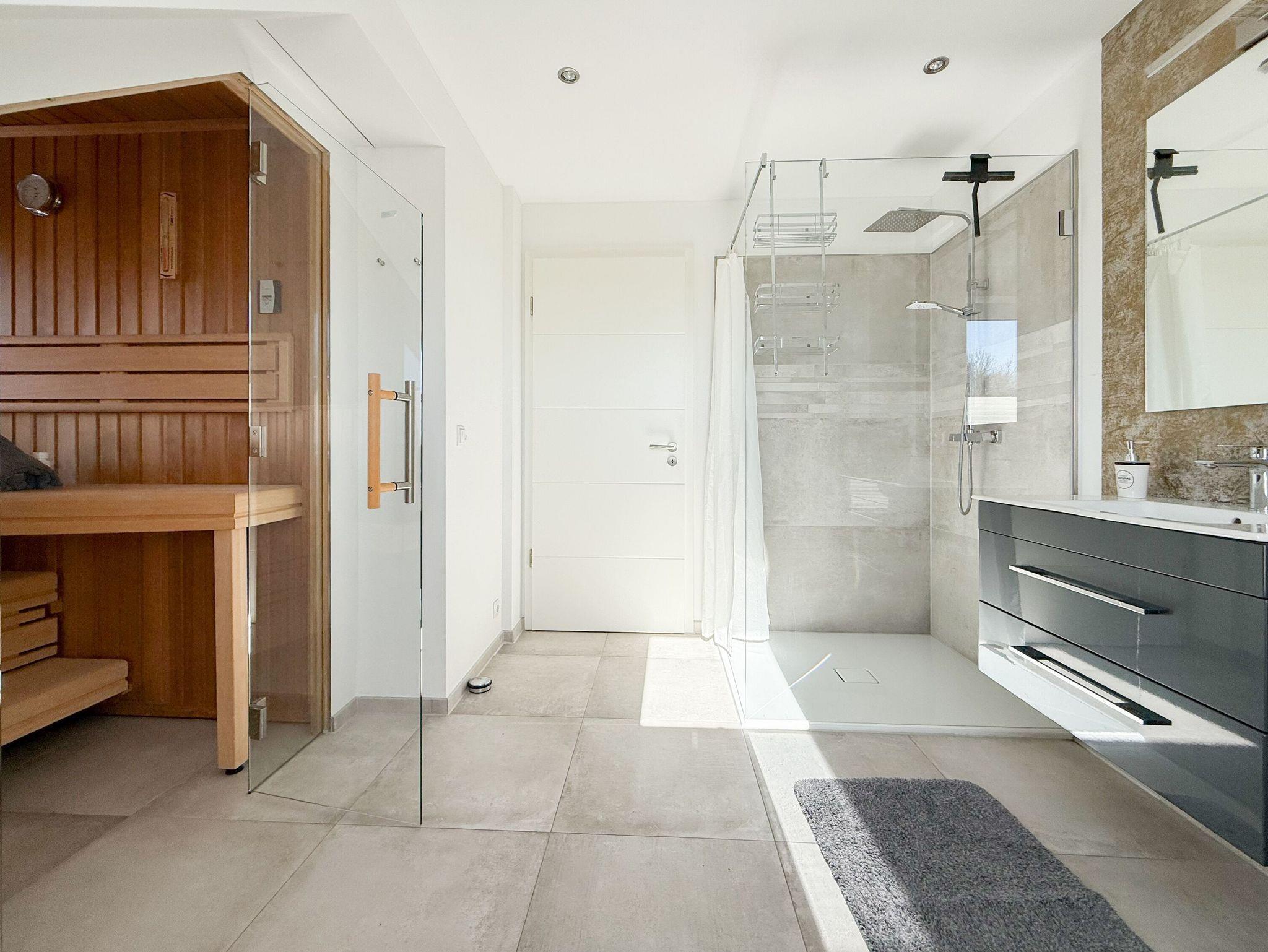 Das Penthouse ist hochwertig eingerichtet und bestens ausgestattet. Große, bodentiefe Fensterflächen durchfluten die Räumlichkeiten mit Tageslicht und sorgen für ein angenehmes Wohlfühlambiente ? ideal für einen entspannten Ostseeurlaub. Ein besonderes Highlight ist die großzügige, über 50 m² große Dachterrasse in Südwestausrichtung. Hier lassen sich die frische Meeresluft und den Hafenblick genießen ? ob auf den Sonnenliegen, an den Gartenmöbeln oder im Schatten der elektrischen Markise. Der offene Wohn- und Essbereich bietet viel Platz für gesellige Stunden. Ein Kaminofen (Holz nicht inklusive) sorgt für eine gemütliche Atmosphäre, und die moderne Einbauküche mit Kochinsel ist mit allen wichtigen Geräten ausgestattet ? perfekt für alle, die gerne gemeinsam kochen. Auf der unteren Wohnebene befindet sich eines der beiden stilvollen Bäder mit Dusche und Waschtisch sowie eine Sauna mit Blick ins Grüne. Die obere Ebene beherbergt zwei separate Schlafzimmer mit Doppelbetten (180x200 und 140x200 plus Schlafsessel), Verdunkelungsvorhängen und TV. Das kleine Schlafzimmer punktet mit einem tollen Blick auf den Hafen. Ein weiteres Badezimmer mit Badewanne rundet den Komfort ab. Das Penthouse bietet auf über 100 m² einen herrlichen Rückzugsort für 2-4 Personen mit der ganz besonderen Atmosphäre des Hafens.
