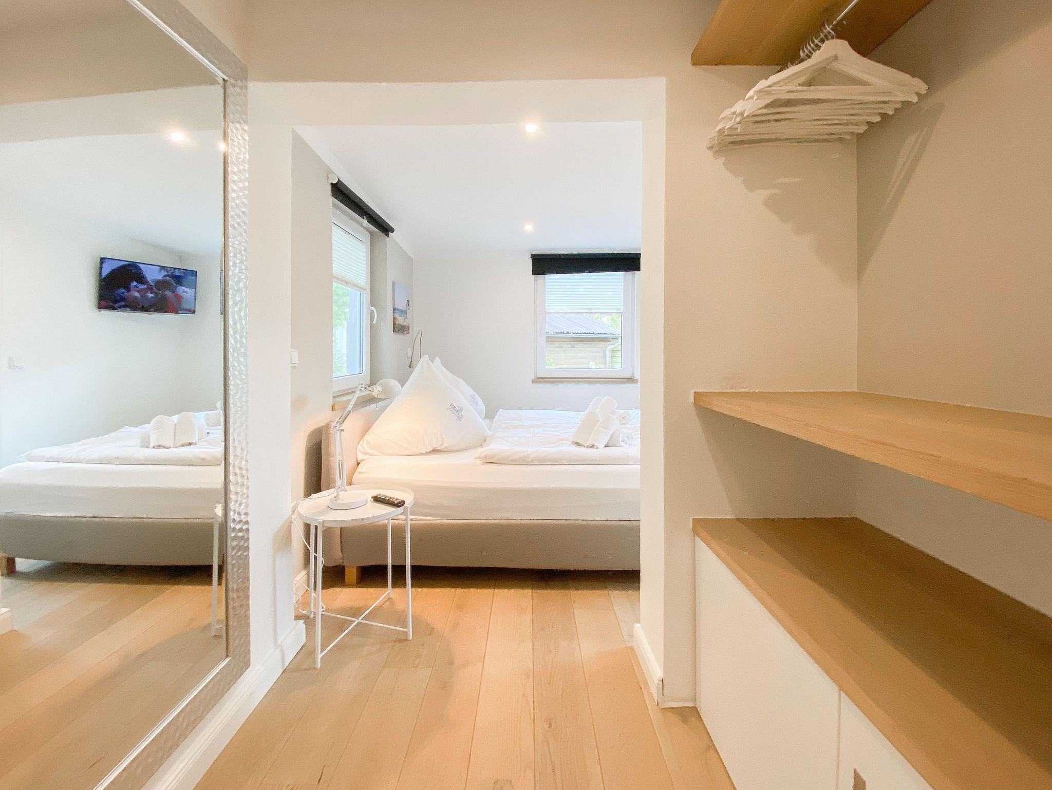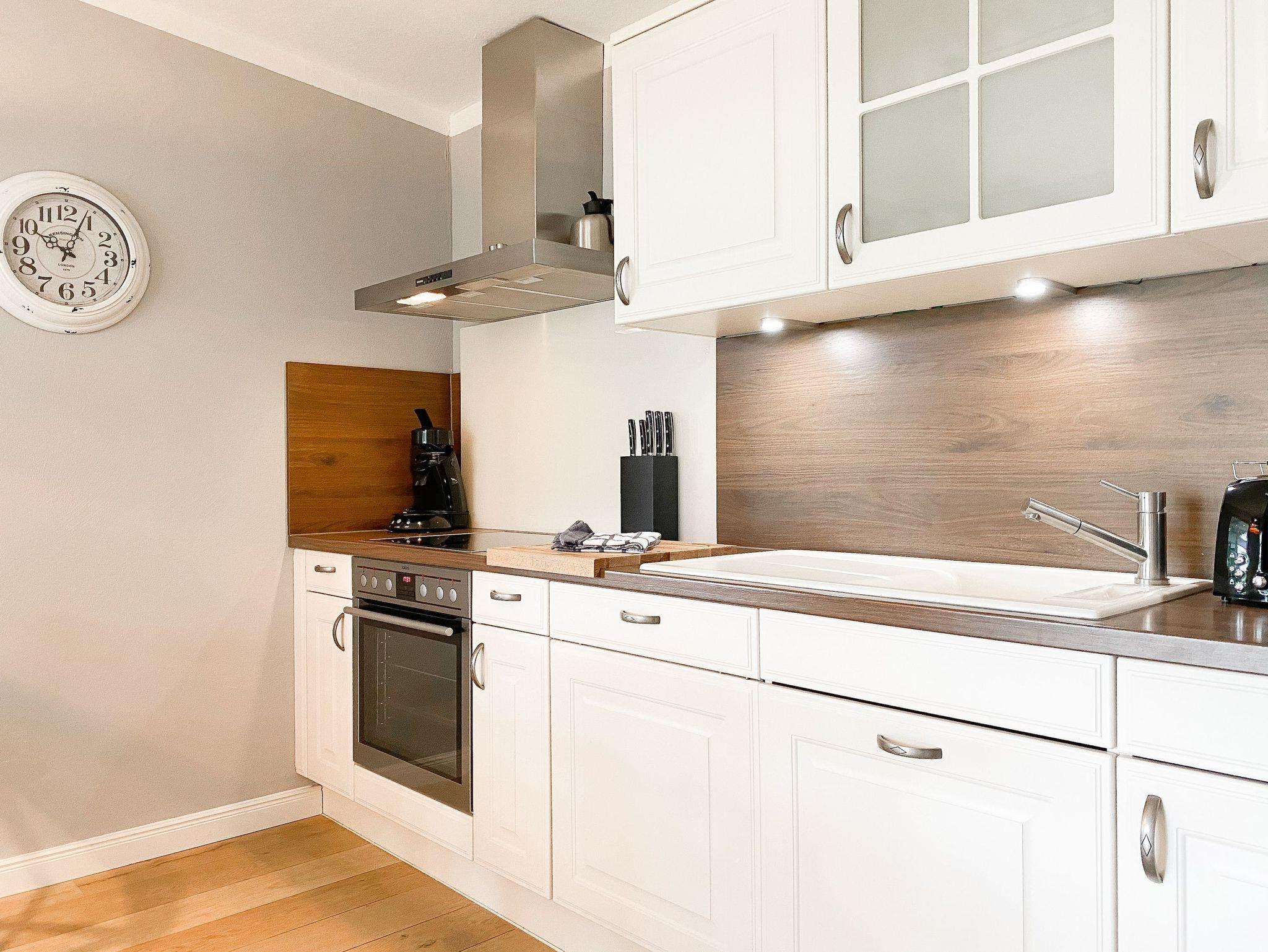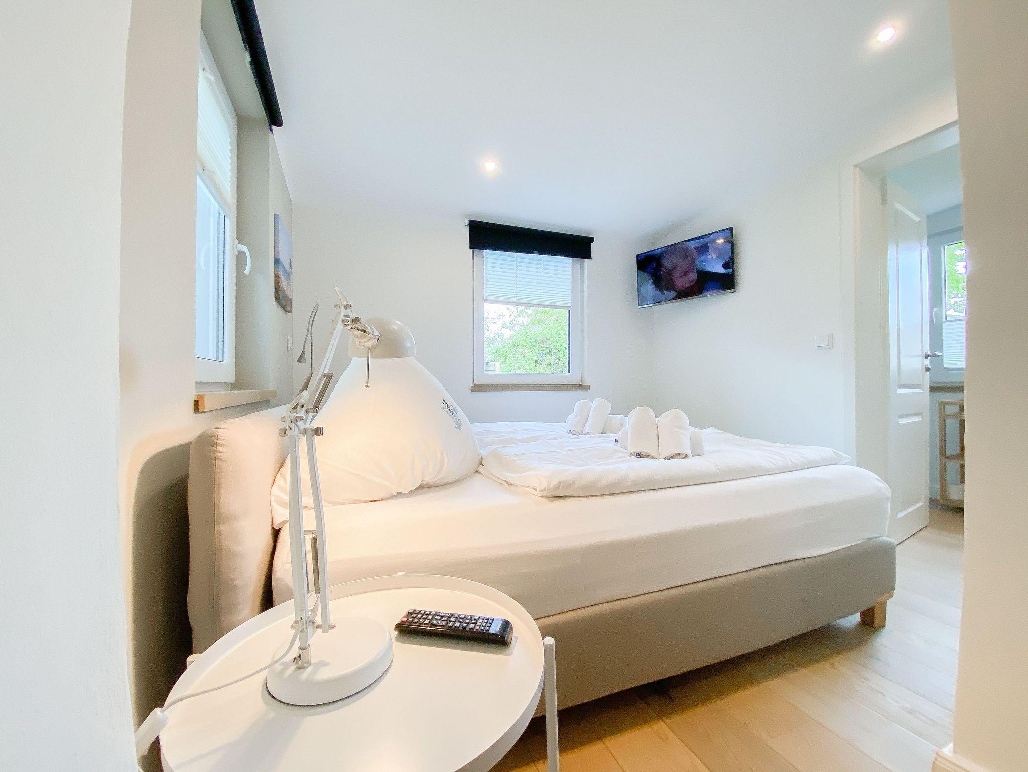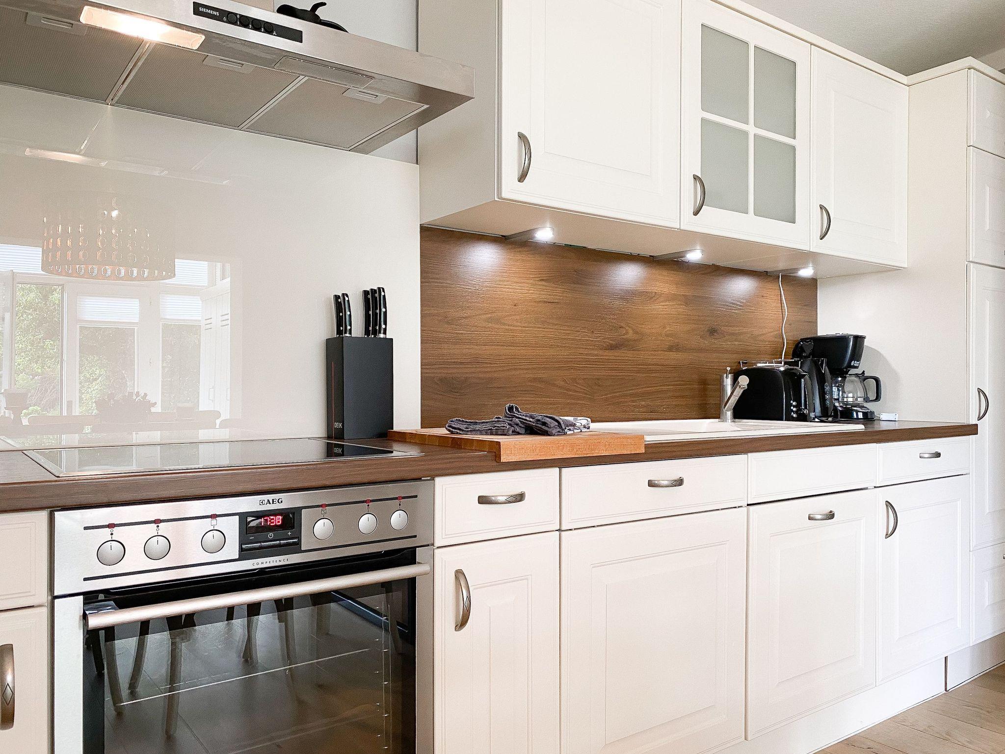 Mit circa 90 qm Wohnfläche, einem schönem eingewachsenem Garten in Südwestausrichtung, großer Terrasse und separatem Saunahaus, eignet es sich bestens für Familien und bietet ausreichend Platz für 5-6 Personen inklusive Kindern. Mittelpunkt des Hauses bildet der großzügige Wohnbereich mit riesigen Fensterflächen und wunderschönem Blick in den weitläufigen, eingezäunten Garten. Helle Räumlichkeiten, Echtholzböden und die geschmackvolle Einrichtung schaffen eine[nbsp] Atmosphäre zum Wohlfühlen. Es erwartet Sie eine hochwertige Wohnlandschaft, ein Kaminofen für gemütliche Abende und eine zeitgemäße Ausstattung wie TV, Bluetooth Lautsprecher, Radio und WLAN.[nbsp] Der großzügig angelegte Außenbereich verfügt über eine[nbsp] überdachte Terrasse in Südwest Ausrichtung mit reichlich Platz für gemütliche Stunden und einen schönen Garten mit Sonnenliegen und Gartenmöbeln. Erholung und Entspannung finden Sie im Saunahaus, das ebenfalls im Garten untergebracht ist. Die offene Einbauküche[nbsp][nbsp]ist bestens ausgestattet(Geschirrspüler, Backofen, Mikrowelle) und der integrierte Essbereich bietet ausreichend Platz für 6 Personen. Das Haus verfügt über drei[nbsp][nbsp]kleine Schlafzimmer mit Doppelbetten (160x200) und alle [nbsp]Fenster sind mit Plissees und Verdunkelungsvorhängen/Rollos versehen. Ein Schlafzimmer ist zusätzlich mit einem TV ausgestattet und verfügt über ein modernes Duschbad ensuite.[nbsp] Das zweite Duschbad ist über den Flur zu erreichen. Der vorhandene Stauraum für die Urlaubsgarderobe ist in zwei Schlafzimmern relativ gering.
