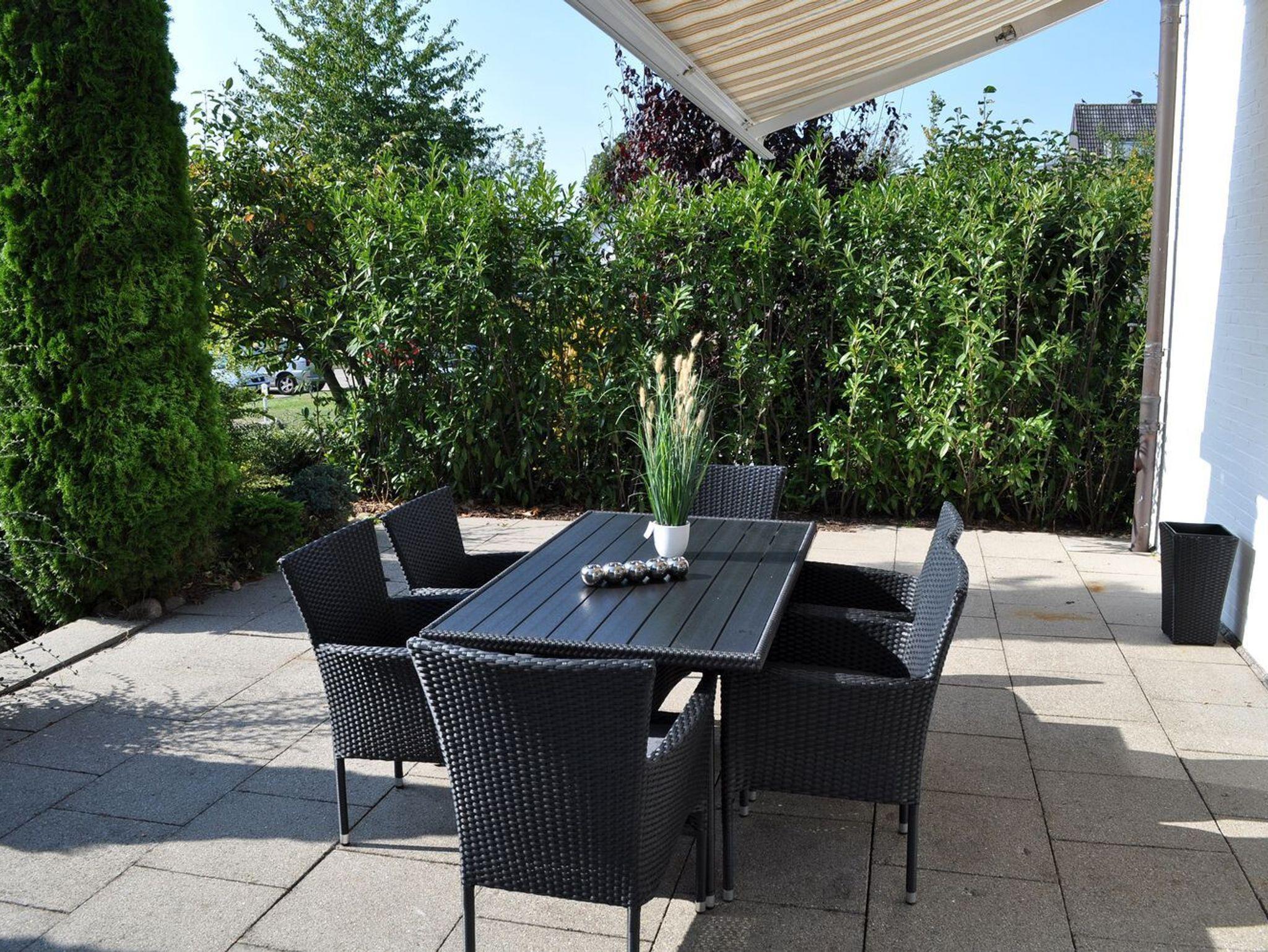 Terrasse: 6 Stühle, elektrische Markise, Nachmittagssonne, Südlage, Tisch