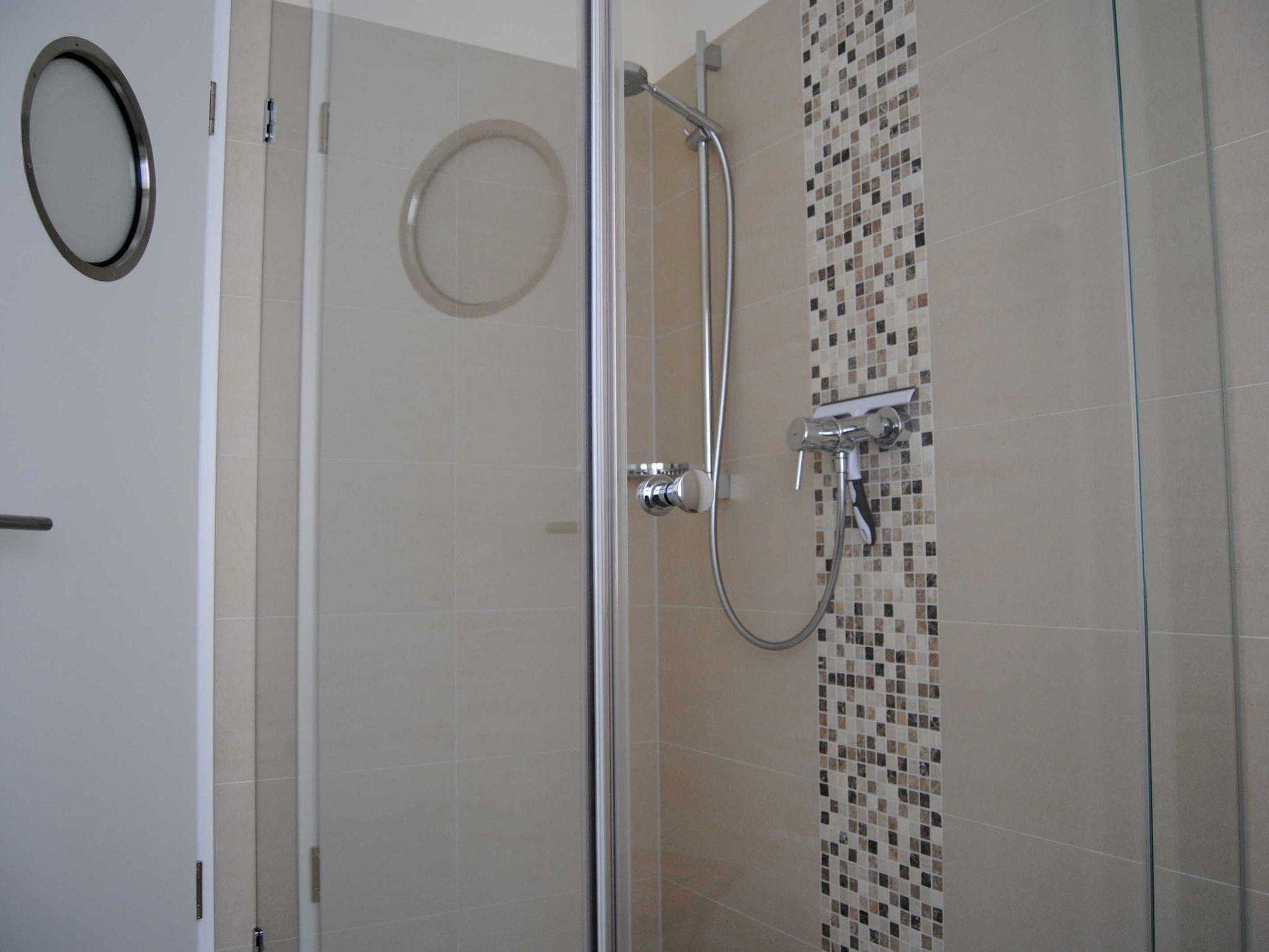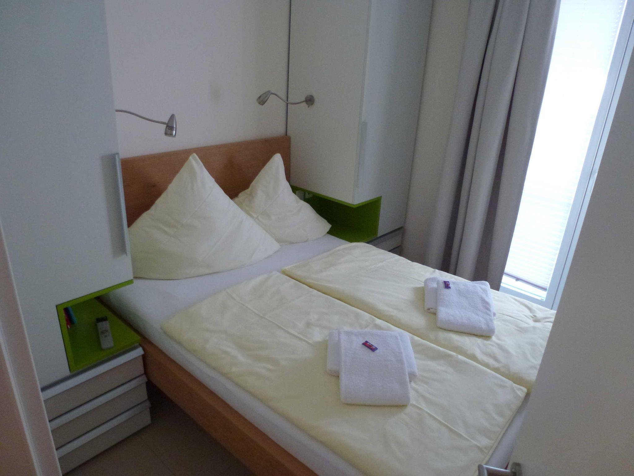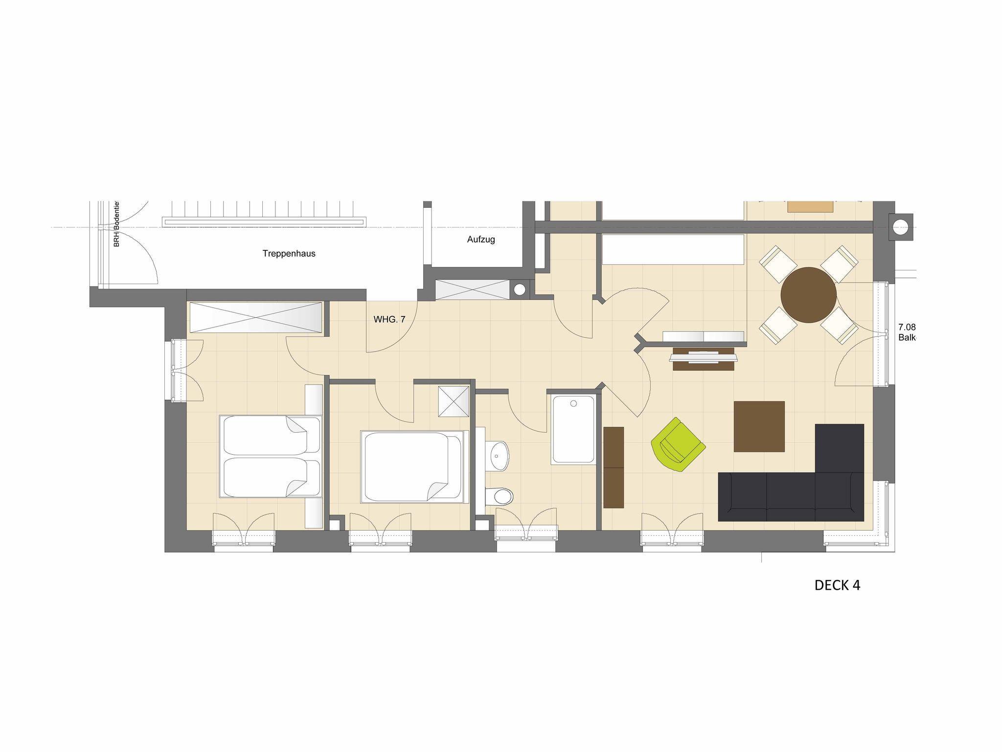 Deck 4 befindet sich im Erdgeschoss des Ferienhauses Ostsee Lodges mit Aufzug, Sauna und Fitnessbereich. Genießen Sie Ihren Urlaub in der 75 qm großen, hellen Wohnung mit bodentiefen Fenstern, Südwest Balkon und elektrischer Sonnenmarkise. Sie gelangen von der komfortablen halboffenen Küche in den großzügigen Wohn-Essbereich, einfach zum Wohlfühlen. Bei der Einrichtung der Wohnung und Errichtung des Hauses wurde auf hochwertige Materialien Wert gelegt. In den 2 separaten Schlafzimmern mit Doppelbetten (180x200 und 140x200) und TV erwartet Sie hoher Schlafkomfort. Die Wohnung ist ausgestattet mit Loewe-TV´s, Musikanlage und kostenlosem Internetzugang über WLAN. Das hochwertige Bad mit viel Tageslicht ist mit einer Glaskomfortdusche, Fußbodenheizung und Handtuchwärmer ausgestattet. In der Wohnung befindet sich ein kleiner Hauswirtschaftsraum mit einem Waschtrockner.