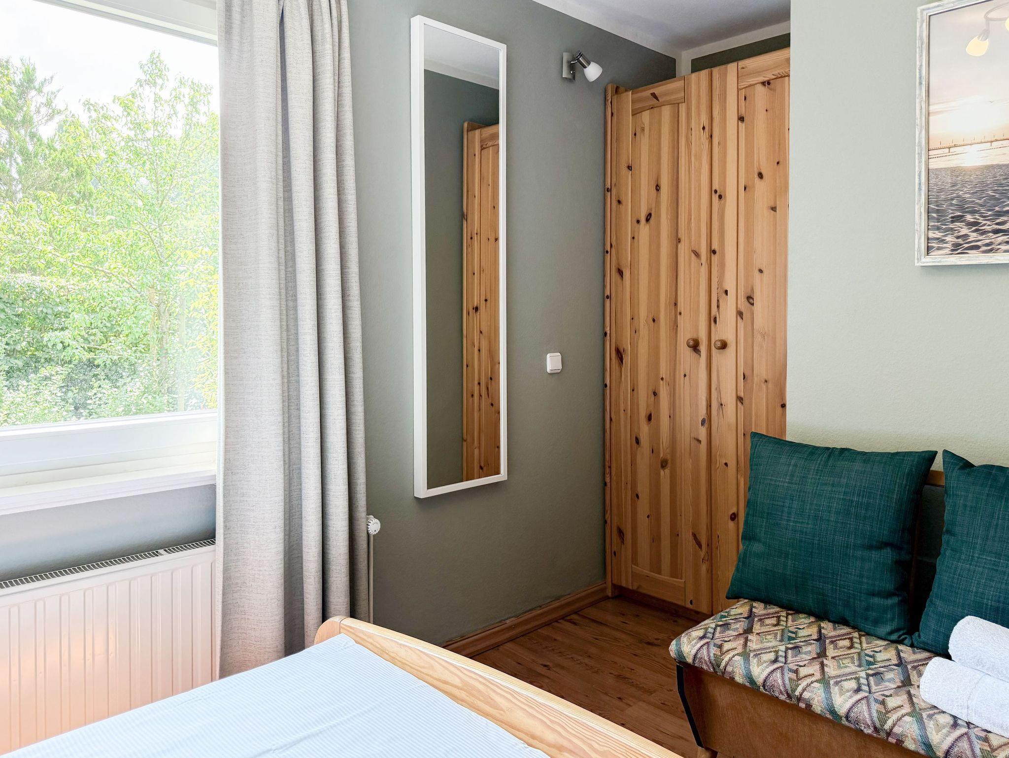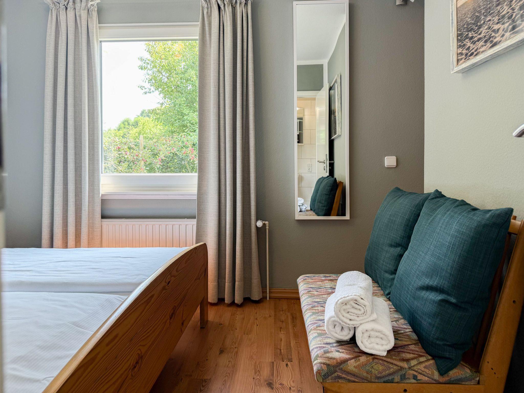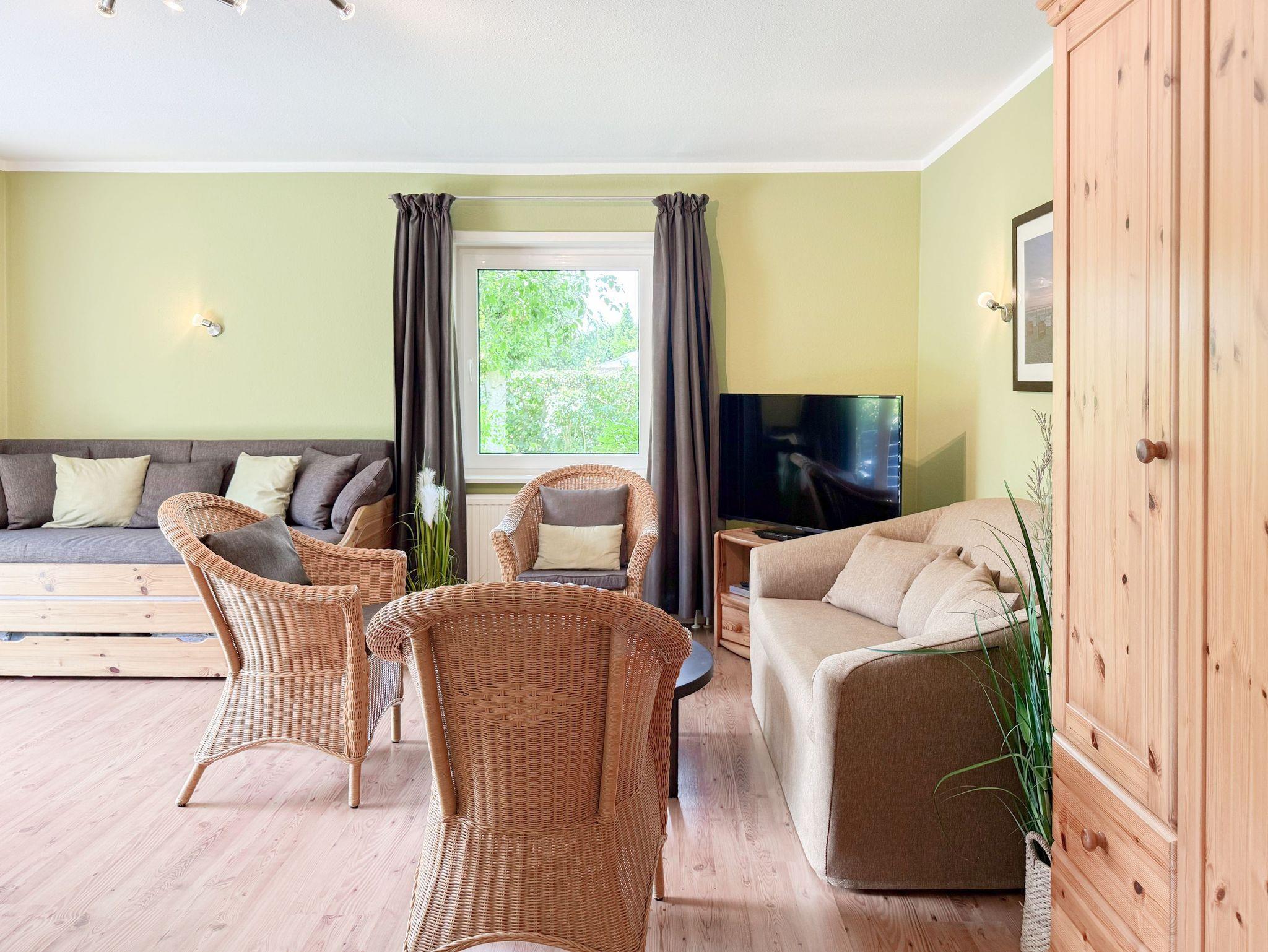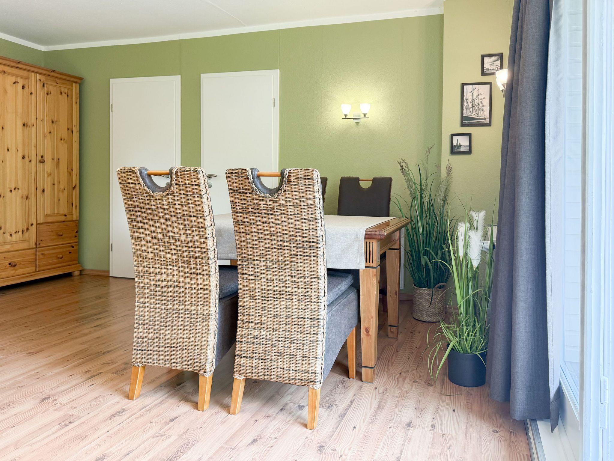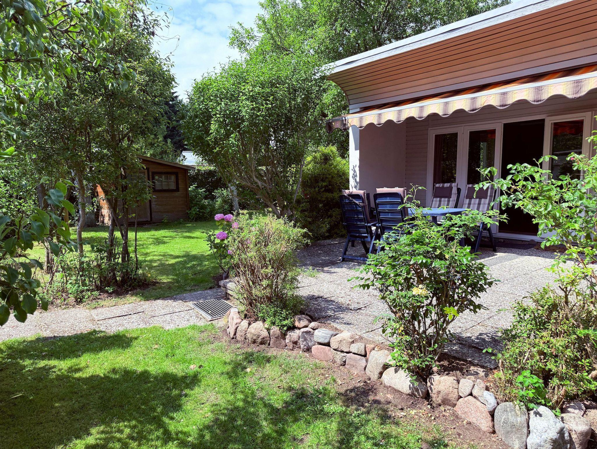 Das zweckmäßige Ferienhaus bietet einen wunderschönen eingewachsenen Garten mit altem Baumbestand an Obstbäumen und ist ein idealer Rückzugsort in Ostseenähe. Es eignet sich bestens für Paare oder Familien mit Kinder bis 4 Personen. Es erwartet Sie ein großzügiges Wohn- Esszimmer, eine voll ausgestattete Küche, ein Duschbad und eine große Terrasse in Südausrichtung mit Gartenmöbeln und Markise sowie ein weitläufiger Garten. Das separate Schlafzimmer verfügt über ein Doppelbett, Kleiderschrank und Vorhänge zur Abdunkelung. Im Wohnbereich ist zusätzlich ein Bettsofa (ausklappbar auf eine Ebene 180x200, 2 Einzelmatratzen ) für 2 Personen untergebracht, die Fenster sind ebenfalls mit Verdunklungvorhängen versehen. Ein Kinderreisebett und ein Hochstuhl sind ebenfalls vorhanden. WLAN steht kostenlos zur Verfügung, ein Parkplatz befindet sich auf dem Grundstück. Es stehen 4 Fahrräder (2x26 und 2x28) zur kostenlosen Nutzung zur Verfügung, sind jedoch nicht Bestandteil des Mietvertrages.