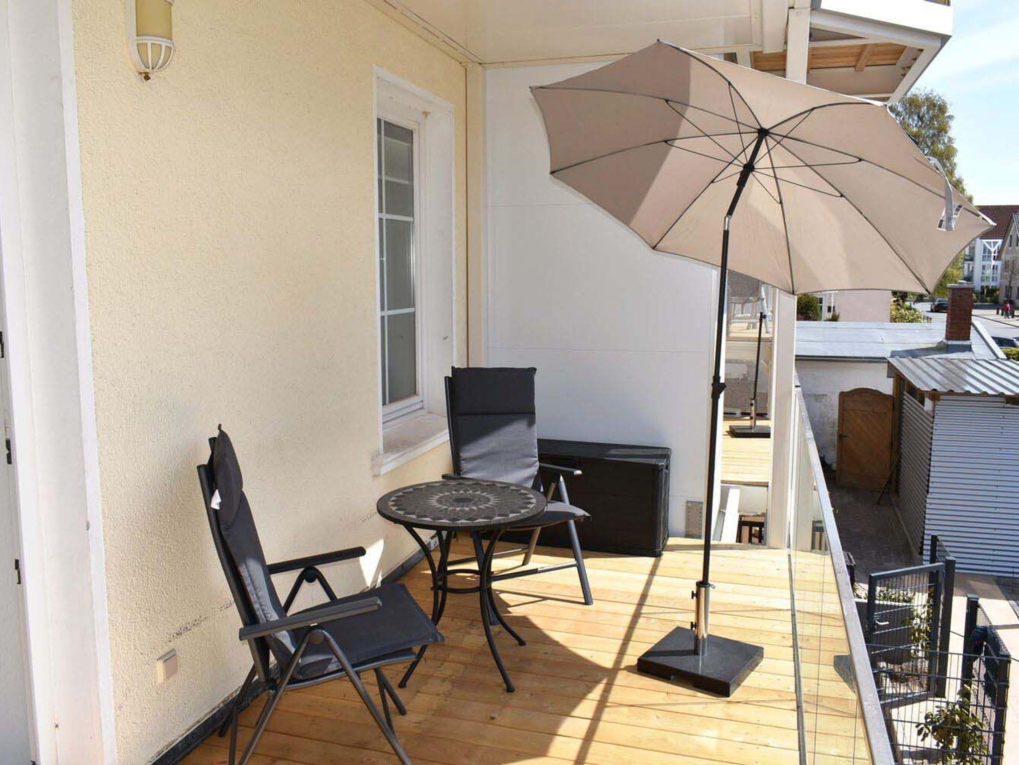 Balkon: 2 Stühle, Sonnenschirm, Süd- Westlage, Tisch