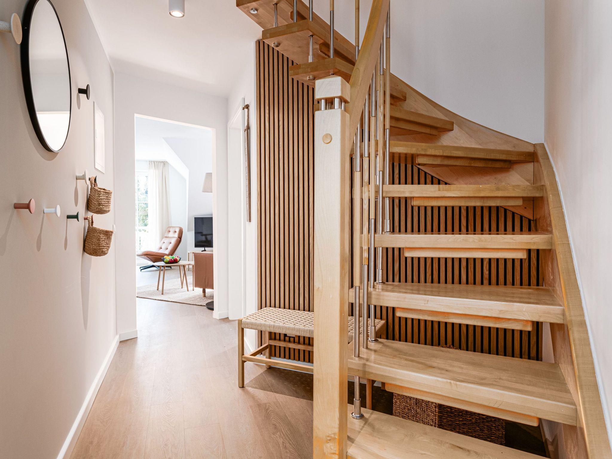 In der Ostseeallee 12 begrüßen wir Sie herzlich im Maisonette Appartement Nr. 11, welches im Jahr 2025 umfangreich renoviert und komplett neu möbliert wurde. Auf 65m² verbringen bis zu für 4 Personen Ihren Urlaub im geschmackvoll maritim eingerichteten Feriendomizil.