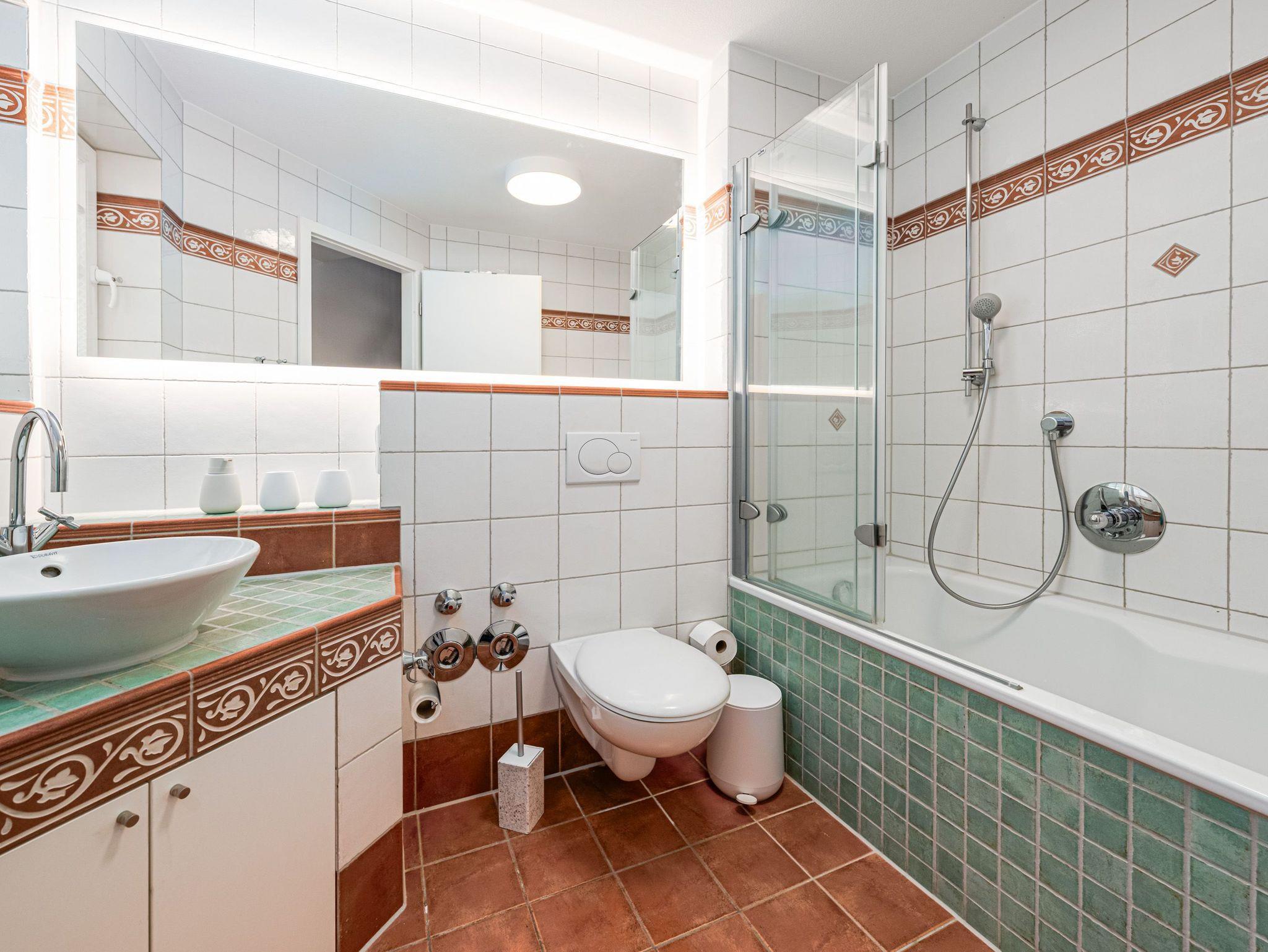 Das Badezimmer ist mit einer Badewanne, WC und Föhn eingerichtet. Hier erfrischen Sie sich nach einem ausgiebigem Urlaubstag am Strand.