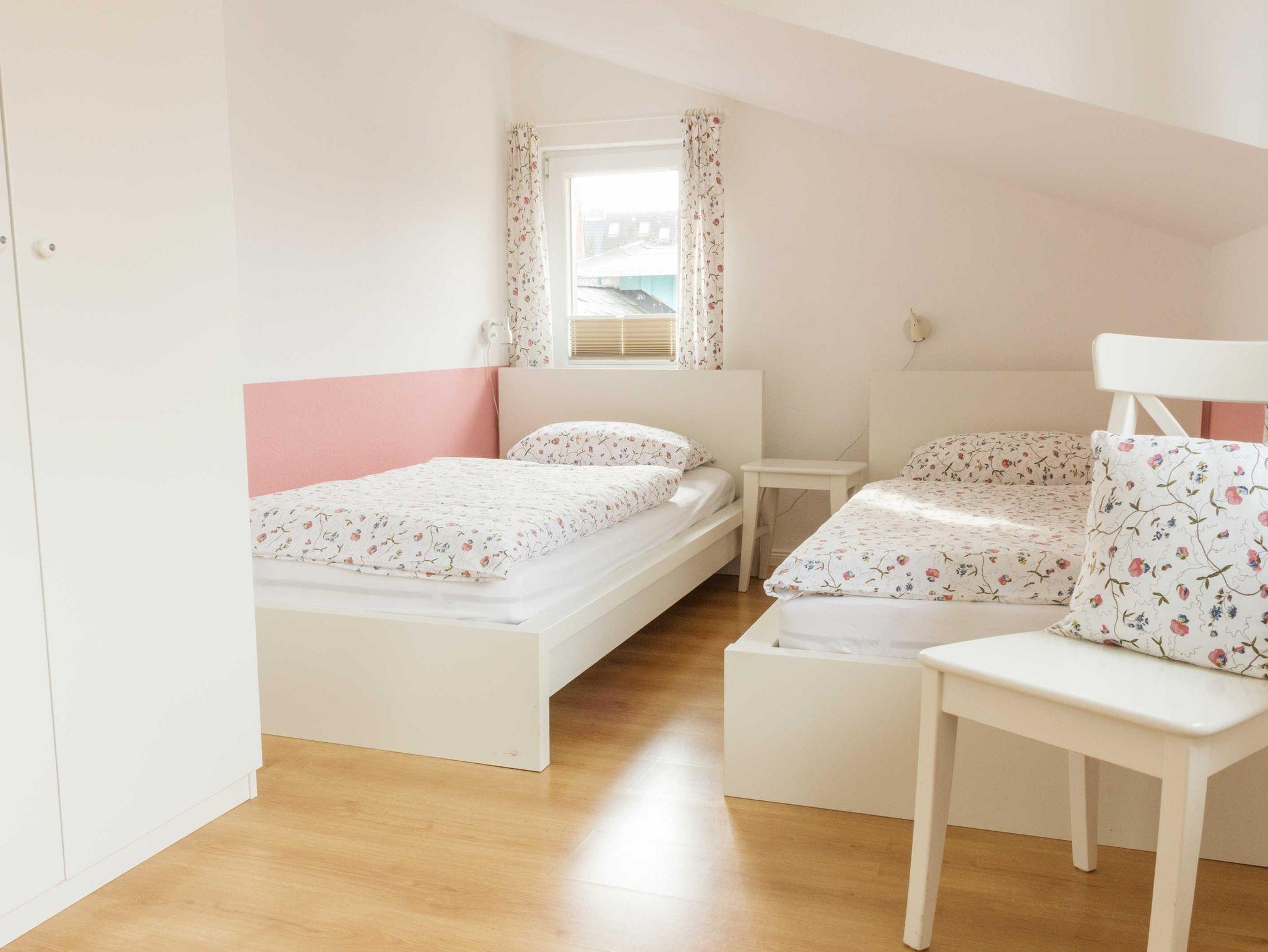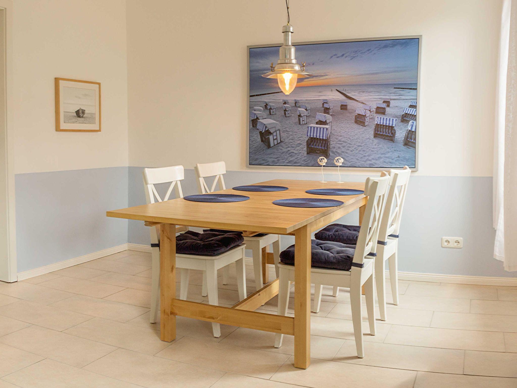1- 4 Erwachsene+ max. 2 Kleinkinder im Babybett, Wohn -Eßzimmer mit TV, Lan+ W-Lan, 2 Schlafzimmer mit Verdunklungsrollos und Insektenschutzgittern, Einbauküche mit Herd, Backofen, Kühlschrank, Geschirrspüler, Mikrowelle, Toaster, Filterkaffeemaschine, Duschbad mit Doppelwaschtisch und Fön, zweites Gäste WC, Waschmaschine, 2 Babybetten möglich, Treppenschutzgitter oben, Hochstühle, Terasse mit Möbeln, Garten zur Mitnutzung, PKW-Stellplätze auf dem Grundstück, Bettwäsche, Handtücher, Geschirrtücher und eine Erstausstattung an WC- Papier, Geschirrspühltabs und Seife inklusive.