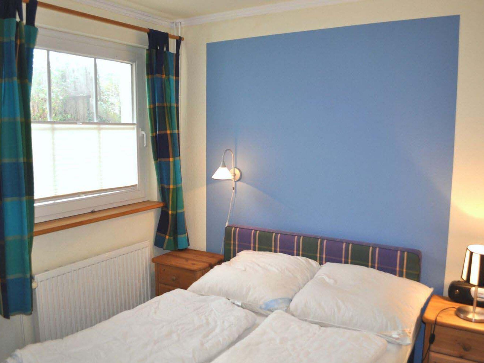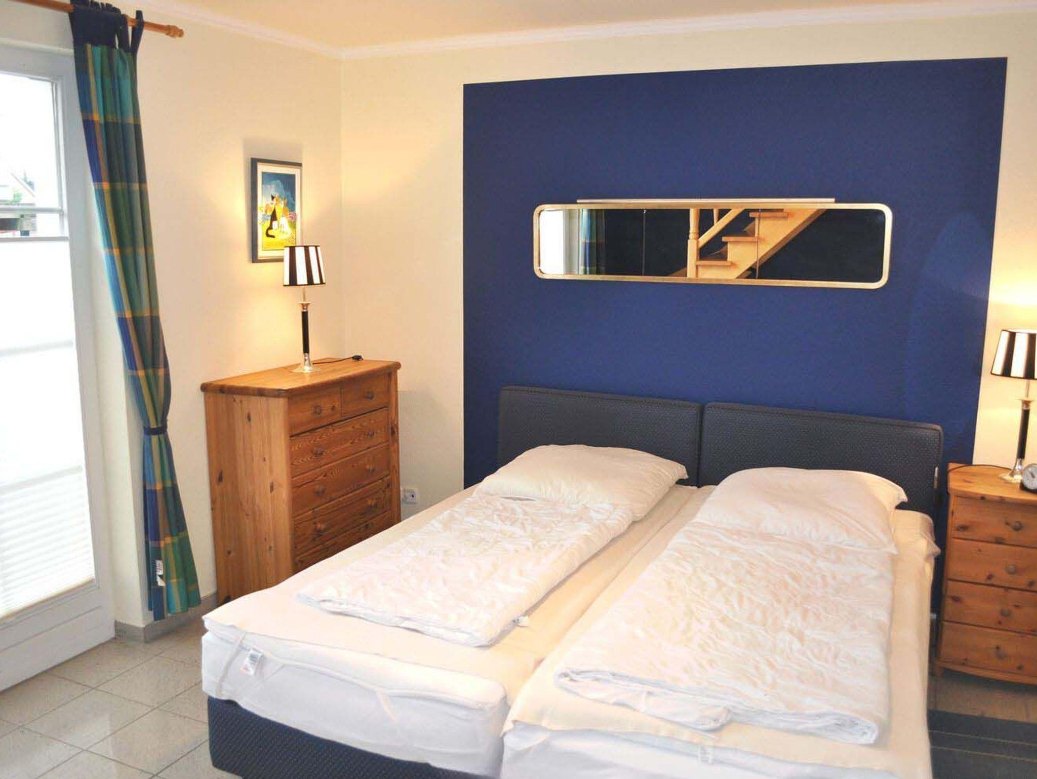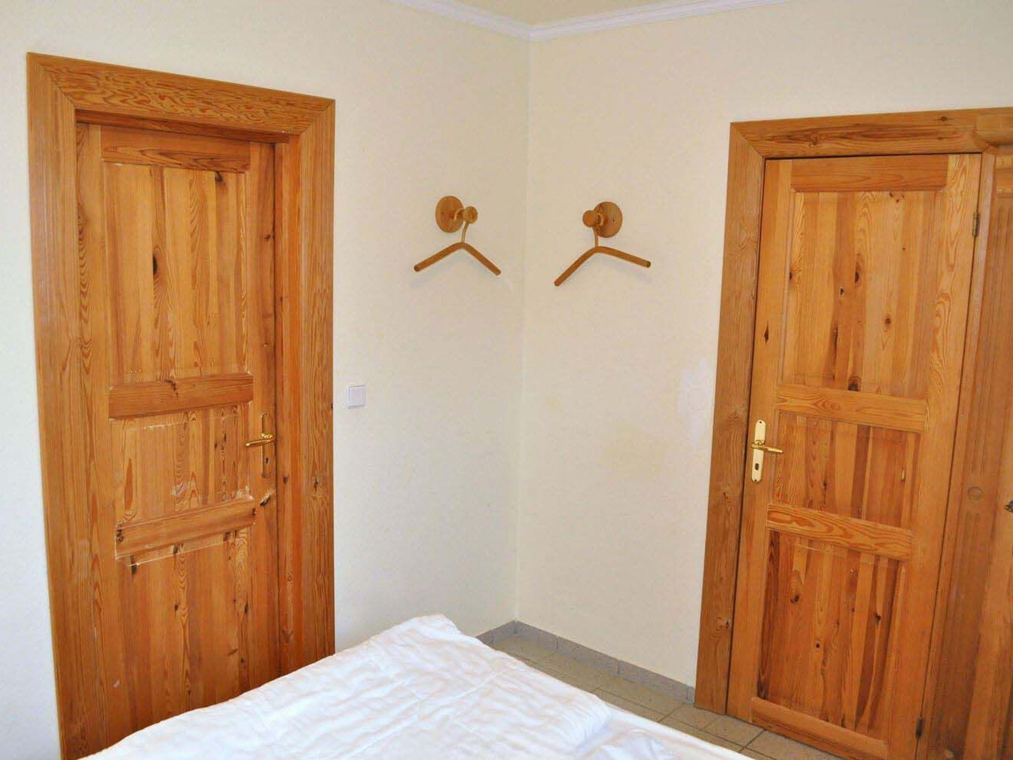 Schlafzimmer 2: 1 Matratze, 2 Nachttische, CD-Stereoanlage, Doppelbett 2,00 x 1,40 m, Kleiderschrank, Plissees, Spiegel, Stummerdiener