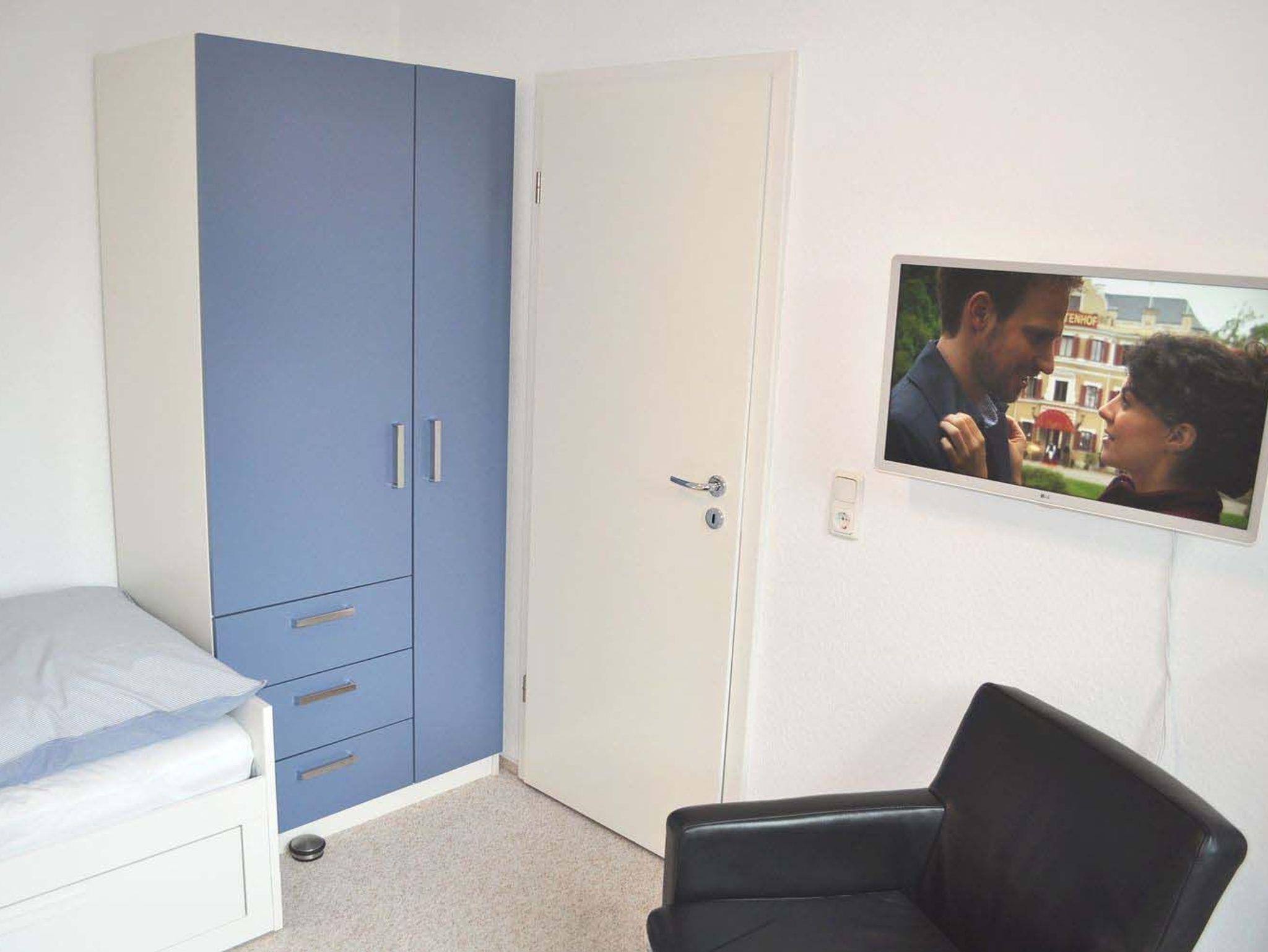 Schlafzimmer 2: 2 Einzelbetten 2,00 x 0,80 m, Bügelbrett, Flachbildschirm, Kabel-TV, Kleiderschrank, Nachttisch, Sessel
