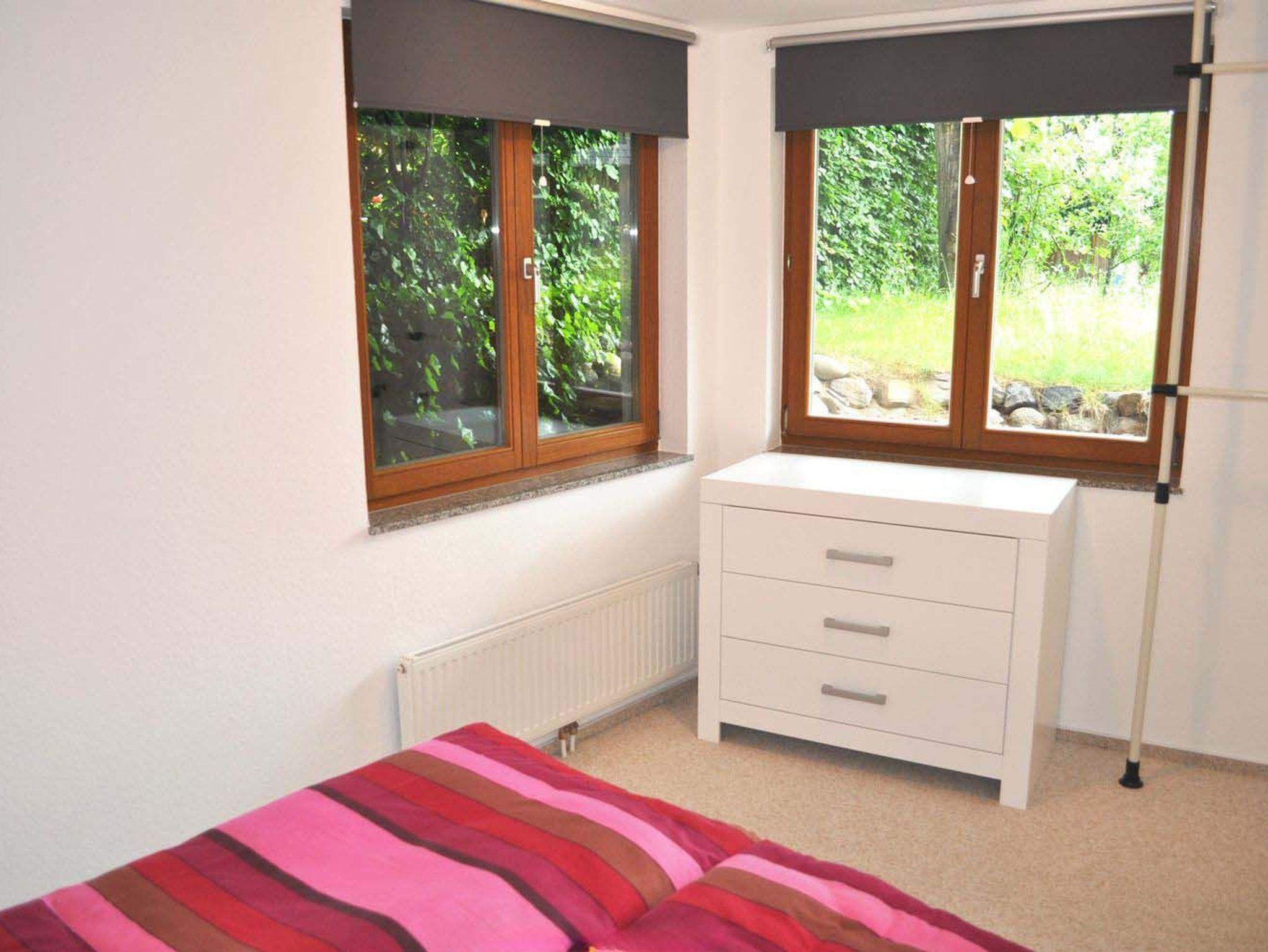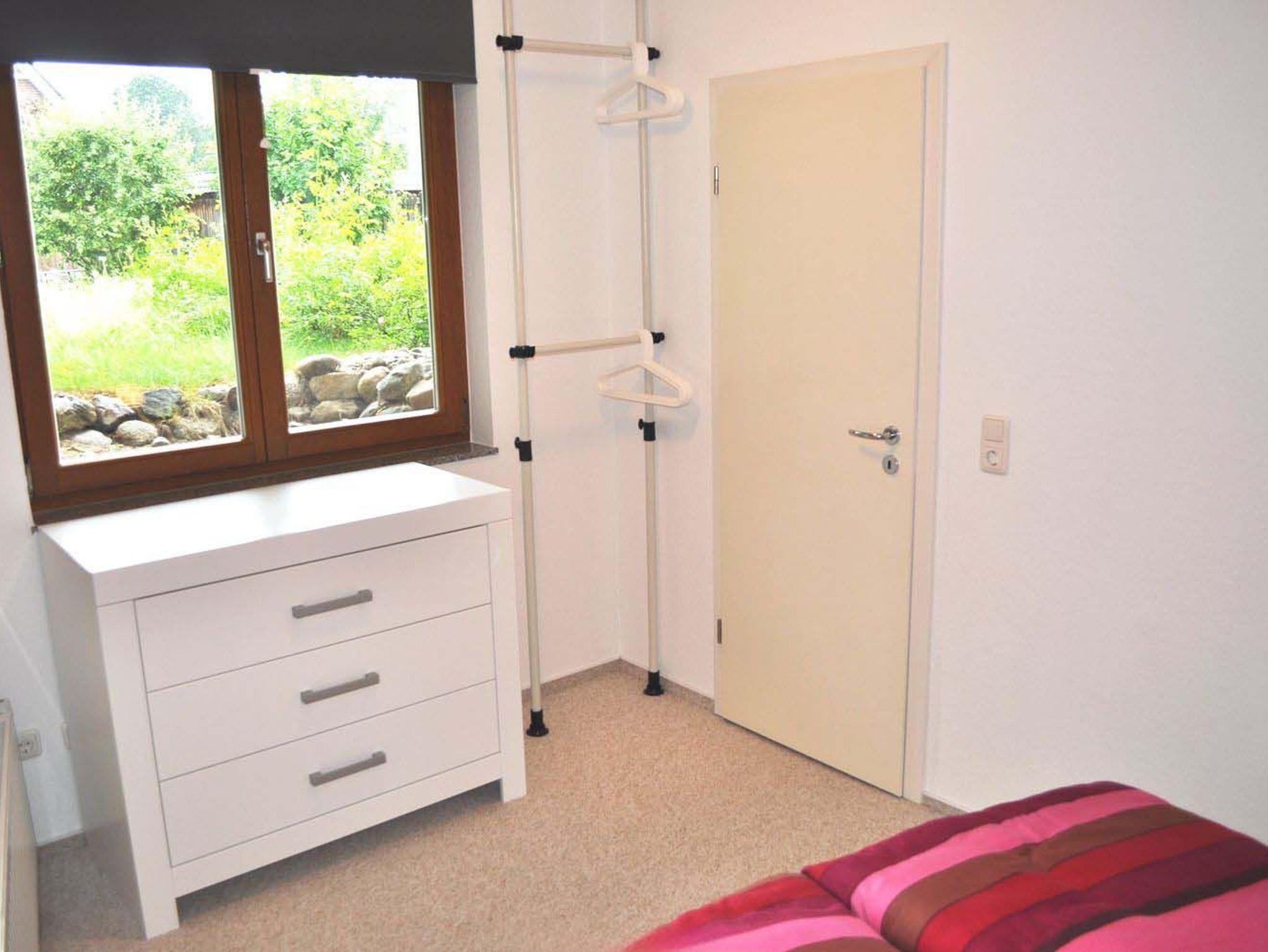 Schlafzimmer 1: 2 Matratzen, 2 Nachttische, Doppelbett 2,00 x 1,60 m, Kleiderstange, Kommode, Radiowecker mit CD-Player