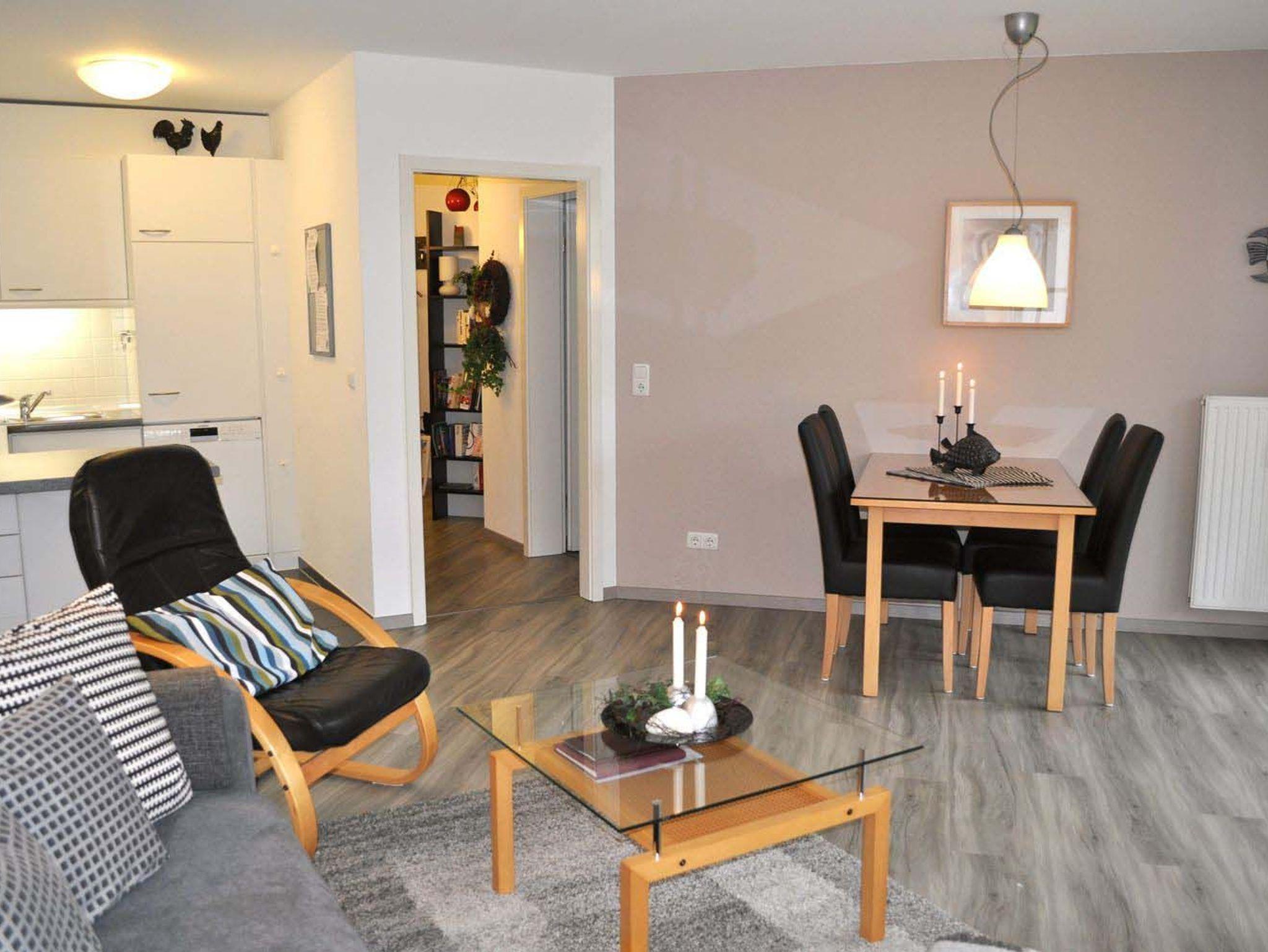 Die gemütliche, geschmackvoll eingerichtete Ferienwohnung befindet sich im Erdgeschoss in naher Strandlage. Die Ferienwohnung hat eine Wohnfläche von ca. 58 qm, eine offene Küche zum Wohnraum. Die Terrasse ist mit Tisch und Stühlen ausgestattet. Für die Kleinen gibt es einen Spielplatz in der Appartementanlage. Zum Strand sind es nur 50 m, Sie müssen keine Straße überqueren. Die zentrale Lage ist der ideale Ausgangspunkt für schöne Ausflüge zum idyllischen Hafen oder weiter Richtung Timmendorfer Strand u.a. mit dem Sealife Center oder der Ostsee Therme. Travemünde können Sie zu Fuß oder mit dem Fahrrad entlang dem nahegelegenen Brodtener Steilufer erreichen. Der Maritim-Golfplatz mit wunderschönen 27 Löchern ist mit dem PKW nur 5 Minuten entfernt. Weitere schöne Golfplätze befinden sich in der nahen Umgebung