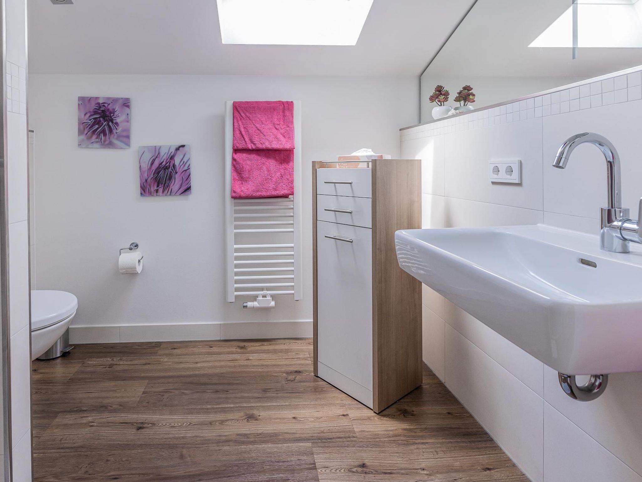 Moderne Ferienwohnungen mit exclusiver Ausstattung im Erdgeschoss (120qm) 1. Etage, (100 m²), max. 4 Personen, 2 Schlafzimmer mit großen Betten, 2 Bäder mit Dusche/WC und Föhn, großer kombinierter Wohnraum mit Essplatz, voll ausgestatteter Einbauküche, Geschirrspüler, Backofen, Mikrowelle, Internet-Lan, kleiner Balkon/ Terasse für Allergiker geeignet, moderne Be- und Entlüftungsanlage, Fußbodenheizung, keine Haustiere, Nichtraucher, PKW-Stellplatz, Bettwäsche und Handtücher bitte mitbringen oder auf Wunsch als Wäschepaket gegen Gebühr buchbar.