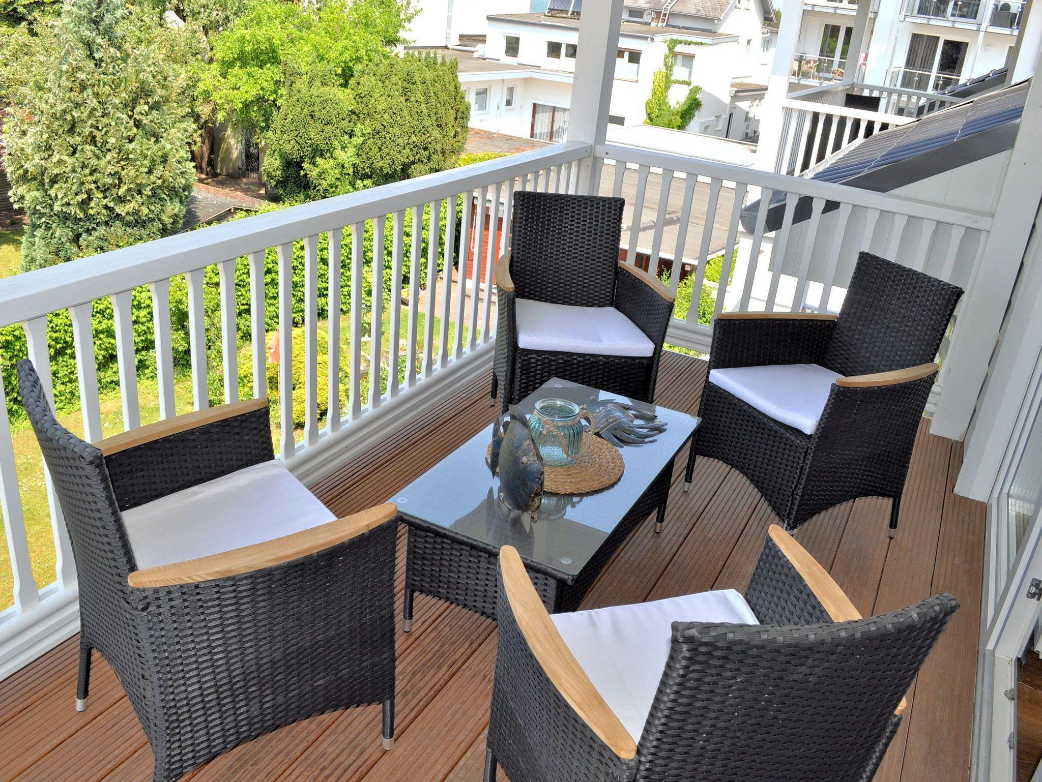 Balkon: 4 Korbstühle, Nord- Westlage, Tisch, überdacht