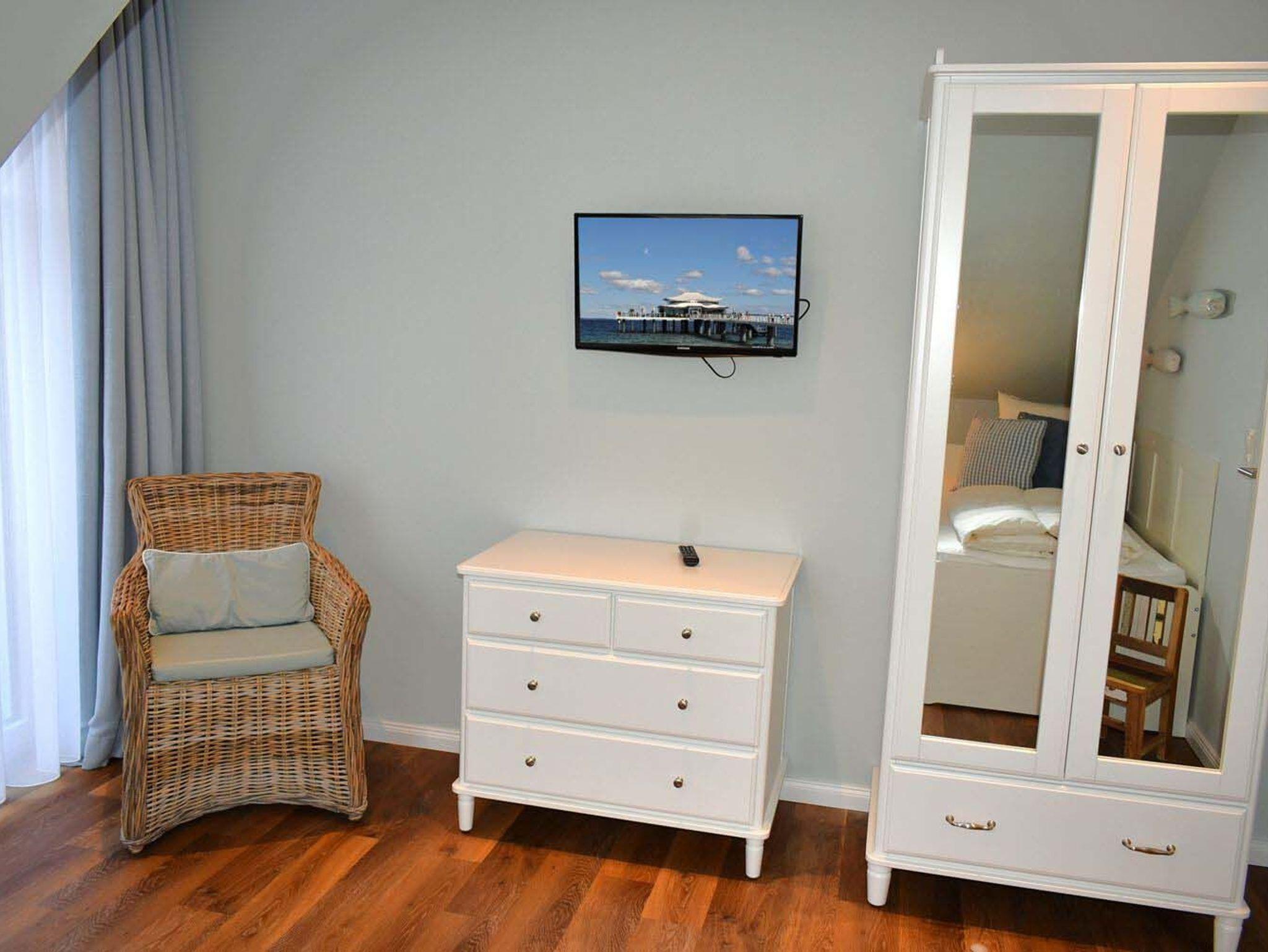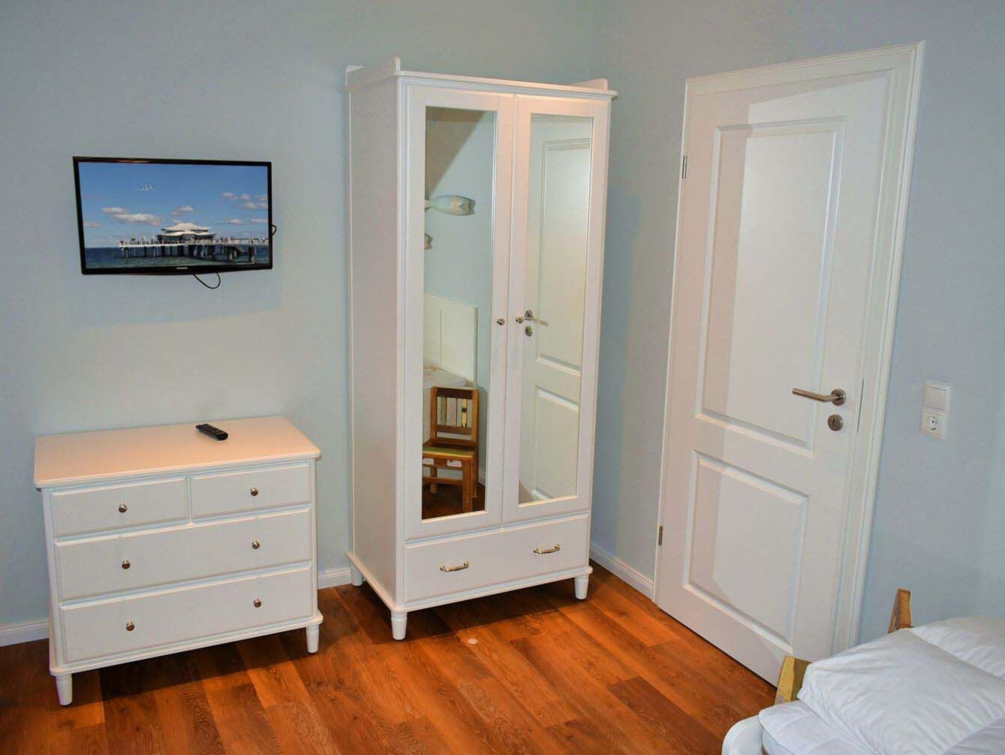 Schlafzimmer 2: 2 Einzelbetten 1,90 x 0,90 m, 2 Hocker, Flachbildschirm, Kleiderschrank, Kommode, Sat-TV, Spiegel, Tisch
