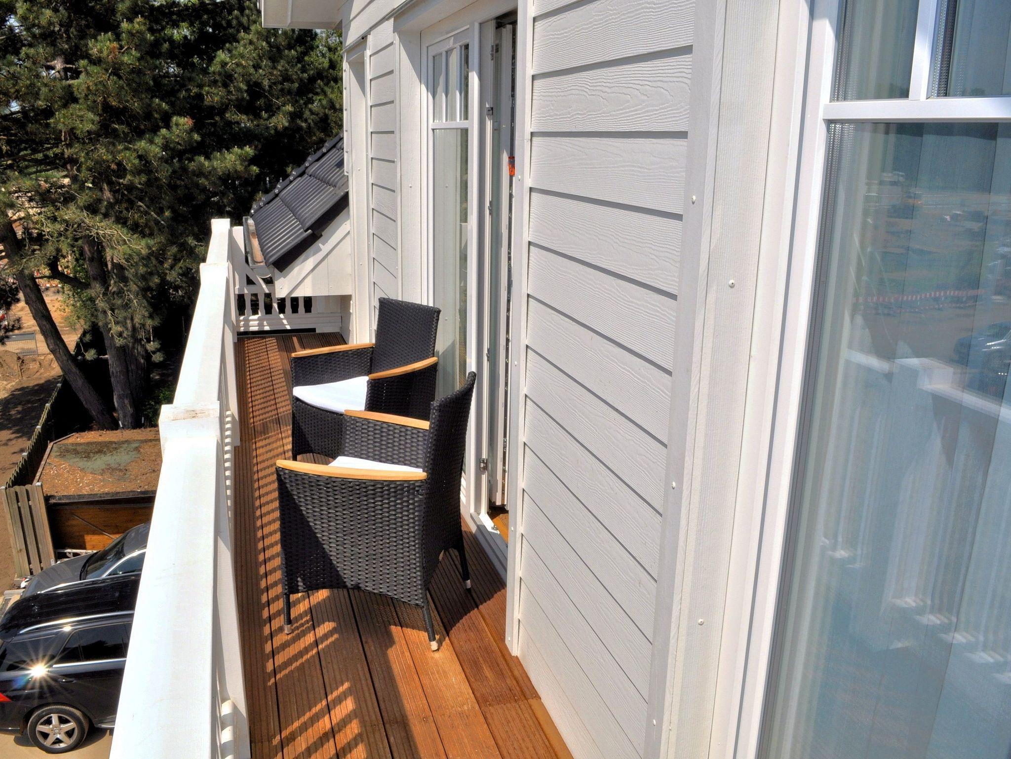 Balkon 2: Süd- Westlage, 2 Korbstühle, überdacht