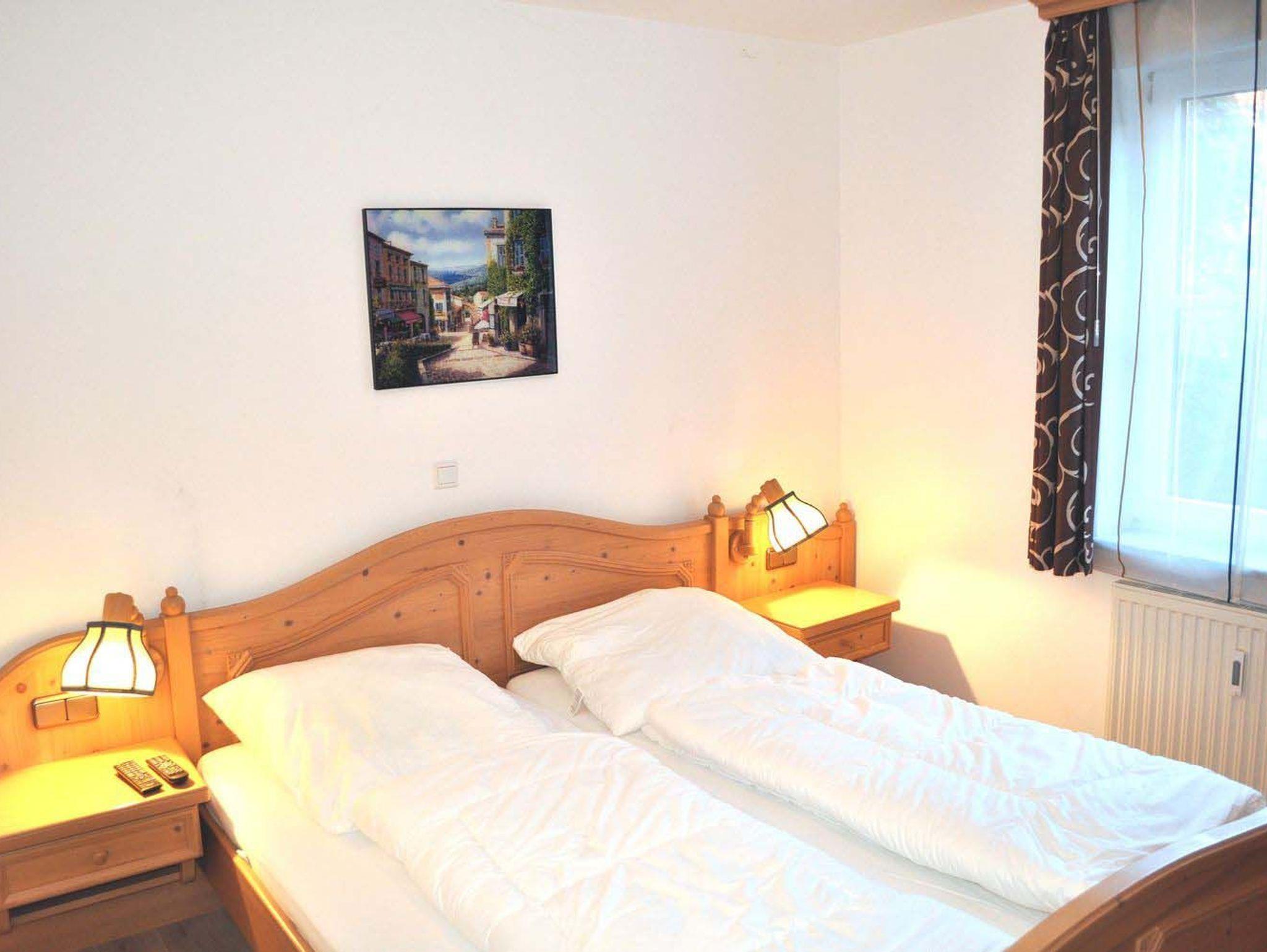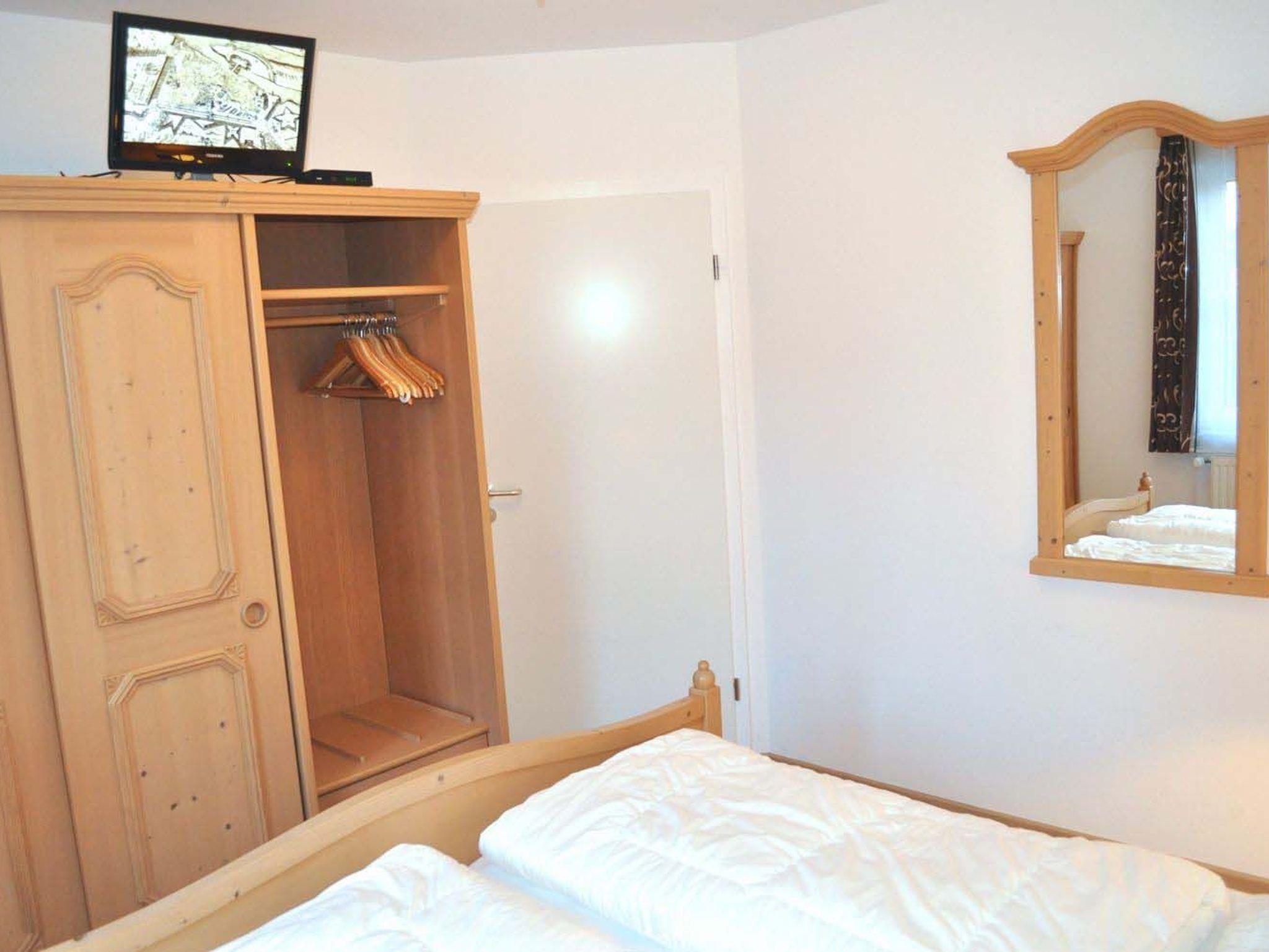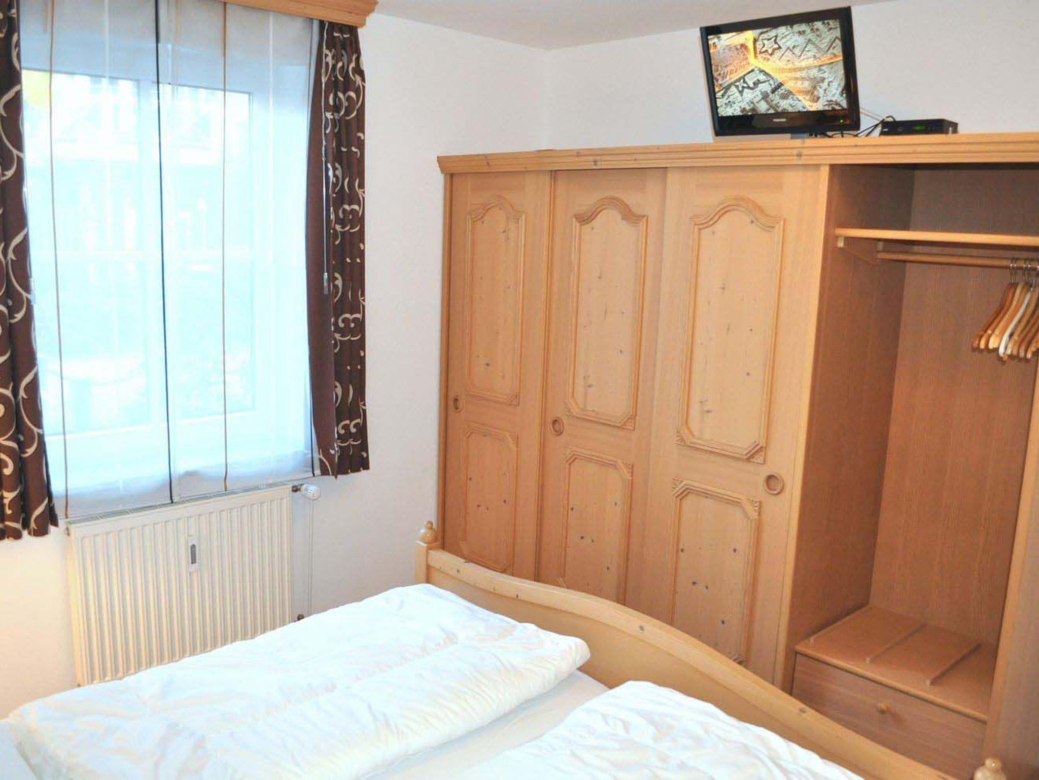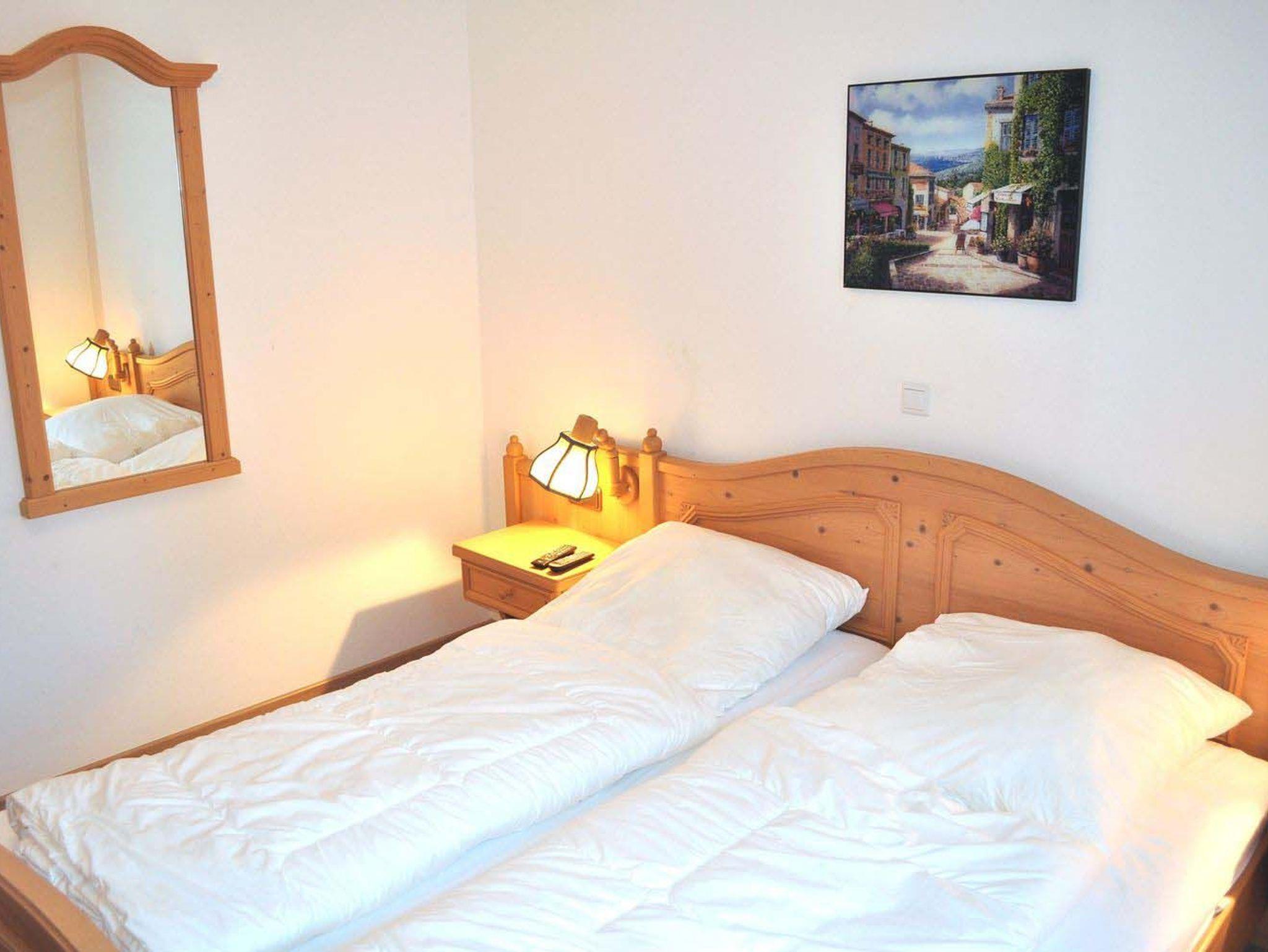 Schlafzimmer 1: 2 Matratzen, 2 Nachttische, 2 Nachttischlampen, Doppelbett 2,00 x 1,80 m, Flachbildschirm, Kleiderschrank, Sat-TV, Spiegel, Verdunklungsstores