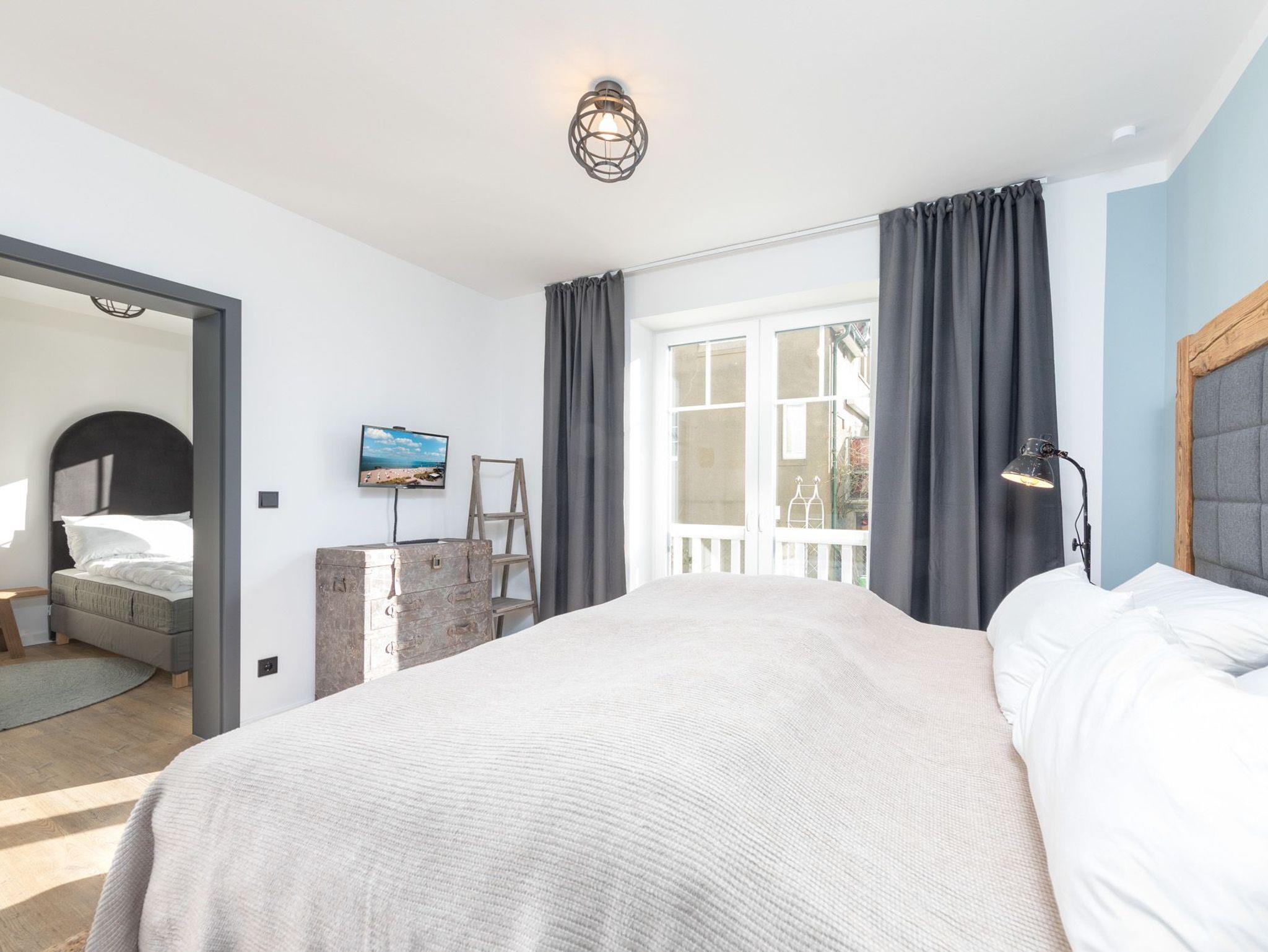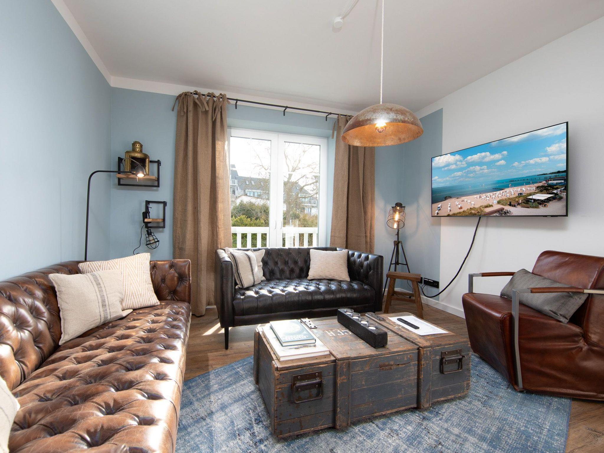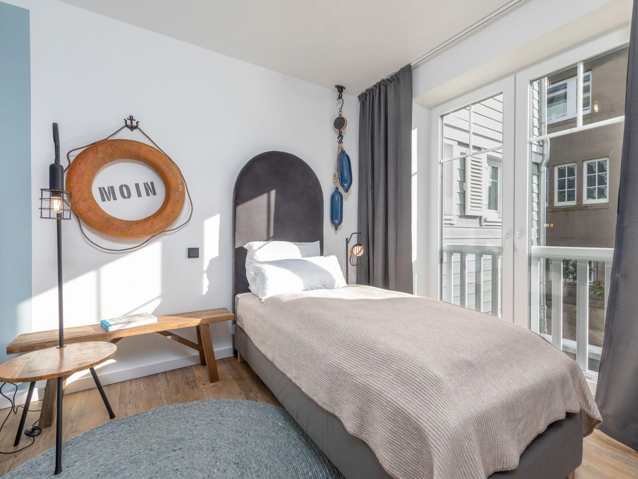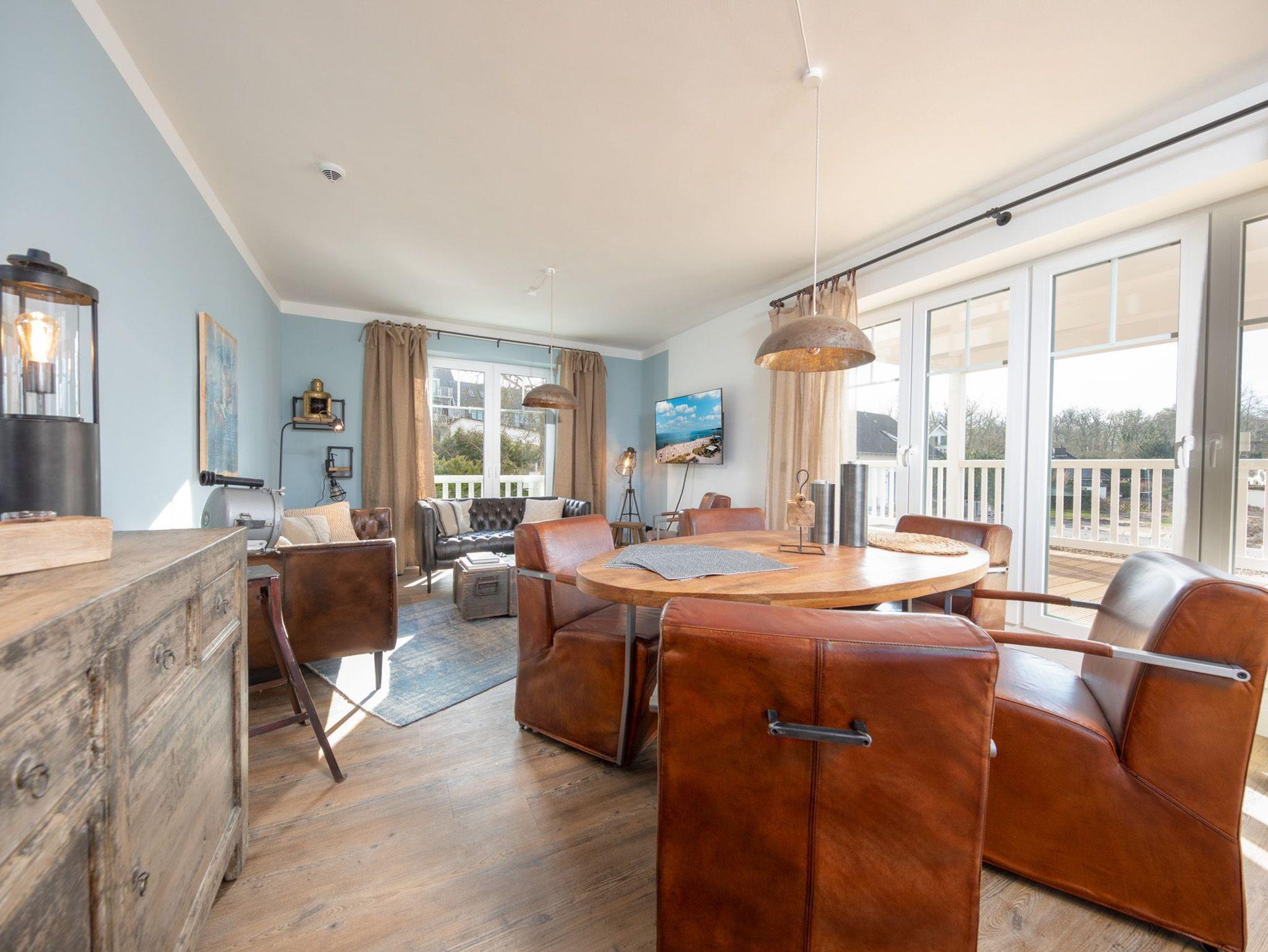 Das Appartement „Käptn Muuss“ bietet auf 112m² viel Platz für bis zu 6 Personen. Im lichtdurchfluteten und modern eingerichteten Wohn- und Essbereich mit integrierter Küchenzeile lassen sich wunderschöne Urlaubstage verbringen. Neben einer Sofalandschaft mit Flachbild-TV und einer Musikanlage steht Ihnen ein schöner Essbereich mit Zugang zum nach Süden ausgerichteten und sehr geräumigen Balkon zur Verfügung. Die hochwertig eingerichtete Einbauküche lässt keine Wünsche offen. Ein Geschirrspüler, ein Backofen und eine Nespresso-Kaffeemaschine gehören zur Ausstattung. Zwei der drei Schlafzimmer sind mit hochwertigen Boxspring- / Doppelbetten (1 x 180 cm x 200 cm) und das dritte Schlafzimmer mit zwei Boxspring- / Einzelbetten (90 cm x 200 cm) eingerichtet. Das dritte Schlafzimmer erreichen Sie durch ein weiteres Schlafzimmer mit Doppelbett.