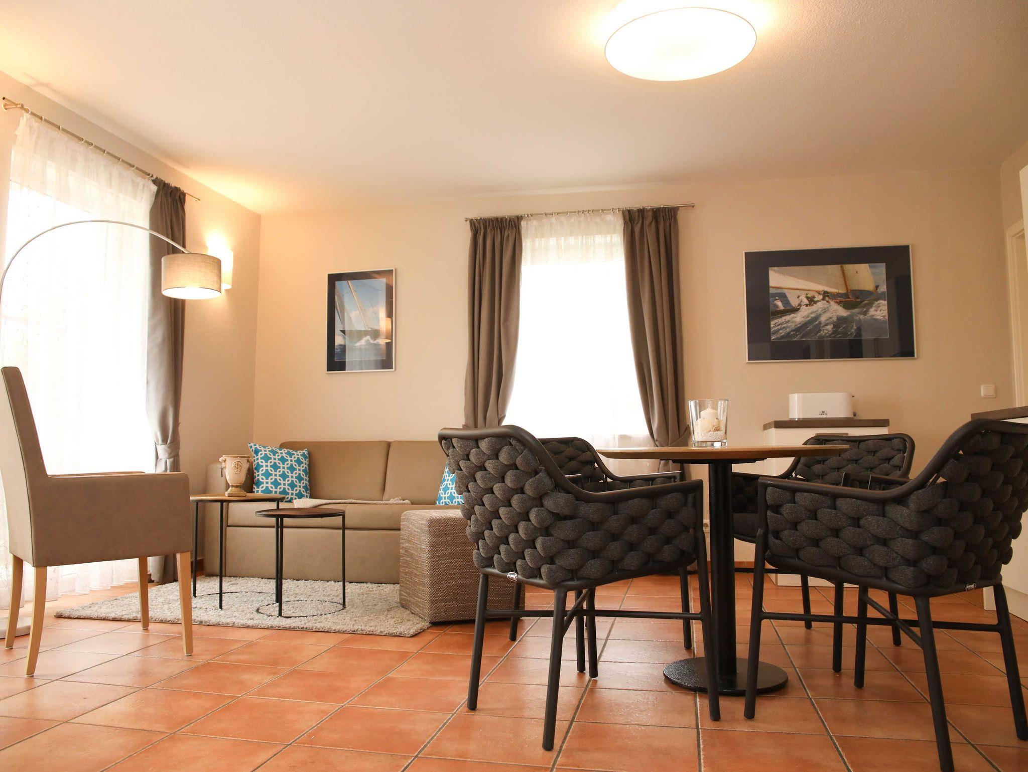 Da alle Ferienwohnungen gleichwertig und ähnlich auf dem 4* Sterneniveau ausgestattet sind, sehen Sie hier Beispielbilder für die Innenausstattung.