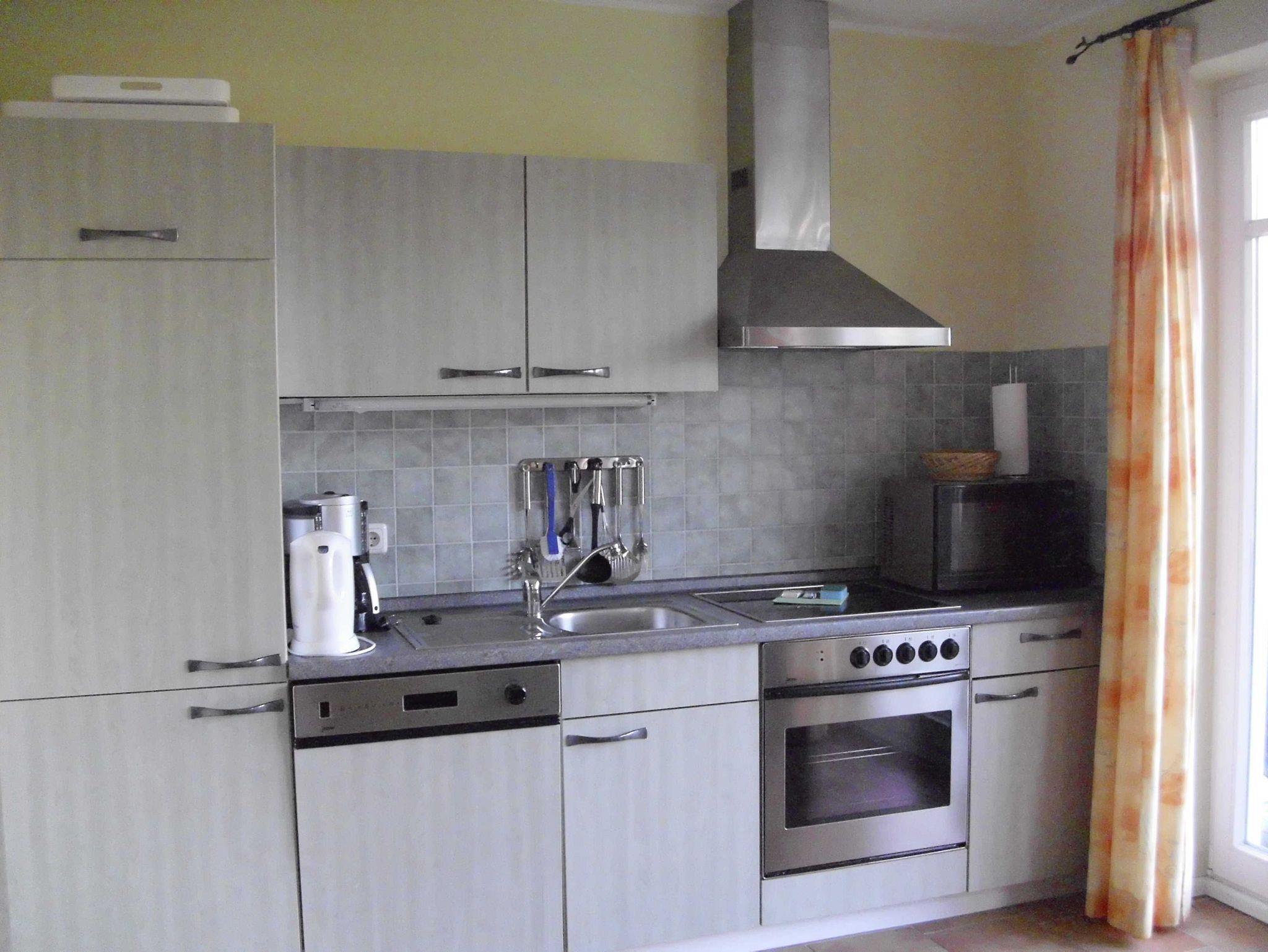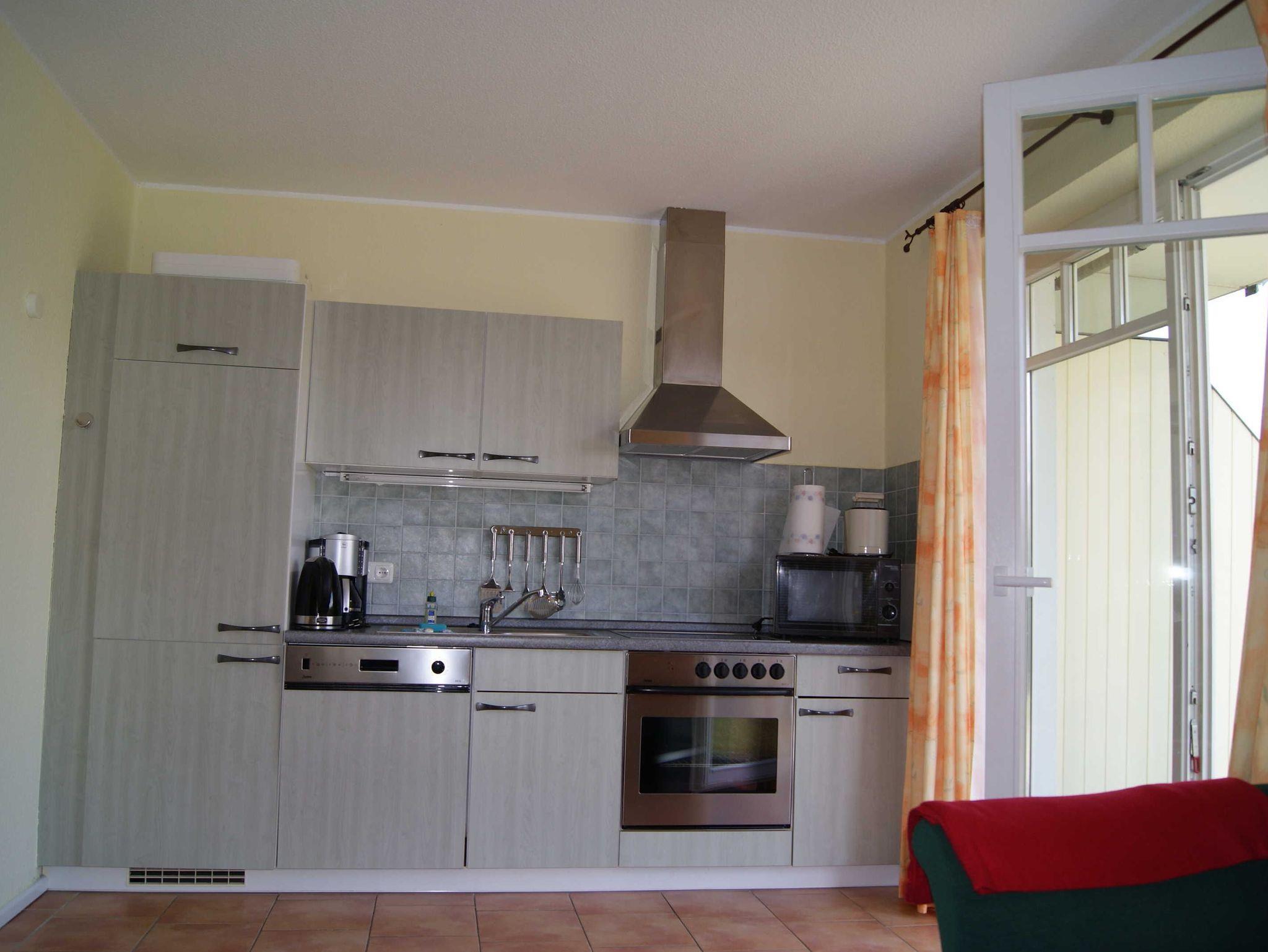 und eigenem Strandkorb liegt fast am Meer. Der Wohn- und Aufenthaltsraum besitzt große Fensterflächen. Dort finden Sie auch eine komplett ausgerüstete Küchenzeile inkl. Microwelle. Im Schlafraum befindet sich ein Doppelbett. Für eine Aufbettung steht eine Schalfcouch für 2 Personen zur Verfügung. Zum Strand sind es