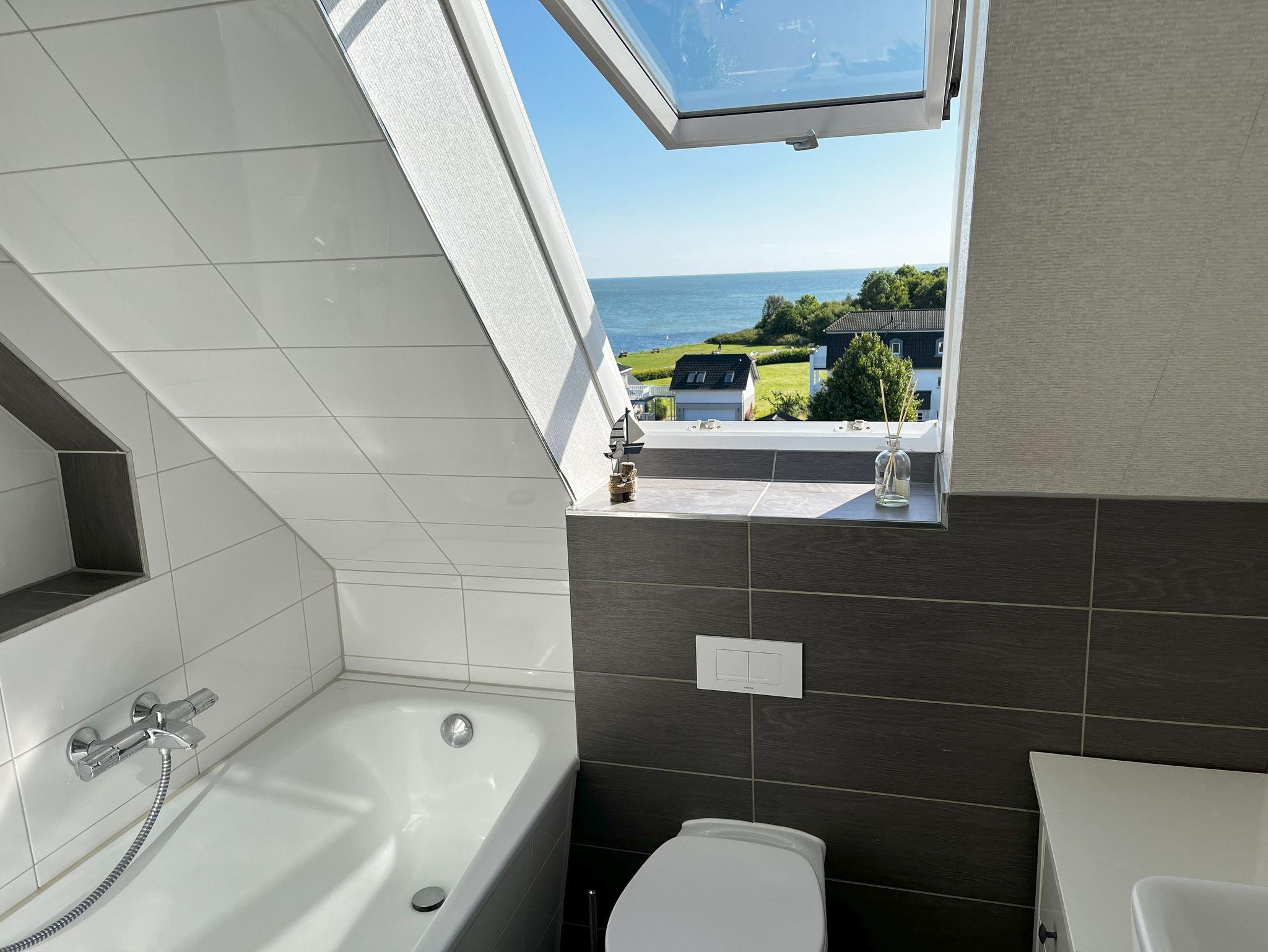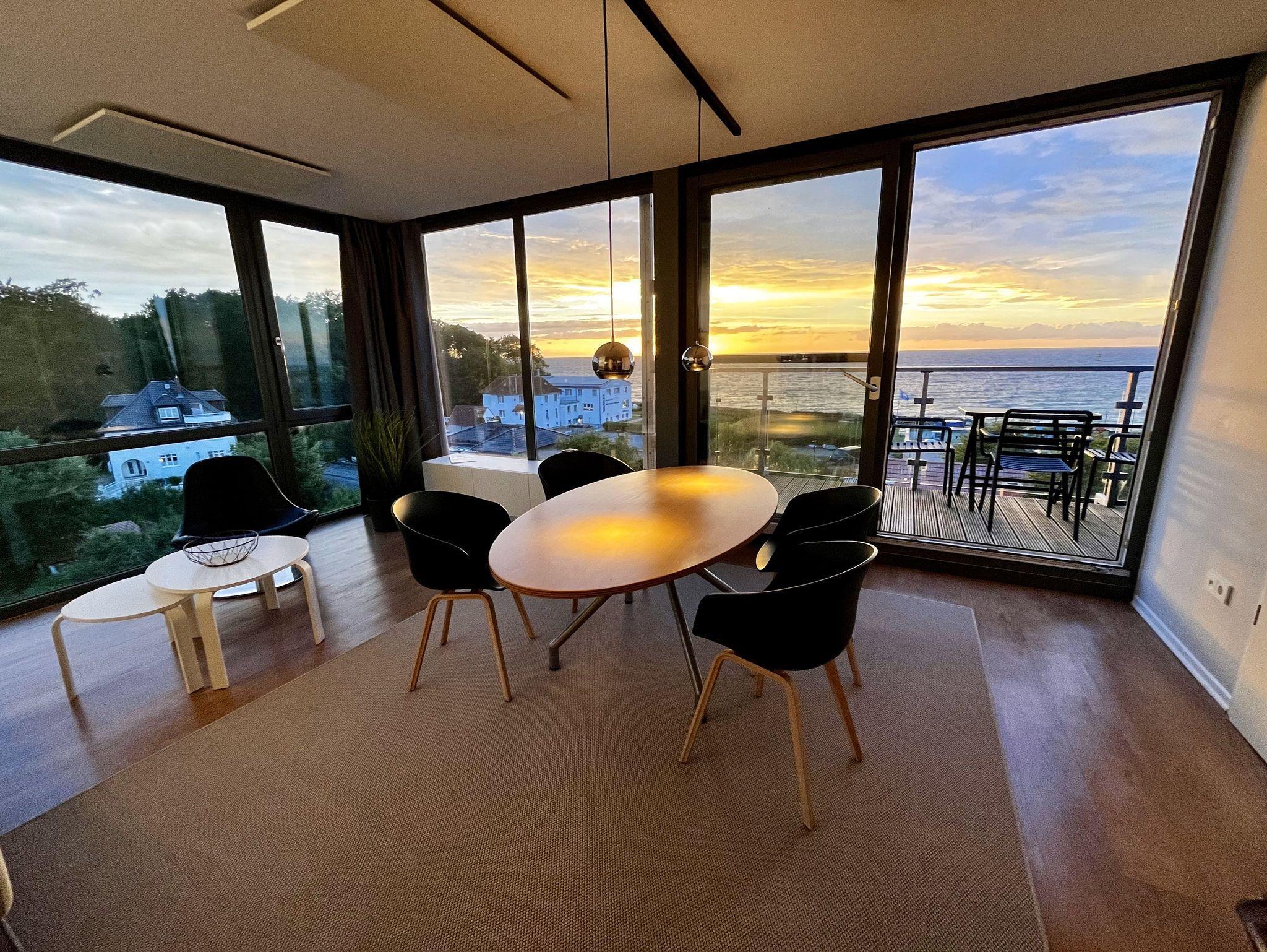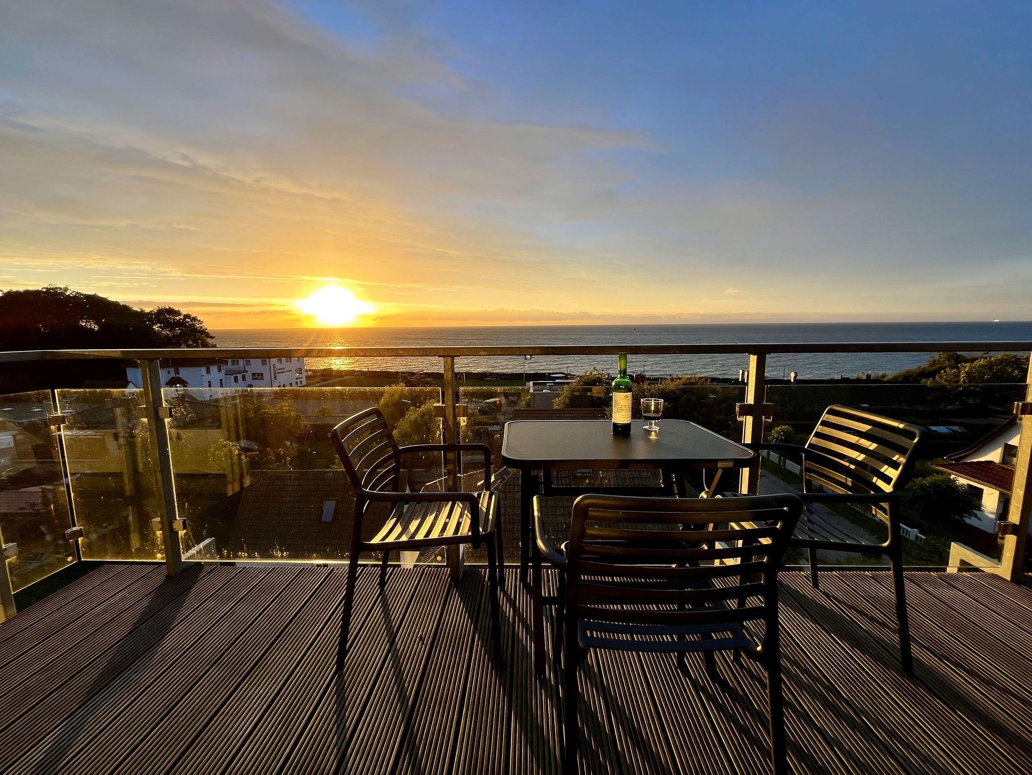 Wenn Sie die 3 Treppen (es gibt keinen Aufzug) geschafft haben, werden Sie mit einem atemberaubenden Ostsee-Panoramablick und wunderschönen Sonnenuntergängen über dem Wasser am Abend auf dem Balkon belohnt.