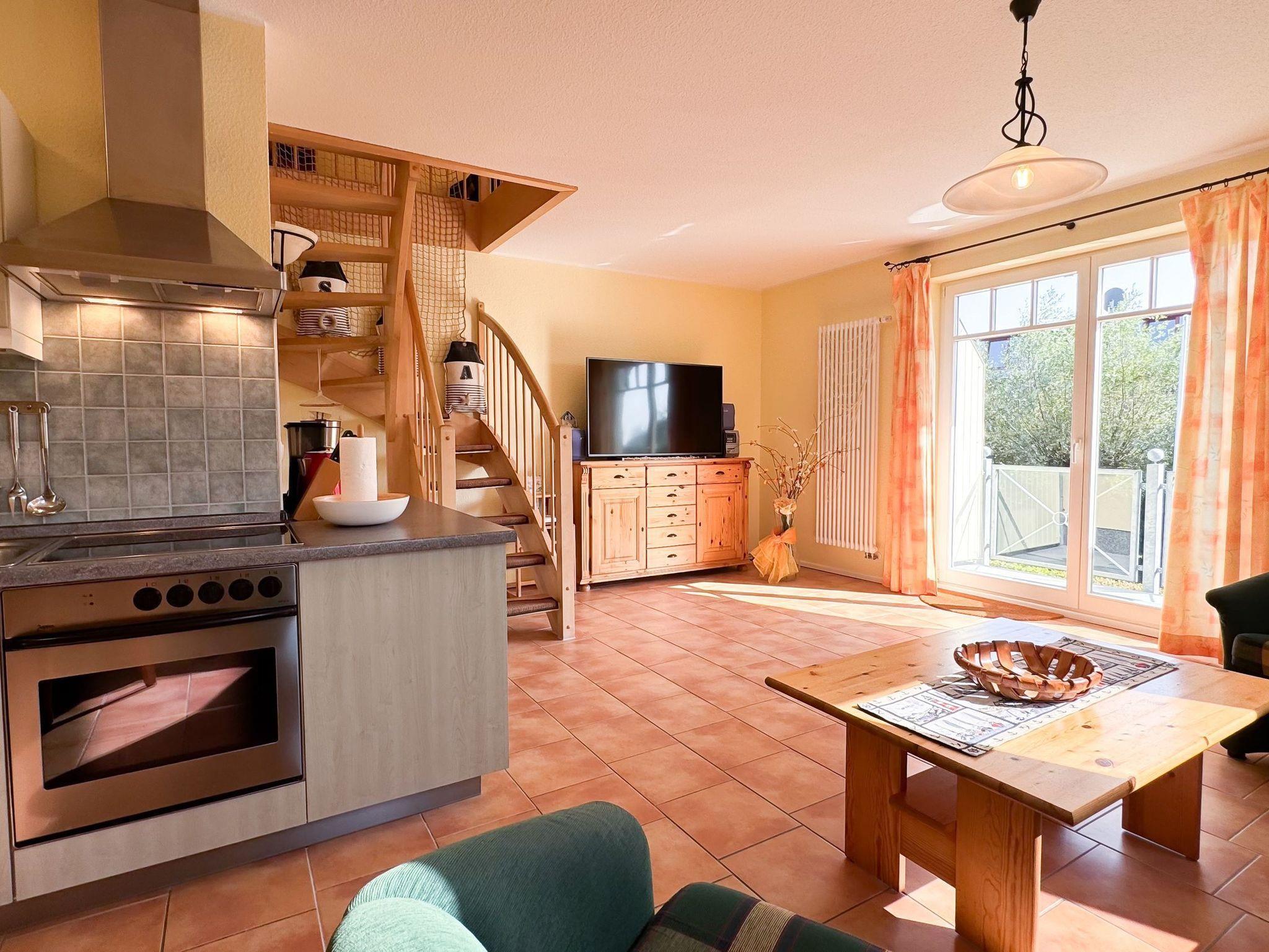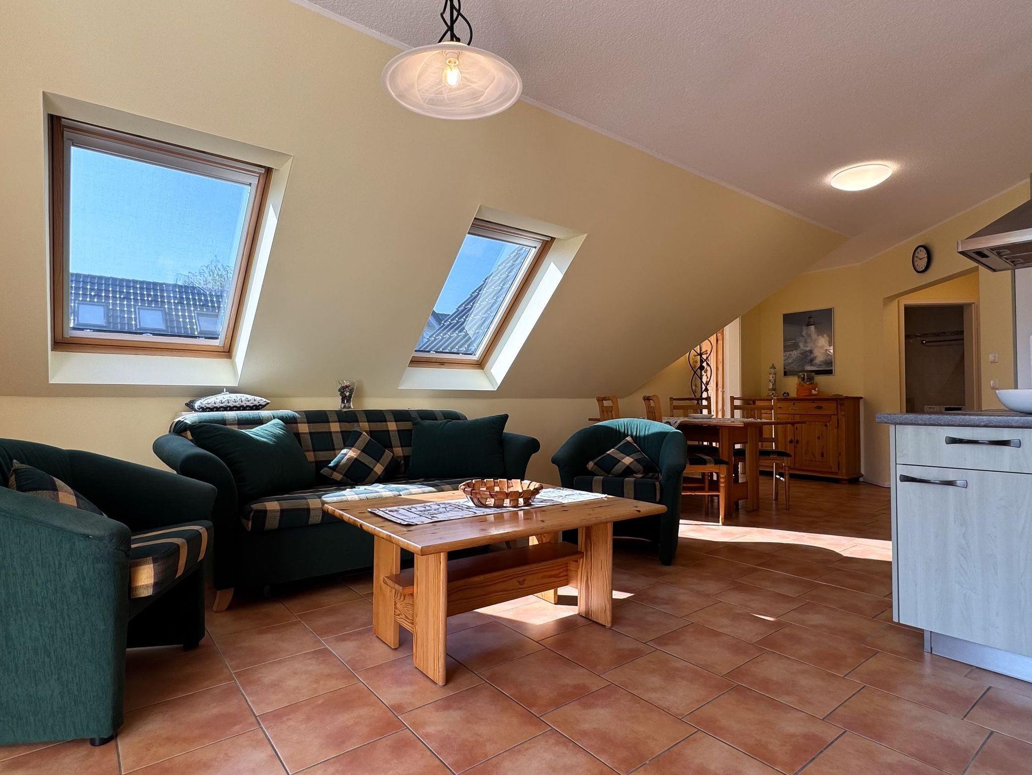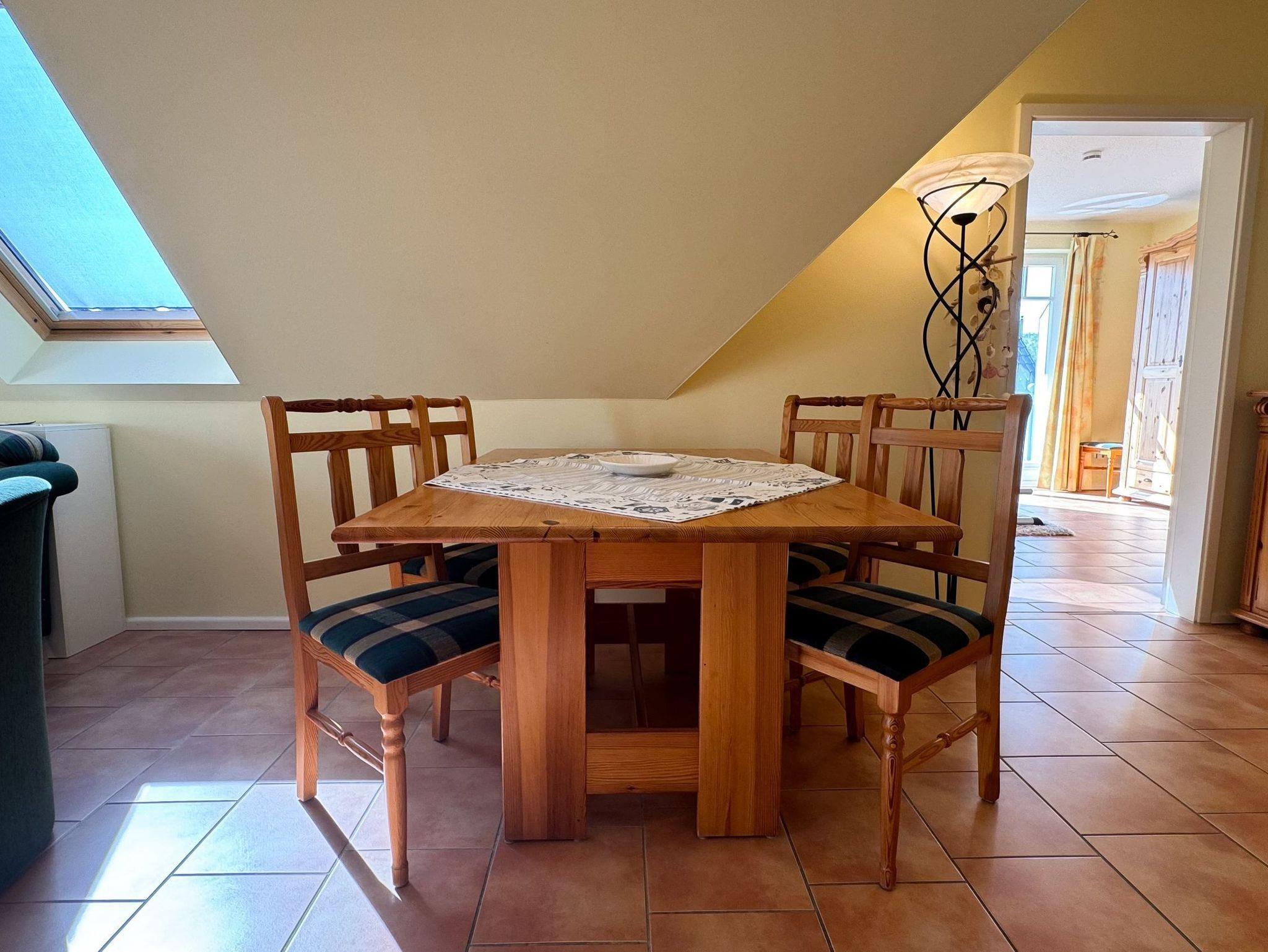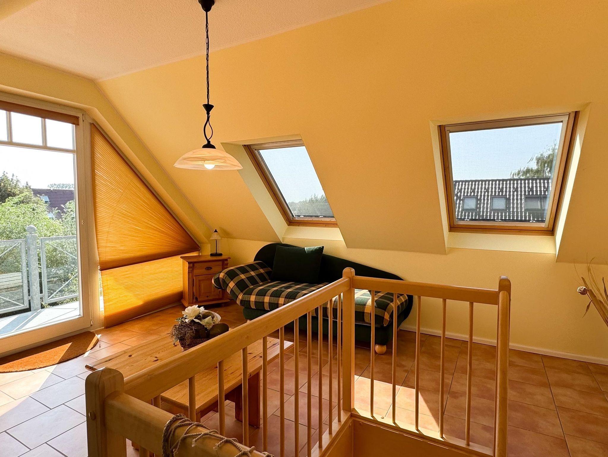 Die im Landhausstil ausgestattete Ferienwohnung befindet sich im Obergeschoss / Dachgeschoss eines Appartementhauses mit Meerblick.