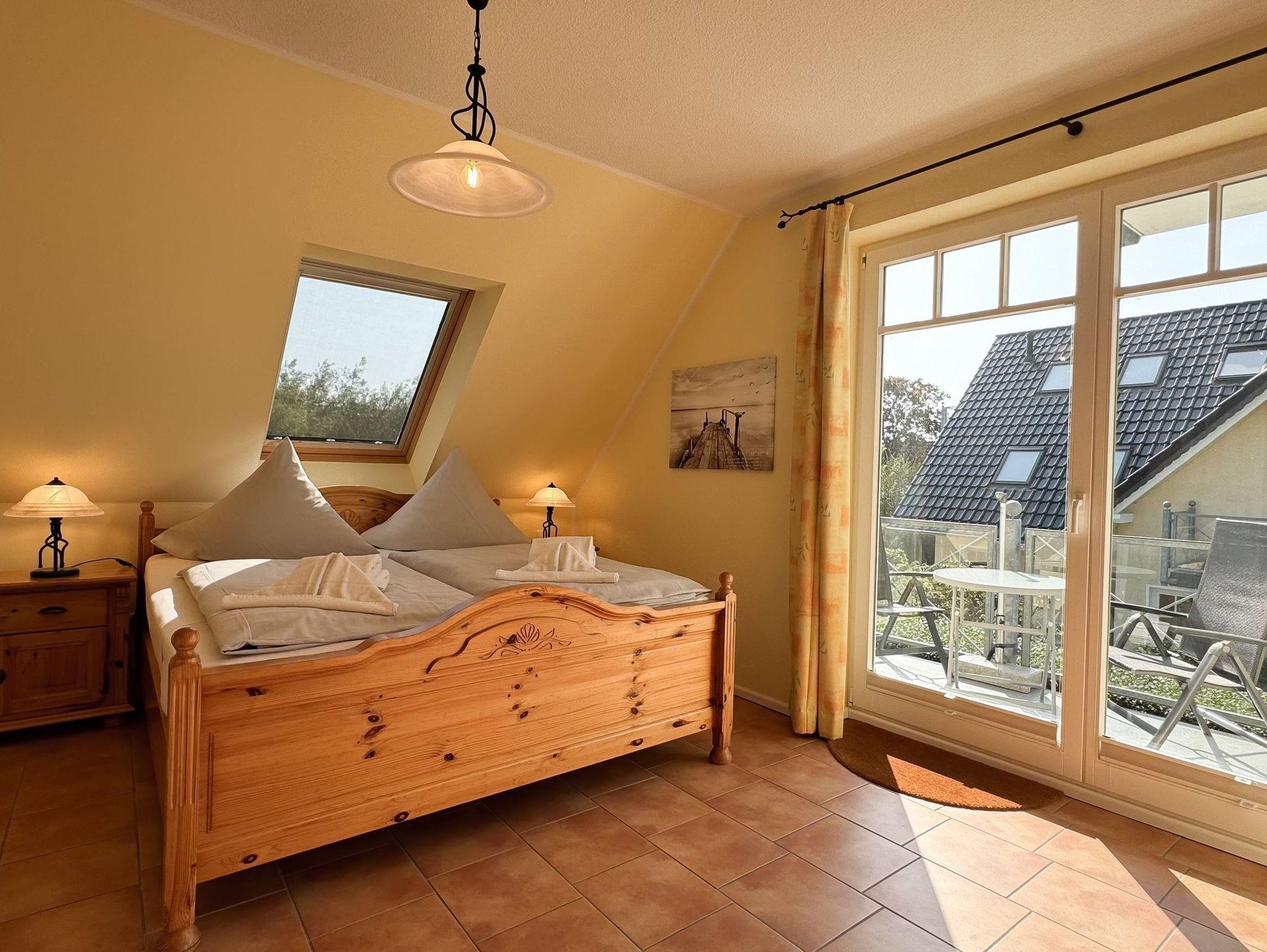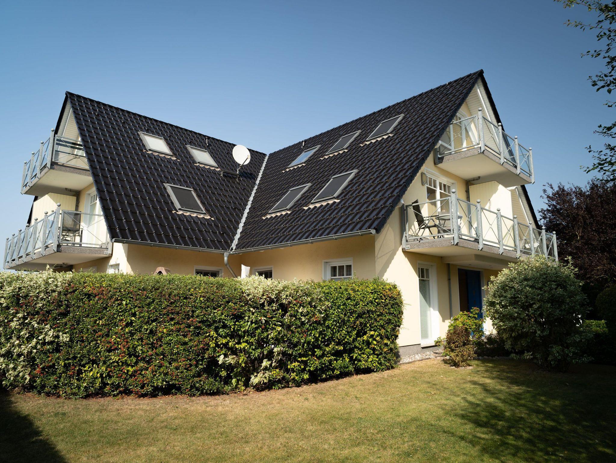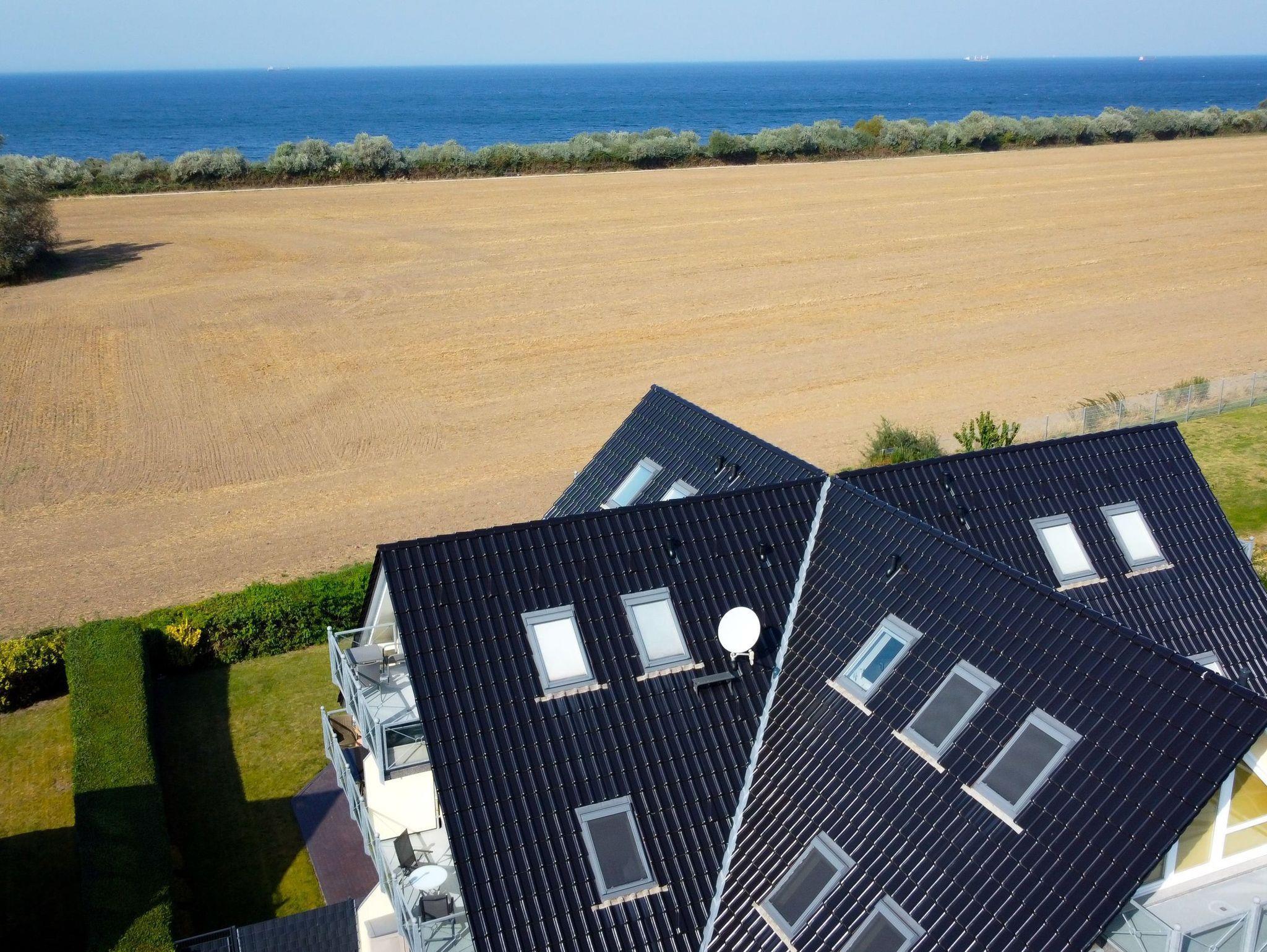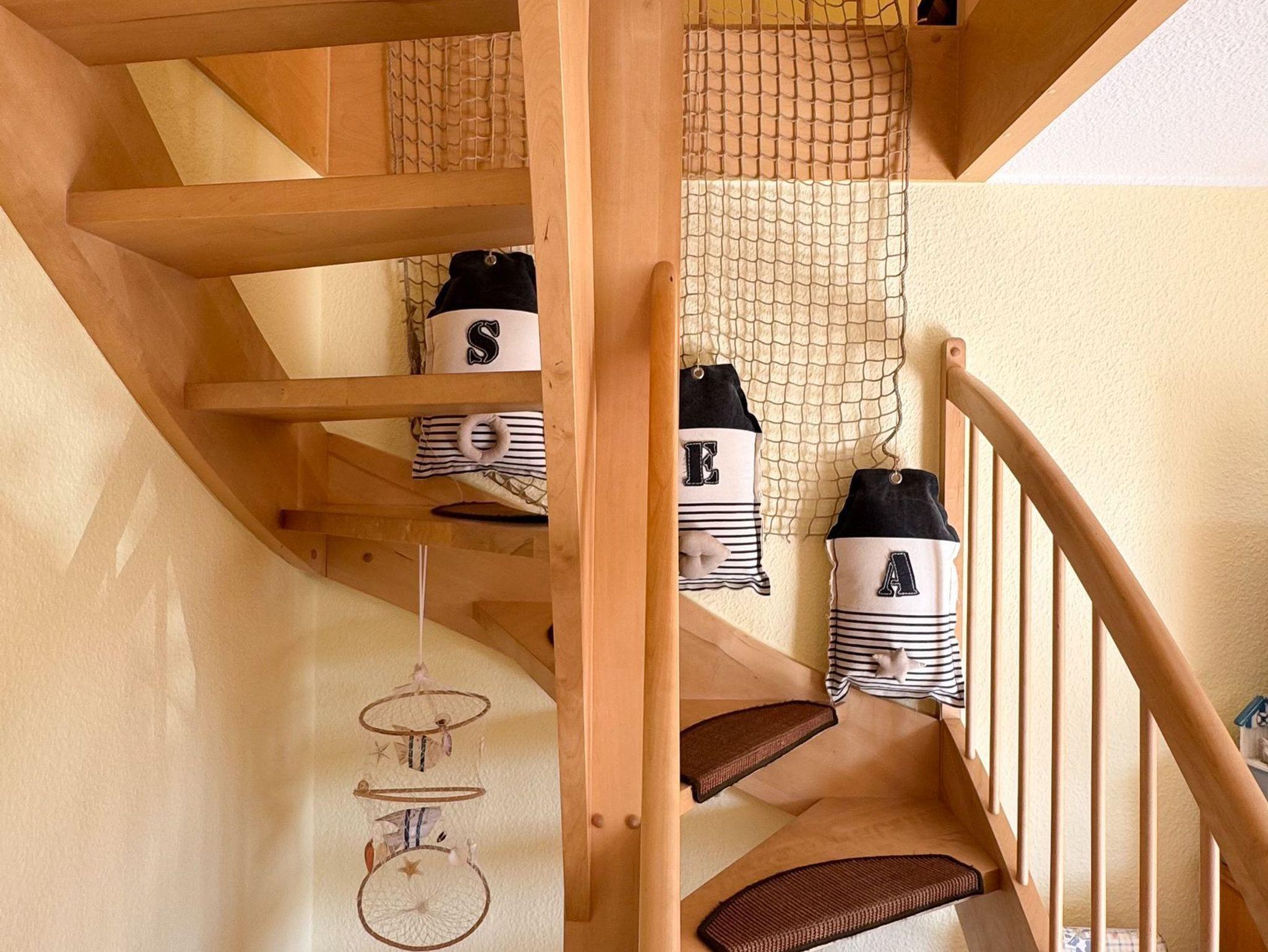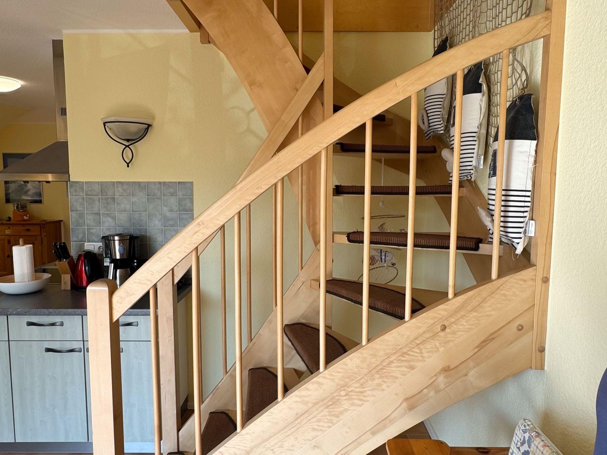 Die im Landhausstil ausgestattete Ferienwohnung befindet sich im Obergeschoss / Dachgeschoss eines Appartementhauses mit Meerblick.