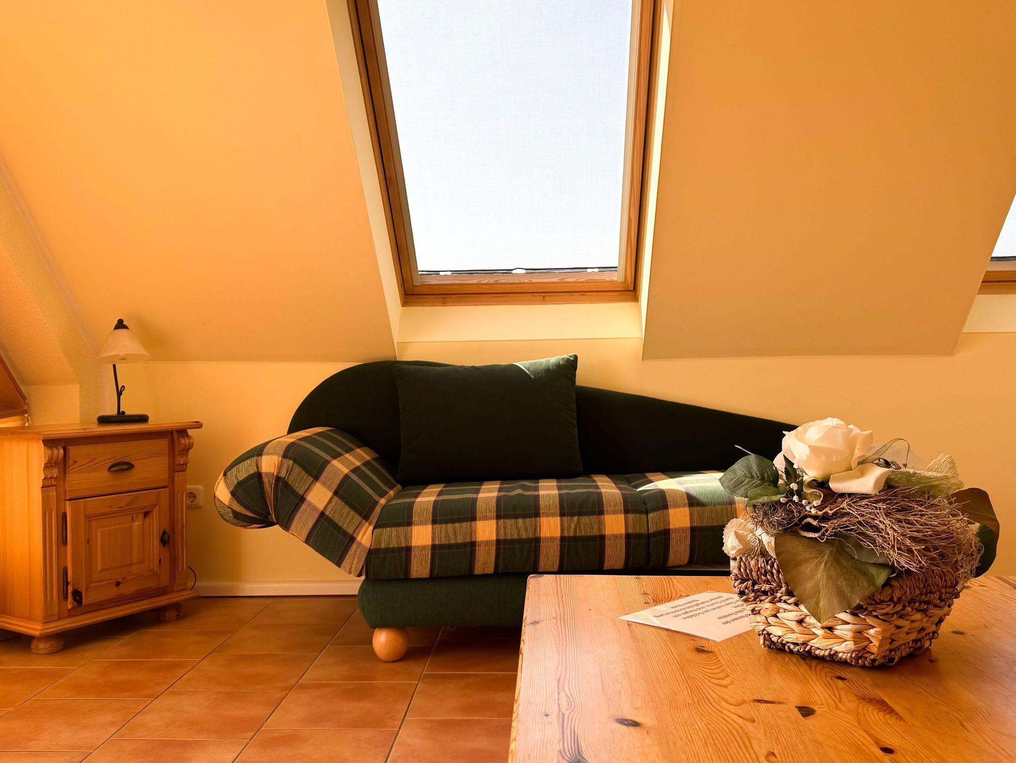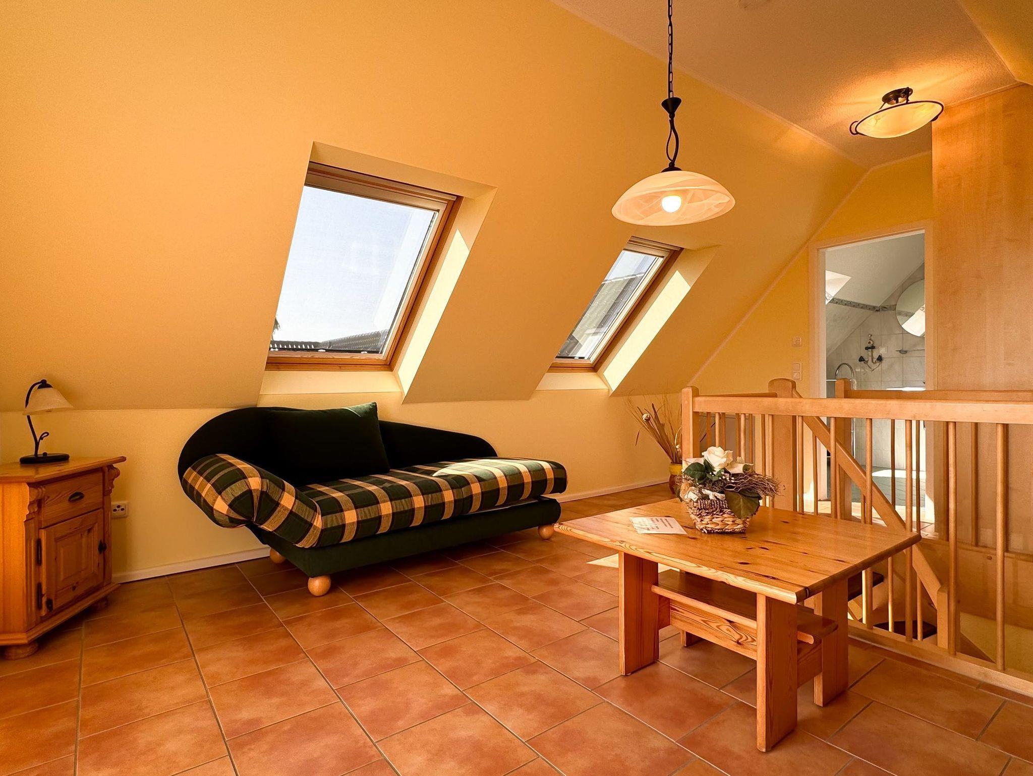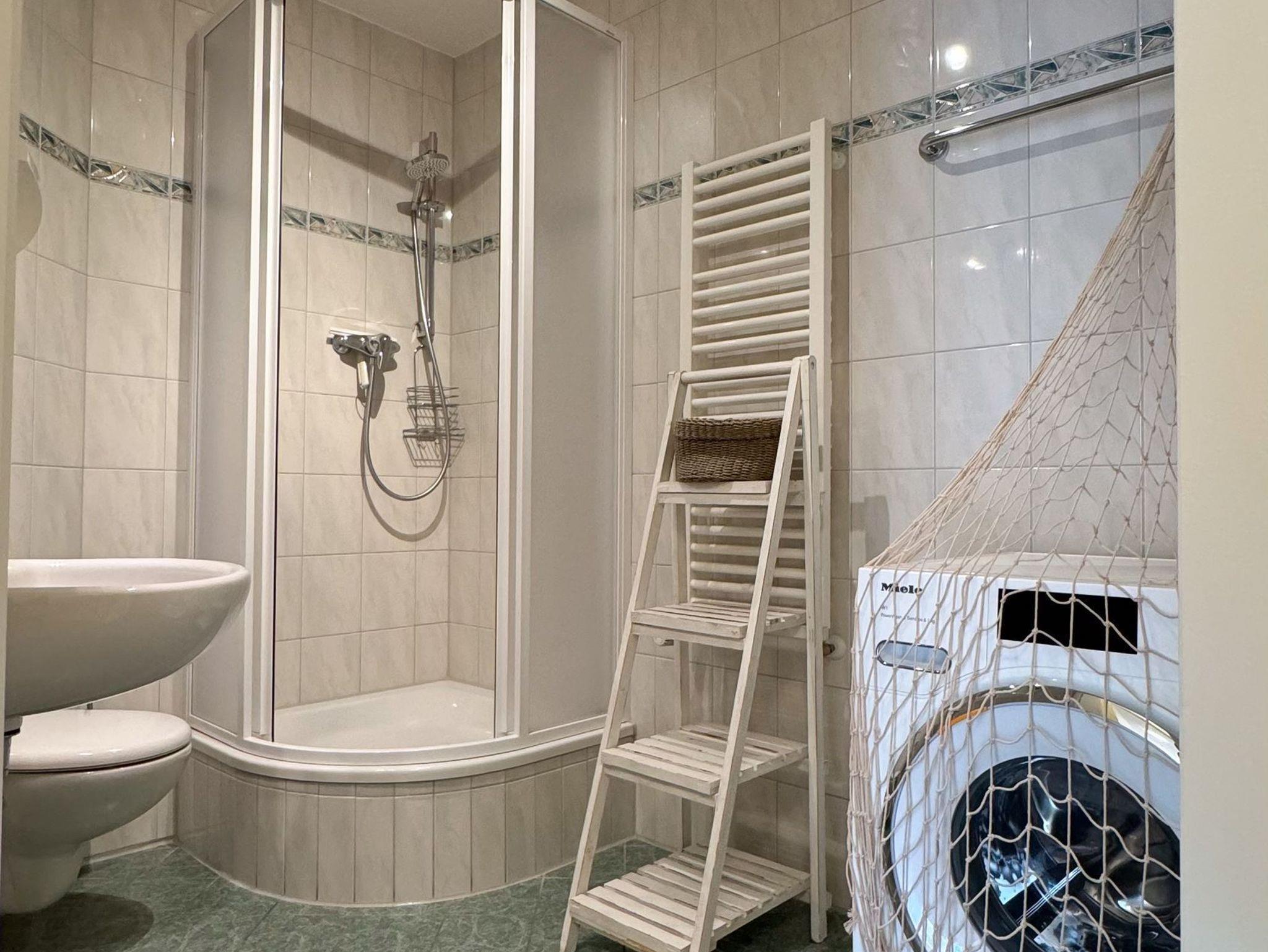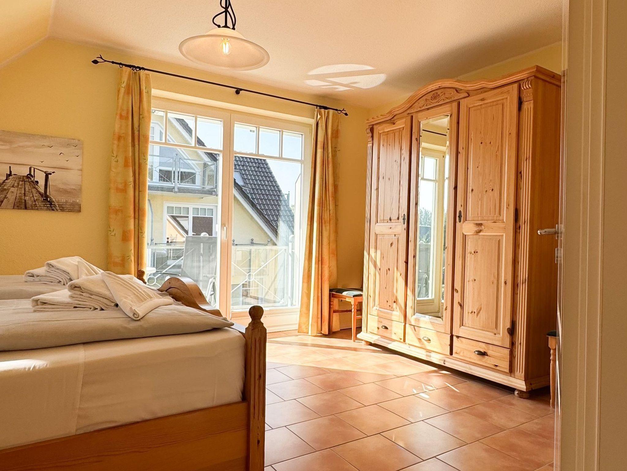 Die im Landhausstil ausgestattete Ferienwohnung befindet sich im Obergeschoss / Dachgeschoss eines Appartementhauses mit Meerblick.