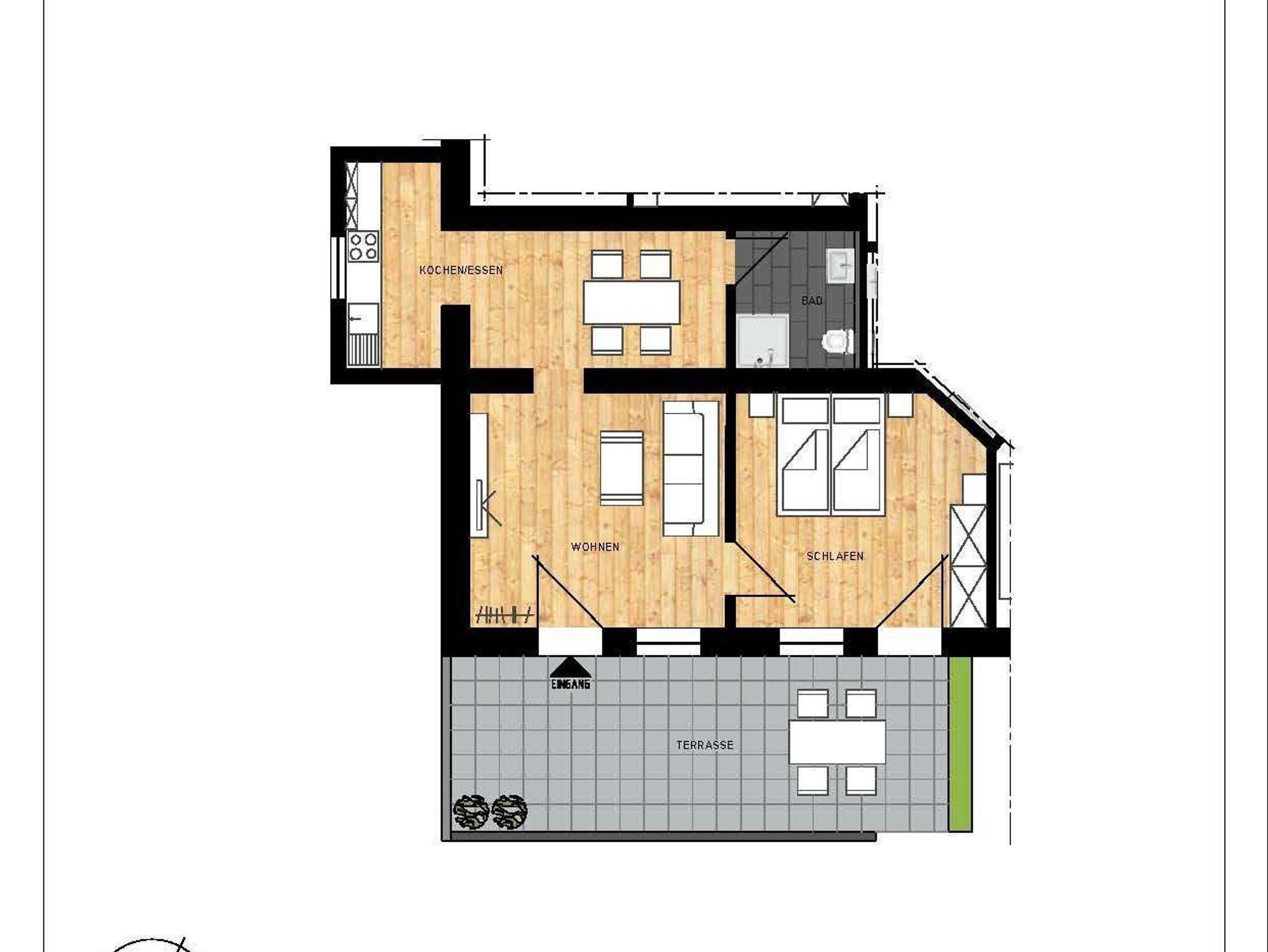 Die Wohnung ist komplett mit einem PVC-Boden in Eichenoptik ausgestattet und wurde frisch renoviert.