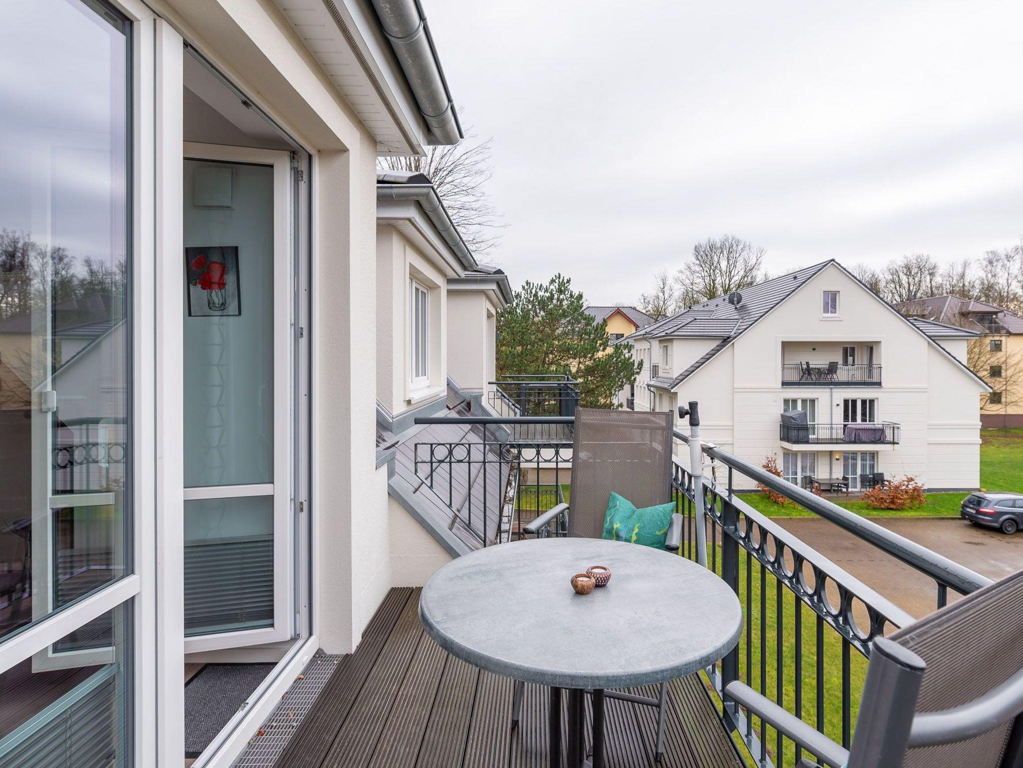 Moderne Zweizimmer-Obergeschoss-Wohnung mit großem Süd-West-Balkon mit Blick auf den Gespensterwald und nur wenigen Schritten zur Steilküste und zum Strand.