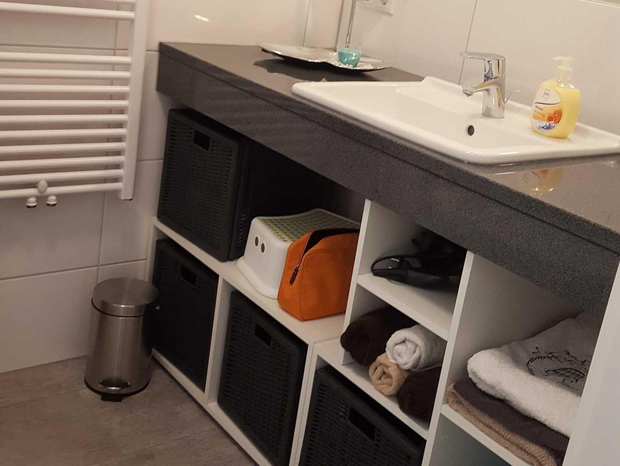 Im freundlichen Schlafzimmer haben Sie ein komfortables Doppelbett, einen geräumigen Einbaukleiderschrank und ein Flatscreen-TV. Das Badezimmer bietet eine ebenerdige Dusche sowie einen großen Waschtisch mit durchgehendem Spiegel und Fön. Die Ferienwohnung hat eine Fußbodenheizung und es gehört ein kostenfreier Außenstellplatz (ca. 30m vom Objekt entfernt) dazu.