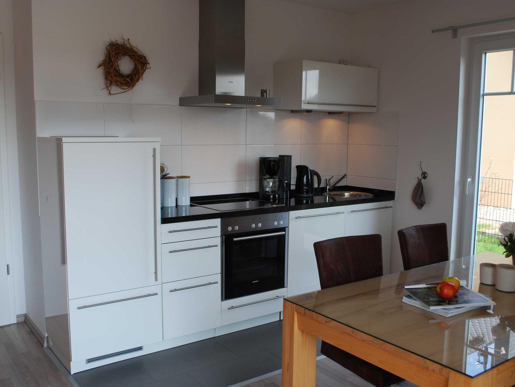 Die Steilküste ist nur einen Katzensprung entfernt. Steigen Sie in die Ostseefluten oder unternehmen Sie einen Spaziergang entlang der Küste bis in den Gespensterwald. Es erwartet Sie eine Wohnung mit viel Komfort für bis zu vier Personen. Hierzu gehören eine moderne hochwertige Einbauküche (inkl. Granitarbeitsplatte) mit Backofen, Kühlschrank inkl. Gefrierfach, Geschirrspülmaschine, Kaffeemaschine, Wasserkocher und Toaster. Die im Bad befindliche Waschmaschine können Sie kostenlos nutzen. Flachbildschirm TV, Stereoanlage, Blu-Ray und DVD Player sind vorhanden. Ein frei verfügbarer superschneller DSL Anschluß (100.000 kbit/s) mit W-LAN sorgt für den Kontakt in die weite Welt. Gebührenfreie Anrufe ins deutsche Festnetz können über das bereitgestellte Telefon getätigt werden. Für einen erholsamen Schlaf sorgen ein 2,2 m langes Doppelbett im Schlafzimmer sowie eine 2,20 x 1,40 m Schlafcouch im Wohnzimmer. Für Riesen wurden extra hohe Türen eingebaut. Und für die Kleineren sind ein Reisebabybettchen und ein Hochstuhl vorhanden. Wir bitten Handtücher und Bettwäsche mitzubringen. Hiermit weisen wir daraufhin das keine Vermietungen an gewerbliche Gäste möglich ist.