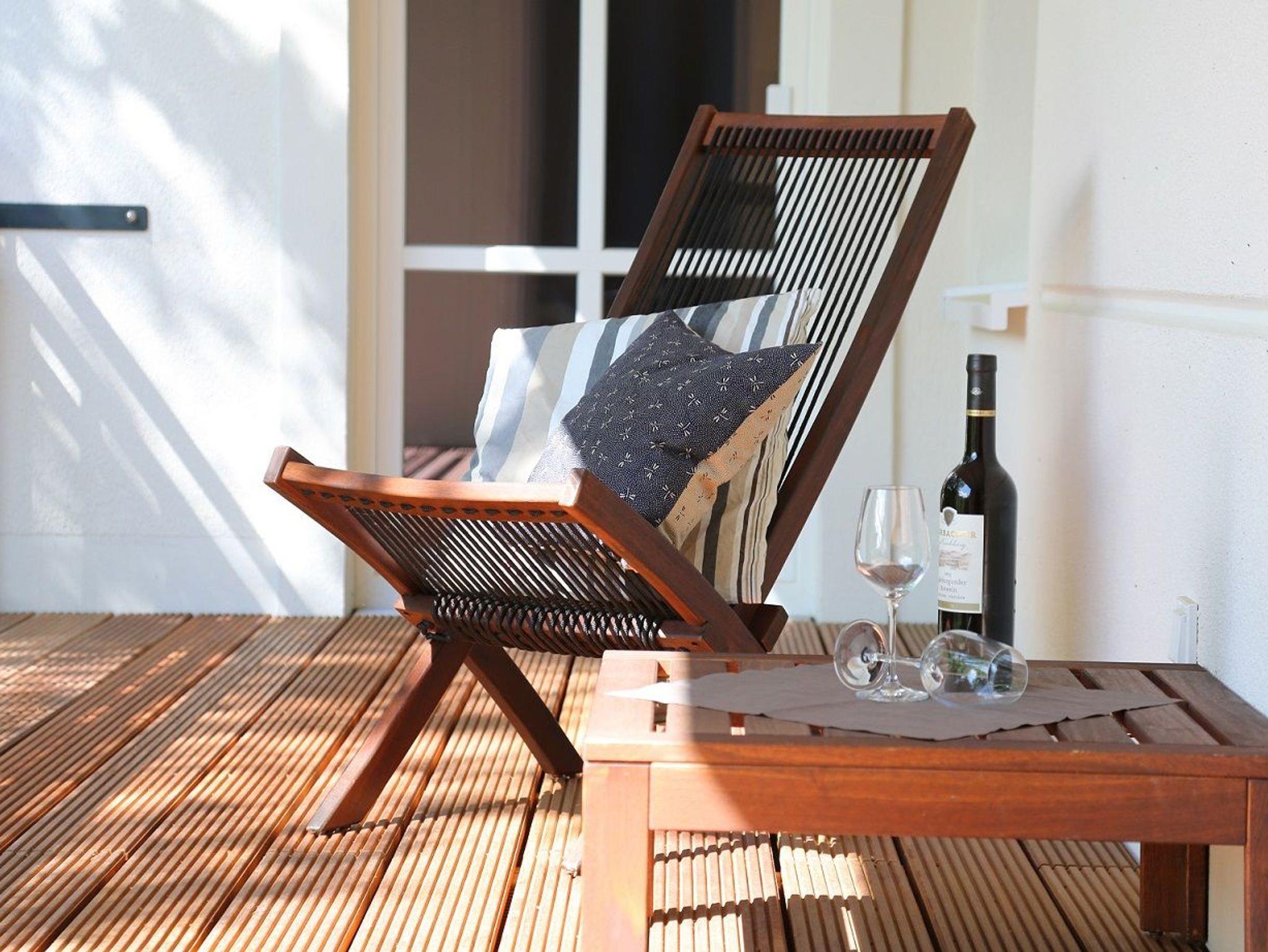 Der Balkon und unsere Loggia sind ideal für ein ausgiebiges Frühstück und laden am Abend zu einem Getränk nach einem sonnenreichen Tag am Strand ein.