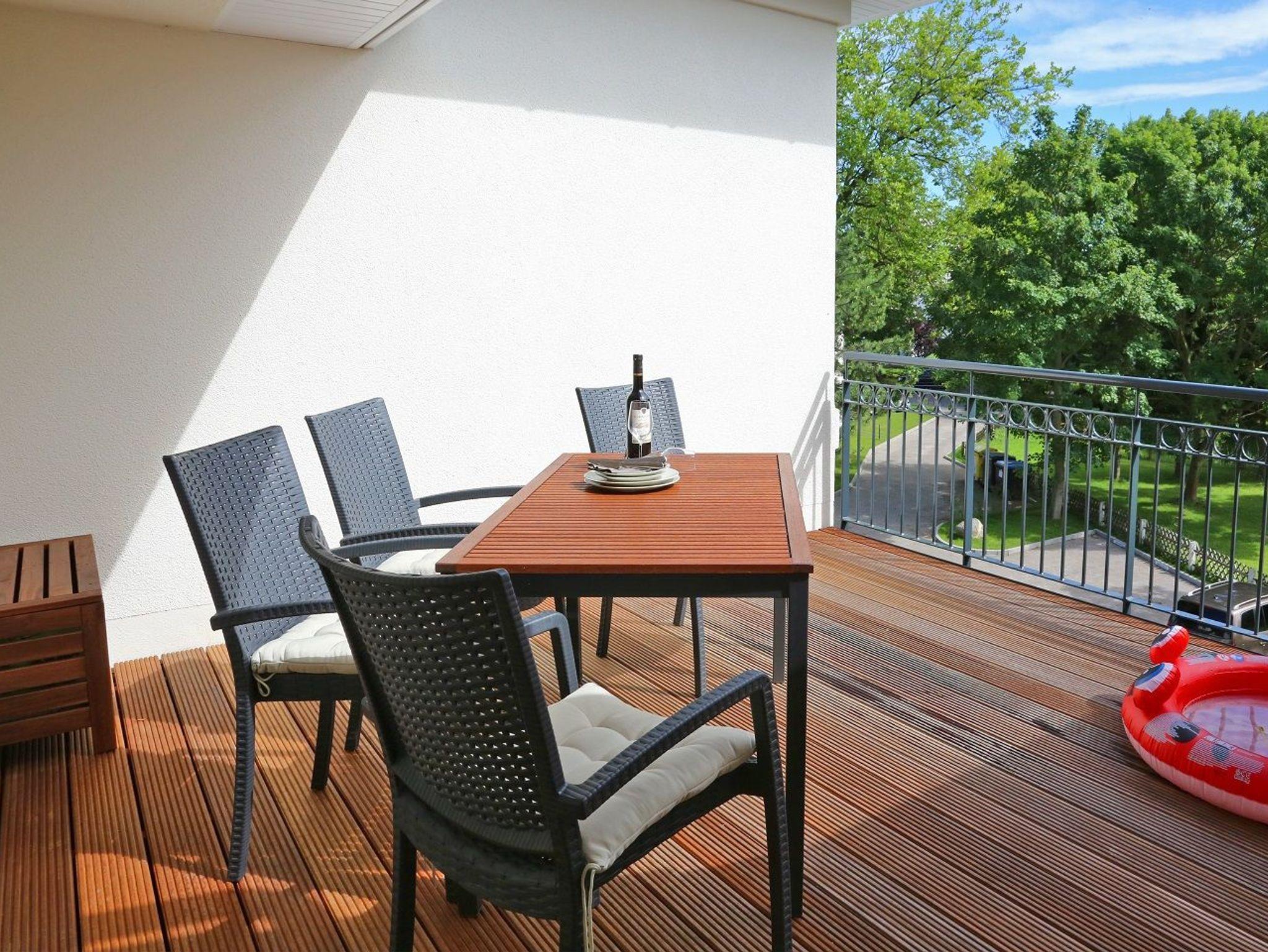 Unsere Ferienwohnung Käpt´n Blaubär mit Süd-Balkon (10m²) und wind- und blickgeschützter Loggia (14m²) gen Osten befindet sich im 2. Obergeschoss in einer 2015 fertiggestellten, architektonisch ansprechenden ruhigen Wohnanlage im idyllischen Ostseebad Nienhagen.