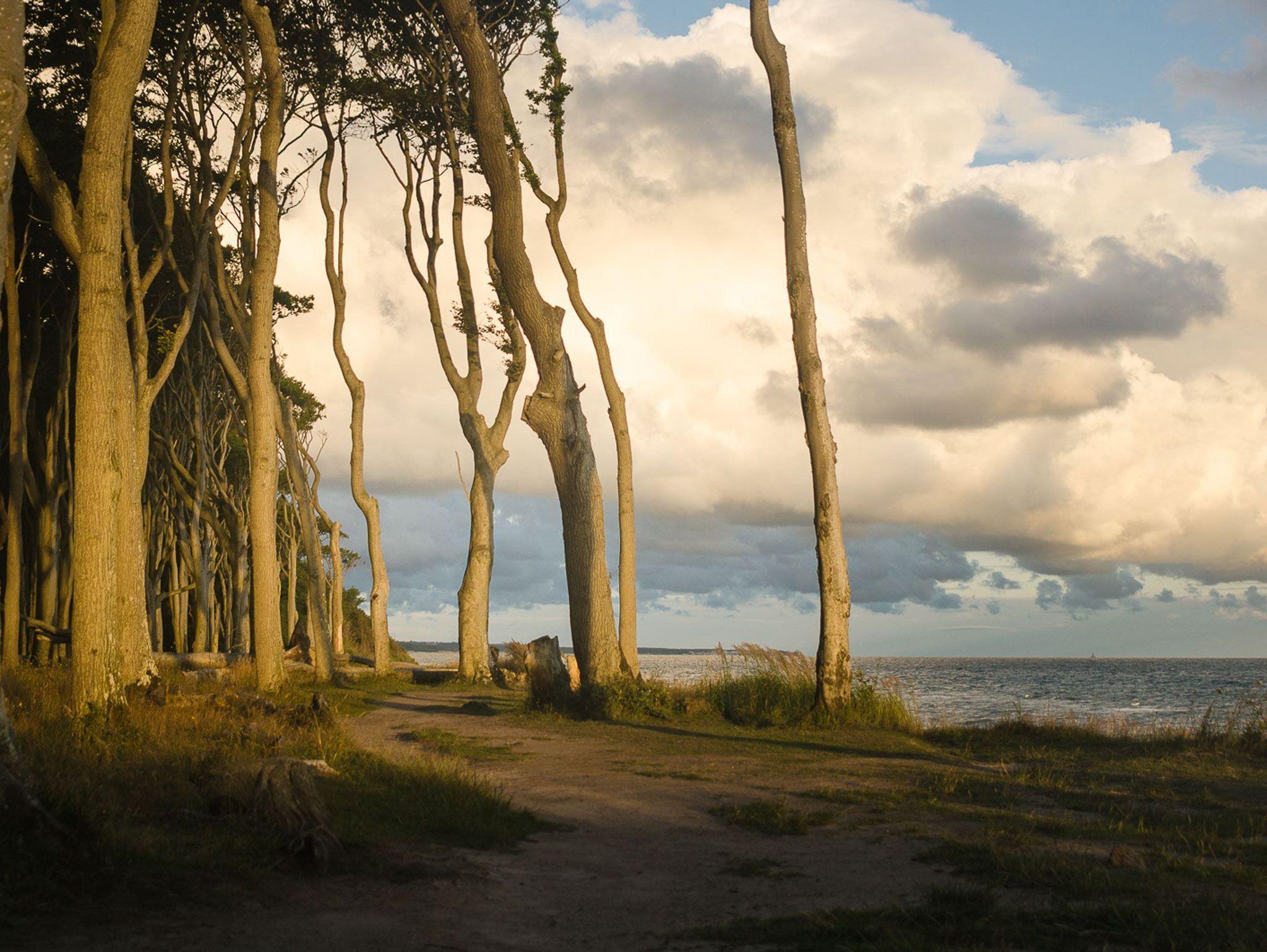 Rad- oder Wandertouren durch den Gespensterwald, beeindrucken durch Ihre Einzigartigkeit. Links der Hainbuchenwald bis dicht an die Steilküste, der besonders bei Nebel etwas unheimliches ausstrahlt, und rechts unter Ihnen das Meer. Im Frühjahr weiße Teppiche von Buschwindröschen, malerische Sonnenuntergänge, sattgelbe Rapsfelder, Natur pur.