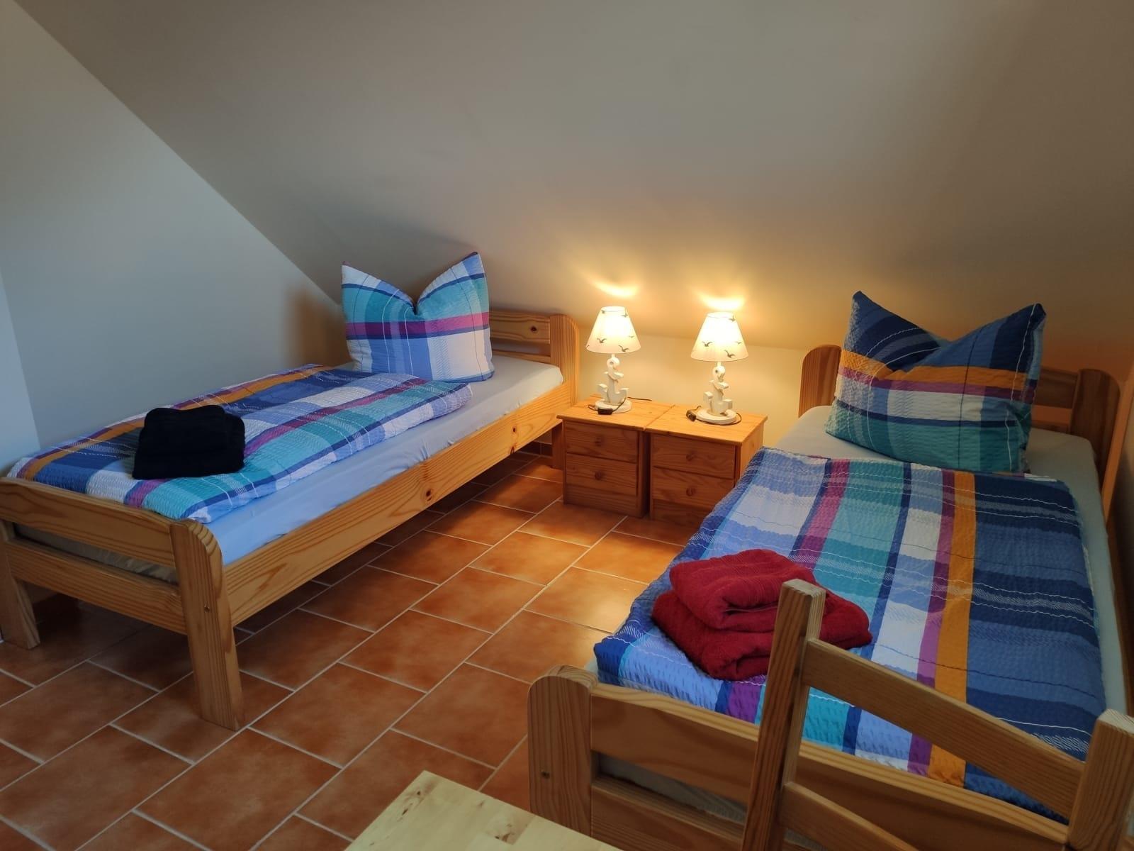 Die Ferienwohnung verfügt über zwei Schlafzimmer. Das SCHLAFZIMMER 1 verfügt über ein Doppelbett (180x200 cm), Kleiderschrank sowie Nachttisch und -lampen zu jeder Seite des Bettes. Hier ist ausreichend Platz für ein selbst mitgebrachten Babyreisebett. Das SCHLAFZIMMER 2 ist mit zwei Einzelbetten (90x200 cm), Kleiderschrank, Tisch mit 2 Stühlen sowie 2 Leselichtern ausgestattet.