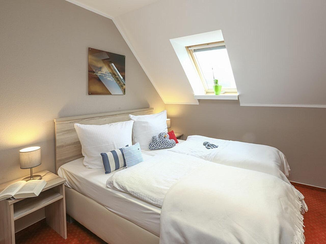 Hier befinden sich beide getrennt liegende Schlafzimmer, jeweils mit einem Doppelbett sowie einem geräumigen Kleiderschrank für Ihre Urlaubsgarderobe ausgestattet. Eines der Zimmer verfügt über ein zusätzliches Fernsehgerät.
