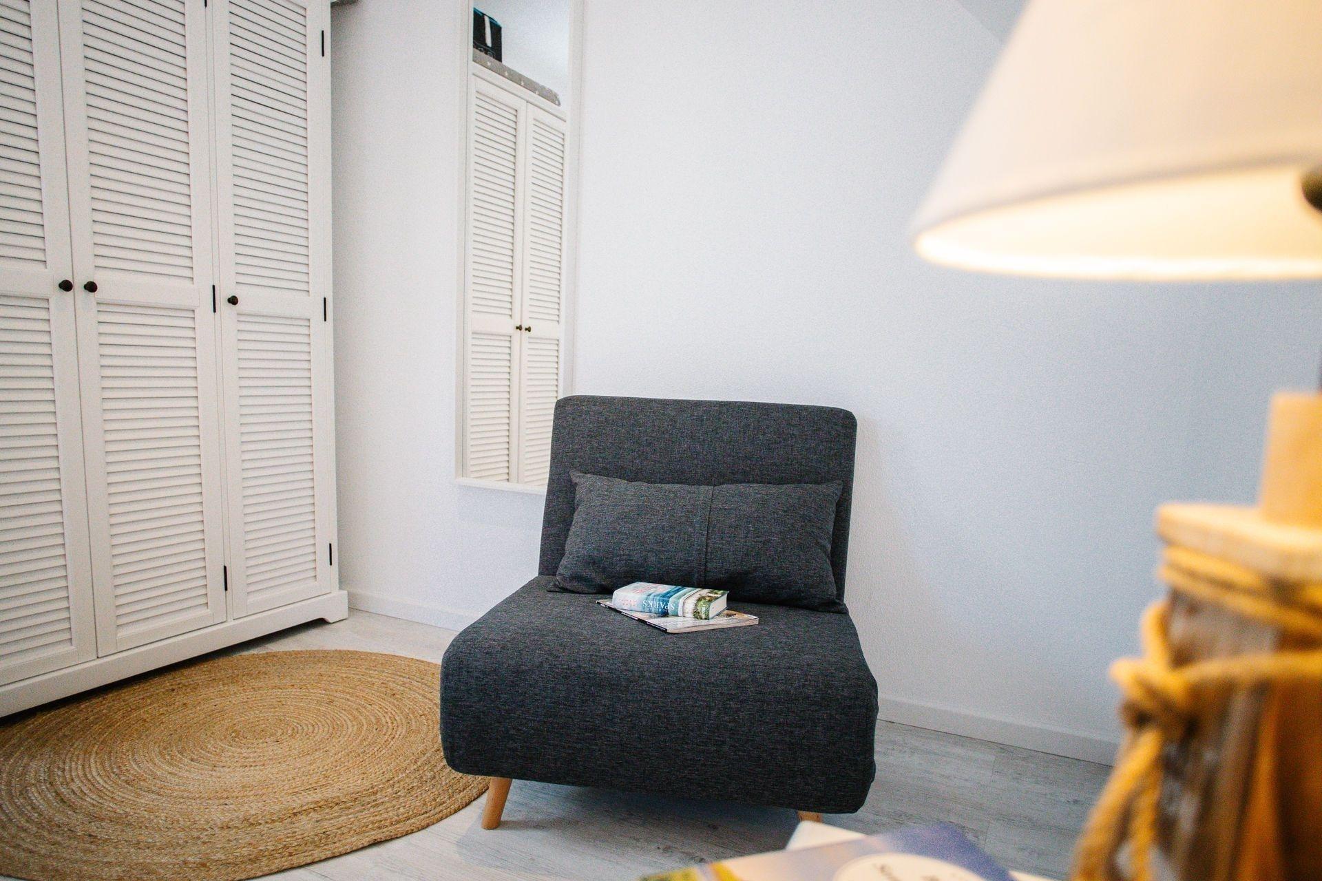 Die bequeme Couch im Wohnzimmer kann als Schlafmöglichkeit für eine weitere Person genutzt werden (Liegefläche 183 L x 108 B cm).