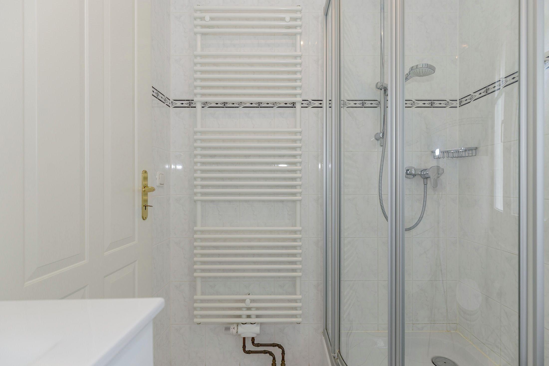 Das Badezimmer, ebenfalls im Obergeschoss befindlich, verfügt über eine Dusche, ein WC, einen Handtuchheizkörper sowie ein Waschbecken mit Unterschrank. Ablageflächen für Ihre Kosmetikartikel sind ebenso vorhanden.