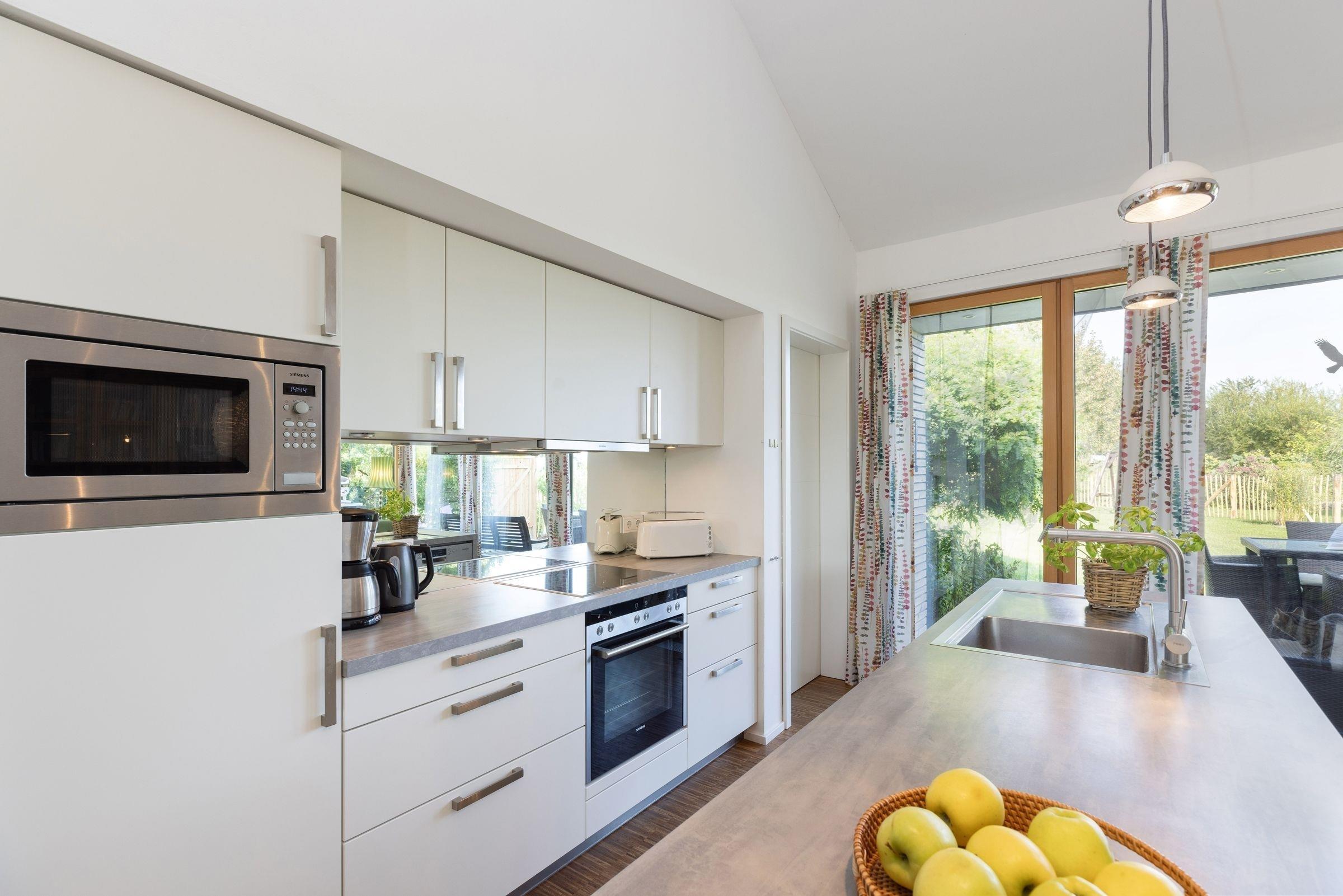 Ihr Domizil beeindruckt durch eine große Kuschelecke mit Kamin und Flat-TV, einer angrenzenden Küche und einem Essplatz für alle Gäste. Das lichtdurchflutete Wohnzimmer mit hohen Decken ist stilvoll eingerichtet und sorgt sofort für ein Wohlgefühl. Von hier haben Sie Zugang auf die 35 m² große Terrasse mit Nord-Ost-Ausrichtung, die dank Sonnenliegen und Gartenmöbeln zum Relaxen einlädt. Es steht Ihnen auch ein Holzkohlegrill und ein Gasgrill für lauschige Abende zur Verfügung. In der offenen, voll ausgestatteten Küche bereiten Sie leckere Köstlichkeiten zu. Sie haben die Möglichkeit sich in eines der 3 Schlafzimmer zum Träumen zurückzuziehen. Zwei der Schlafzimmer sind mit komfortablen Doppelbetten (2x 90x200 cm), Kleiderschrank, TV und Plissees ausgestattet. Eines der 3 Schlafzimmer verfügt über ein Einzelbett (90x200 cm), Kleiderschrank und ebenfalls Plissees. Genießen Sie den Komfort einer bodengleichen Dusche oder lassen Sie sich eine Badewanne ein, nach langen Spaziergängen am Strand. Eine Sauna macht dieses Ferienhaus auch in der kalten Jahreszeit zu einem tollen Reiseziel.
