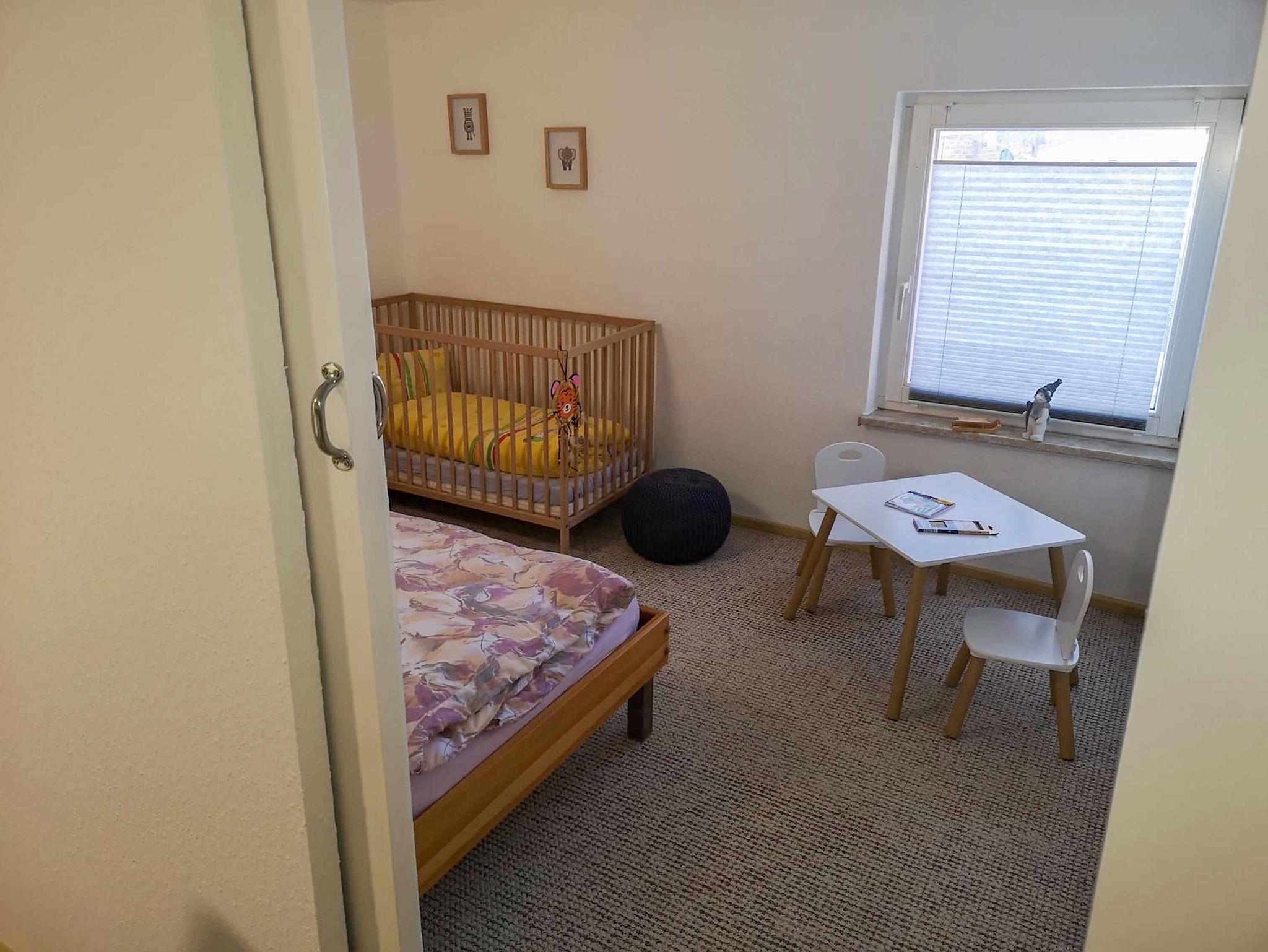 Die 77 m² große Ferienwohnung befindet sich in zentraler Lage im Dorfkern von Niepars, im Obergeschoss eines Einfamilienhauses. Die 3-Zimmer-Wohnung besteht aus einem gemütlichen Wohnraum und zwei Schlafzimmern, einer separaten Küche, großem Flur und einem Badezimmer mit Dusche und bietet genügend Platz für 3 Personen und einem Kind bis 2 Jahre. Im Wohnzimmer steht eine Couchgarnitur mit 2 Sesseln und ein Fernseher. Ein Schlafzimmer ist mit einem fanzösischen Bett (160x200) und das andere Zimmer mit einem Einzelbett (90x200) und einem Kinderbett sowie Kindertisch mit 2 Stühlen ausgestattet. Für Kinder stehen zudem ein Hochstuhl, ein Topf, ein Kindertoilettensitz, eine kleine Wanne zum Baden und ein Tritthocker für das Waschbecken zur Verfügung. Die separate Küche mit Esstisch ist mit einem kleinen Kühlschrank mit Gefriermöglichkeit, 2 Herdplatten, Wasserkocher, Kaffeemaschine, Toaster und Mikrowelle ausgestattet. Die Decke in der gesamten Wohnung ist 1,87 m bis maximal 1,93 m hoch. Ein PKW-Stellplatz und Fahrradunterstellmöglichkeiten sind kostenfrei auf dem Grundstück vorhanden. Bei schönem Wetter lädt die Sitzecke auf dem Hof zum Verweilen und Grillen ein. Für Sportler steht eine Tischtennisplatte bereit.