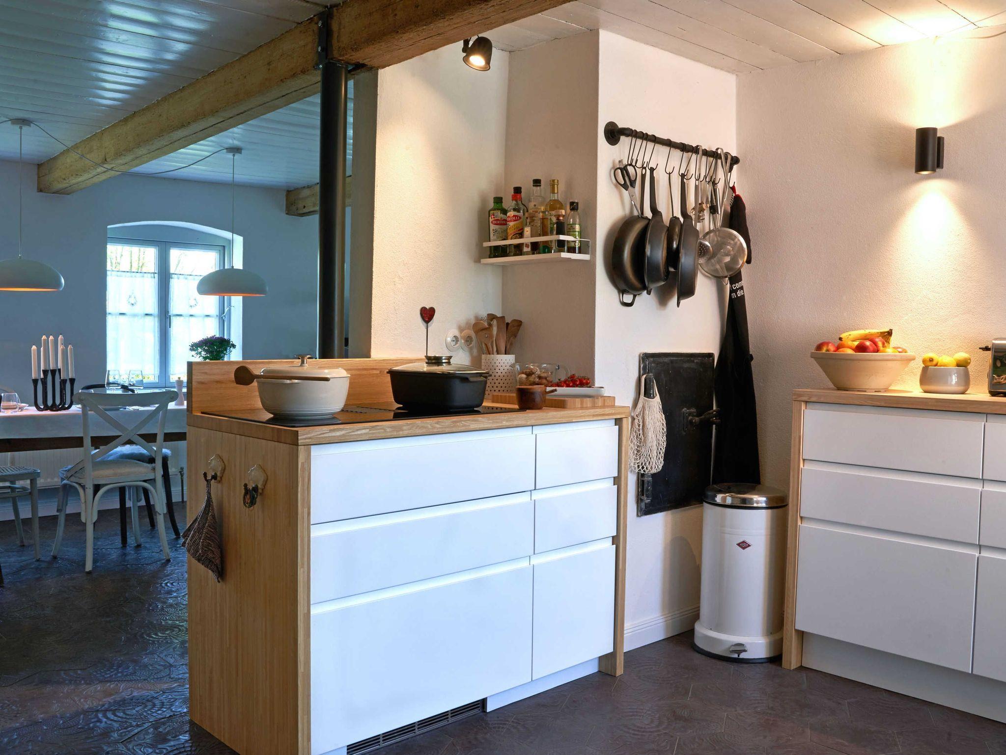 • Wohn- u. Essbereich mit schwenkbarem Wand-TV, Kaminofen und anliegender gut ausgestatteter Küche