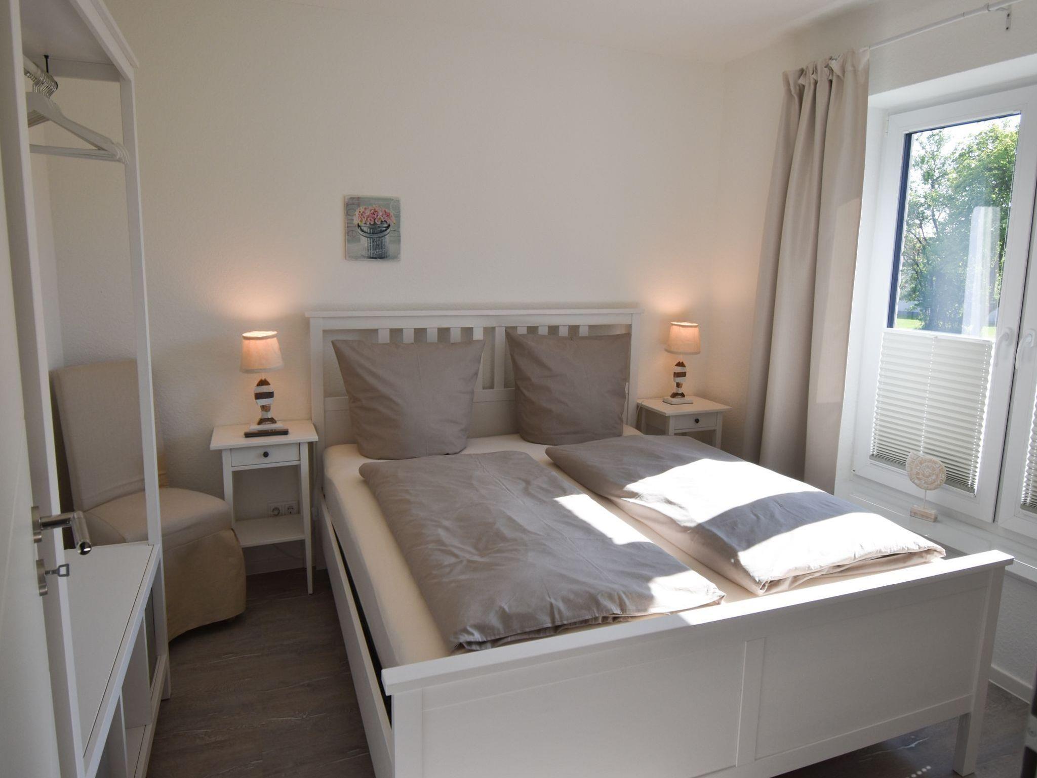 • zwei Schlafzimmer mit Doppelbett und TV; Bettwäsche ist zu buchbar (auch für ein Kinderbett); fest installiertes Fliegengitter im Lüftungsfenster; Selbstversorger benötigen für die durchgehende Matratze ein 200 x 200 großes Spannbettlaken