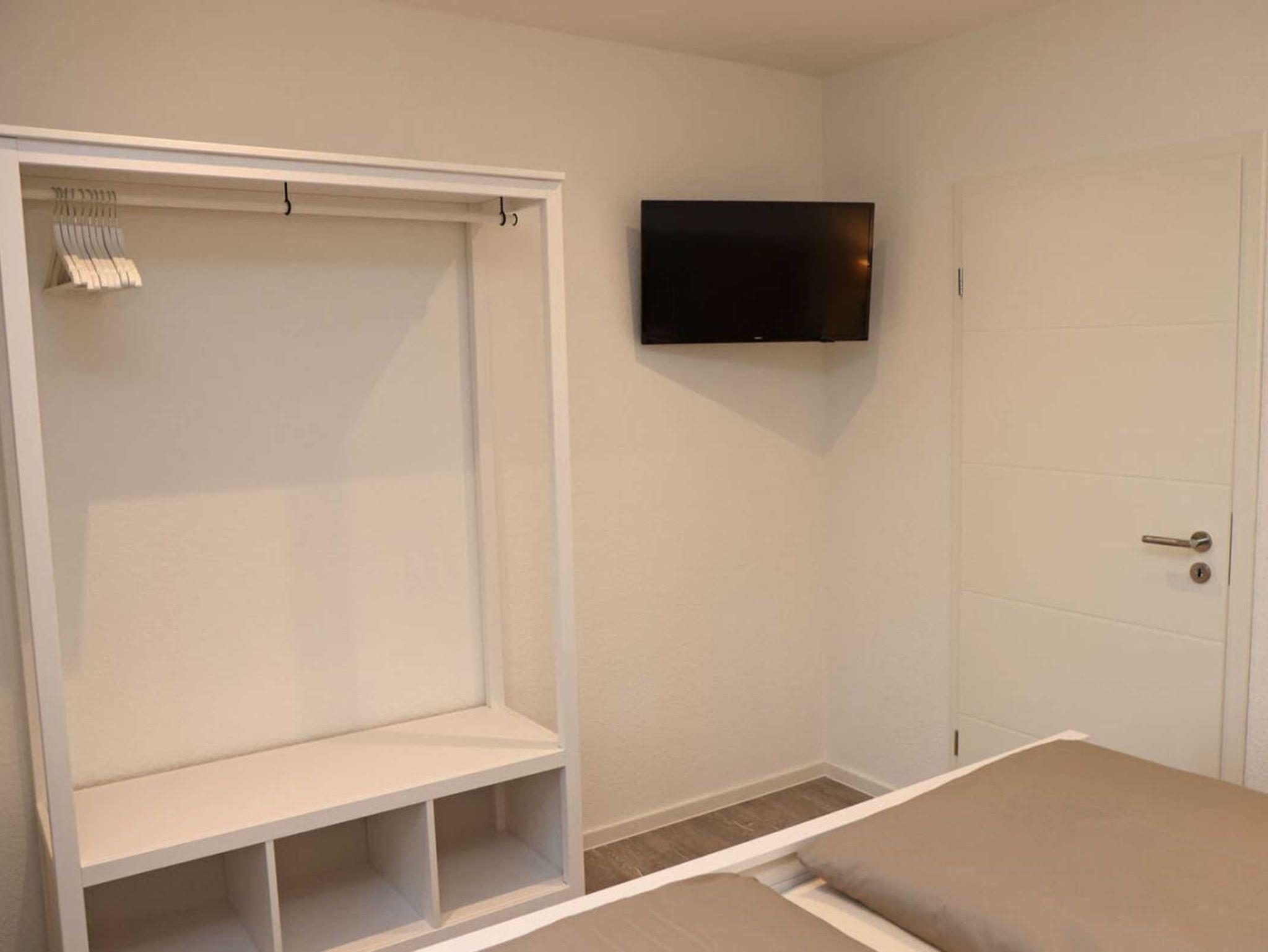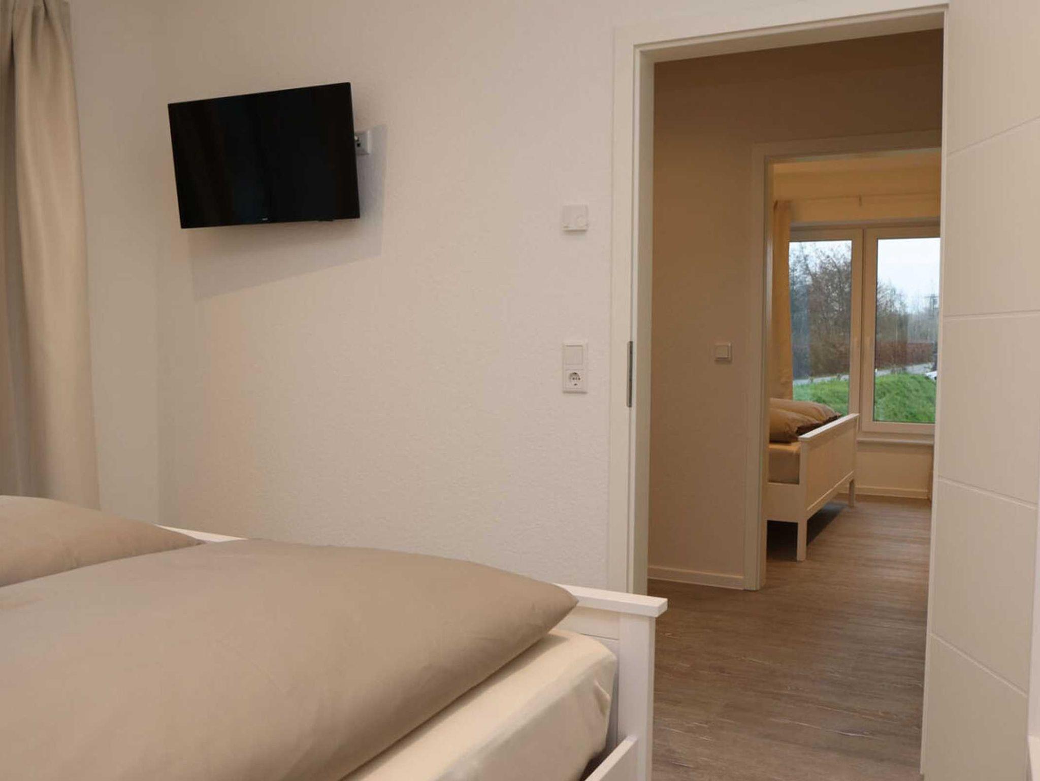 • zwei Schlafzimmer mit Doppelbett und TV; Bettwäsche ist zu buchbar (auch für ein Kinderbett); fest installiertes Fliegengitter im Lüftungsfenster; Selbstversorger benötigen für die durchgehende Matratze ein 200 x 200 großes Spannbettlaken