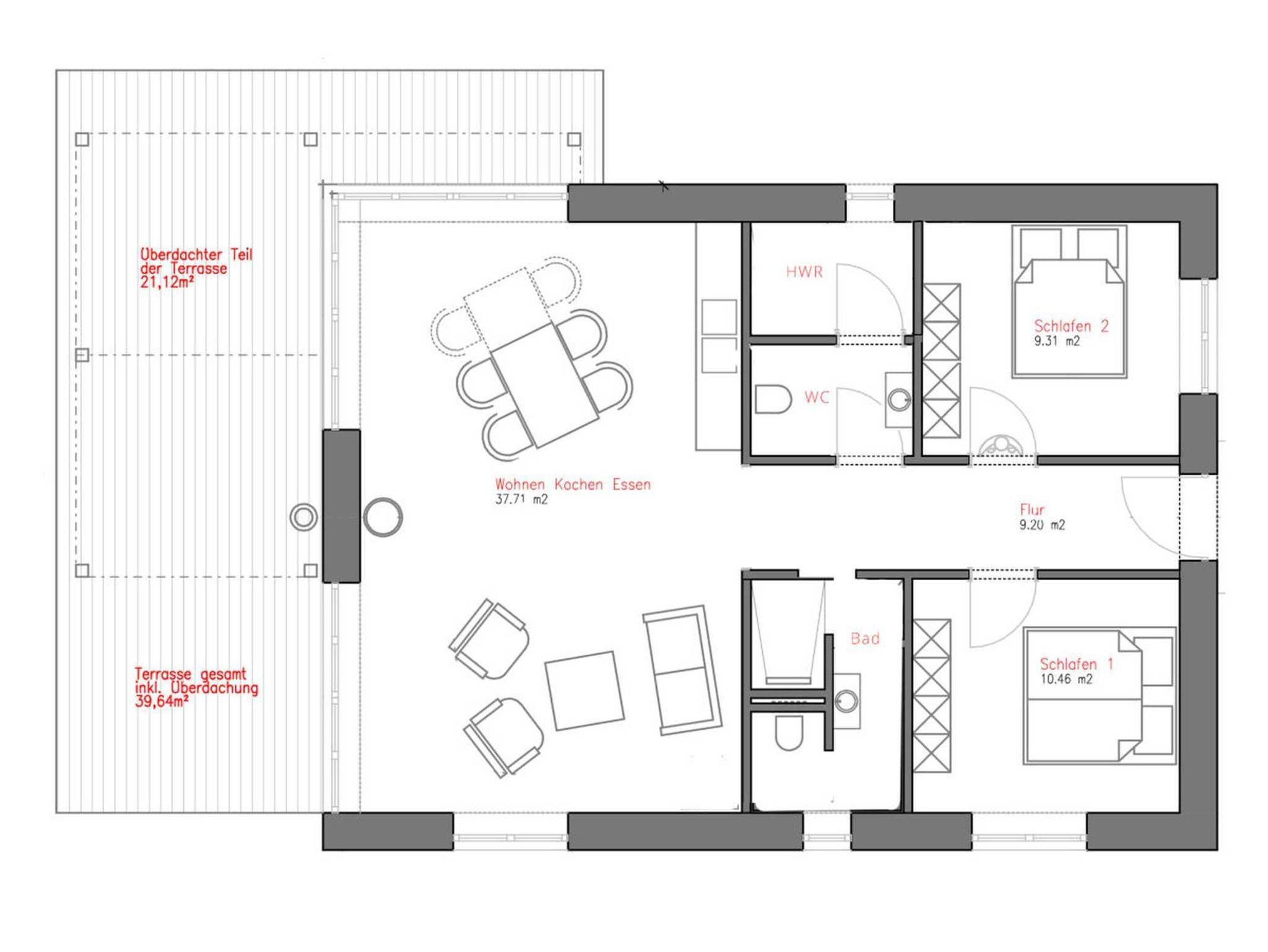 • teilweise überdachte Terrasse in Südwest Richtung mit Sitzmöbeln, Sonnenliegen und Gasgrill
