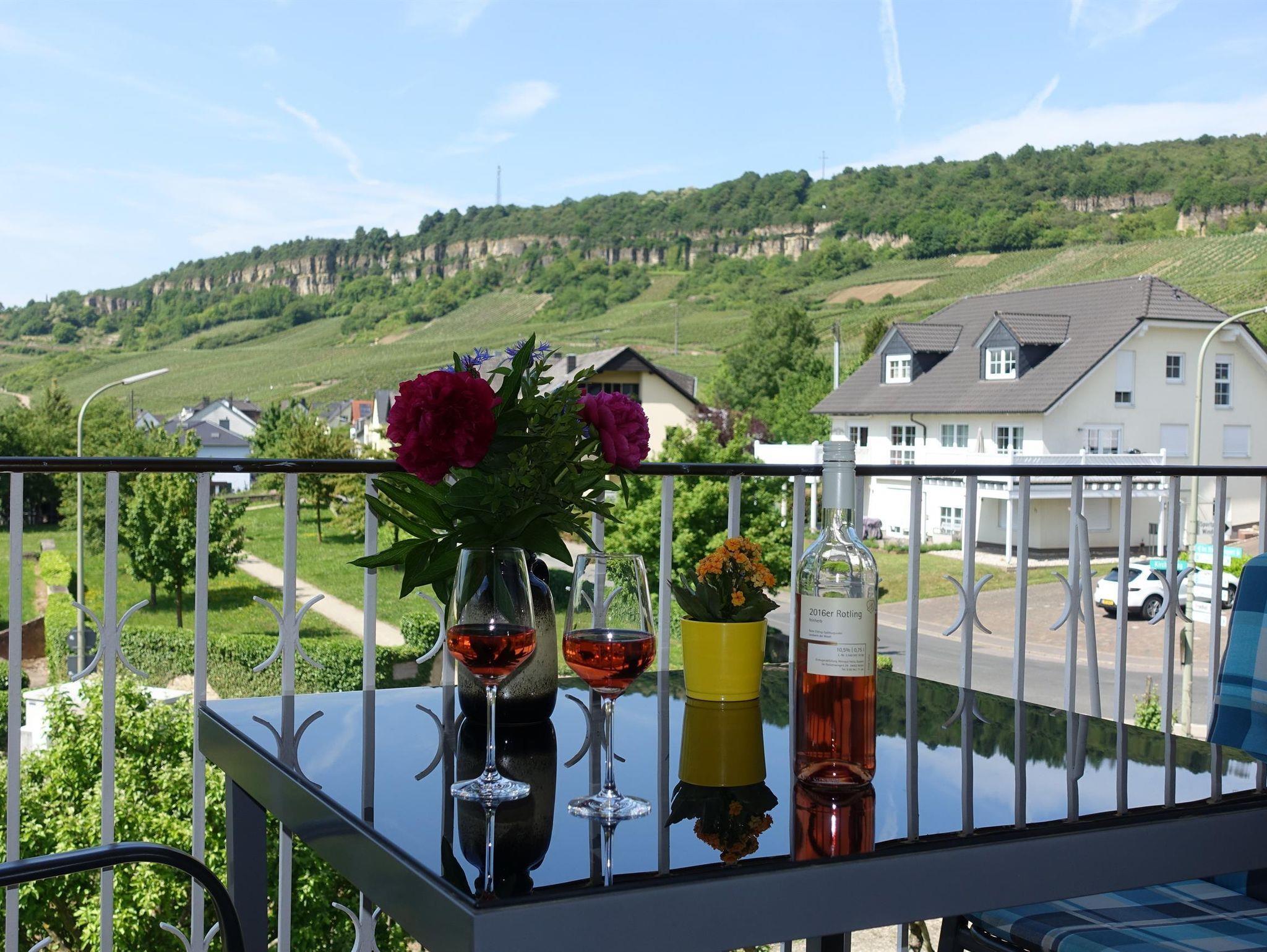 Fühlen Sie sich in unseren geräumigen Gästezimmern wie zu Hause! Jedes Zimmer ist ausgestattet mit TV, Dusche, WC und Balkon. Von unseren Gästezimmern aus können Sie einen schönen Ausblick auf die Mosel oder die Dolomit-/Kalkfelsen genießen.