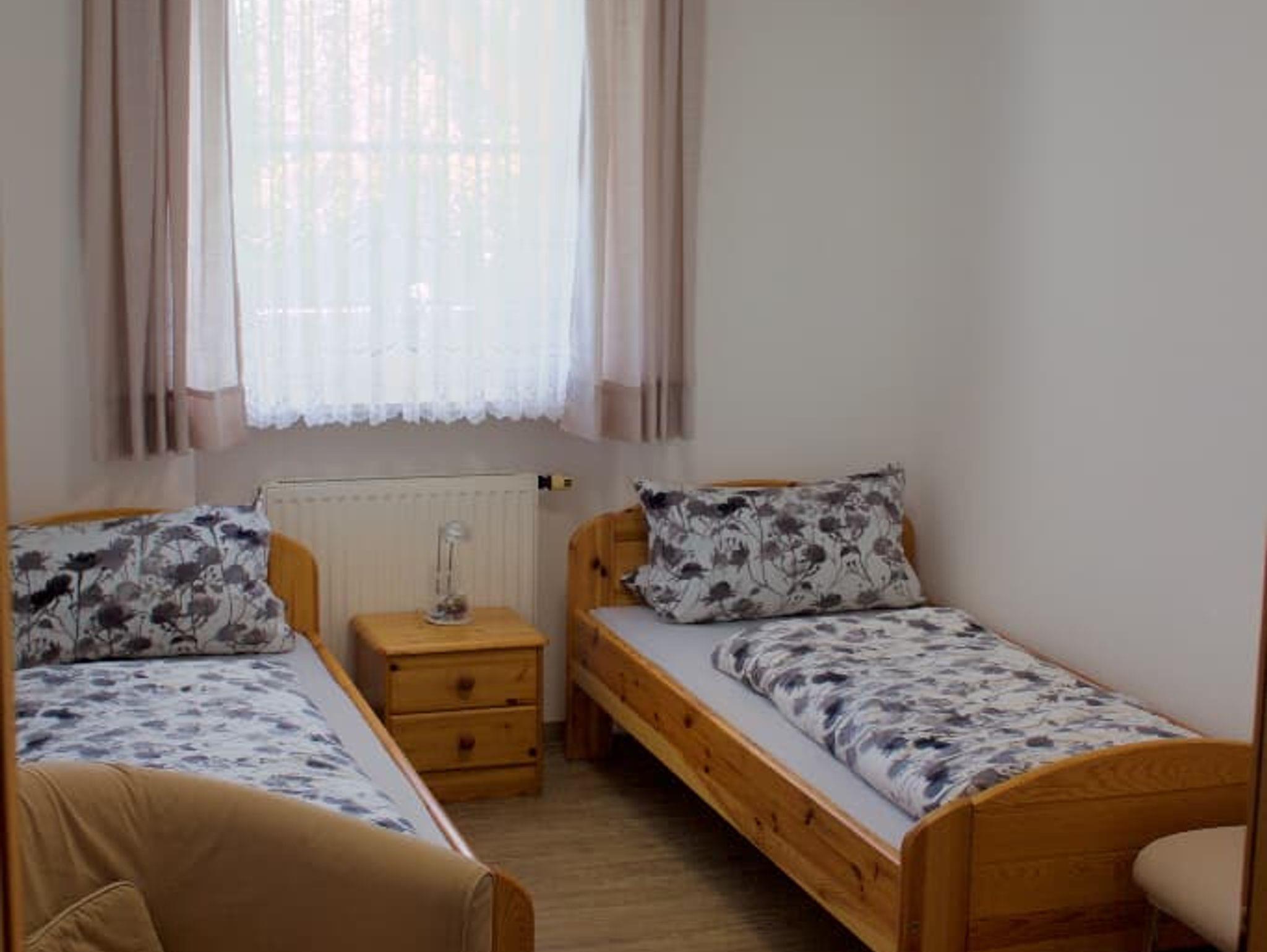 Die Ferienwohnung mit eigener Terrasse ist perfekt für Familien geeignet. Die ebenerdige Wohnung ist barrierefrei. Auf 53 qm bietet die Wohnung 2 Schlafzimmer. Davon ist eines mit einem Doppelbett und das andere mit zwei Einzelbetten ausgestattet. Die Wohnküche ist mit Backofen, Kaffeemaschine, Geschirrspüler, Kühlschrank und Toaster voll ausgestattet. Das Badezimmer verfügt über Dusche, WC und Waschbecken. Das WLAN steht Ihnen während Ihres Aufenthaltes kostenfrei zur Verfügung. Bettwäsche ist ebenfalls im Grundpreis enthalten. Bitte beachten Sie, dass Handtücher nicht kostenfrei vorhanden sind. Für Räder und Sportgeräte bieten wir Ihnen gerne kostenfreie Abstellmöglichkeiten.