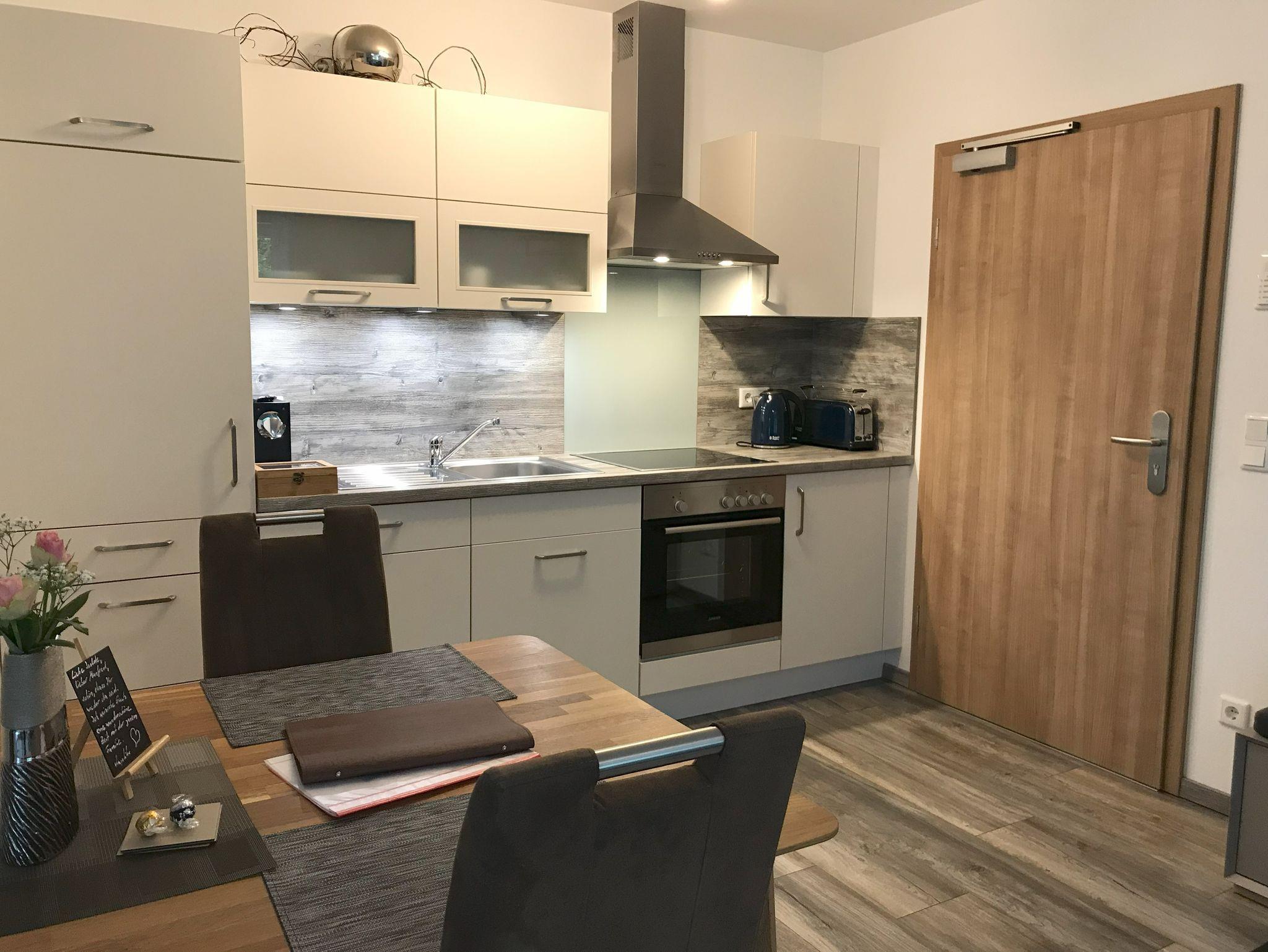 Unser modern und gemütlich eingerichtetes 2 - Zimmer - Appartement mit 50 qm für max. 2 Personen verfügt über ein schönes Schlafzimmer, ein Wohnzimmer mit Wohnküche, einen großen überdachten Balkon und ein modernes Badezimmer mit begehbarer barrierefreier Dusche.