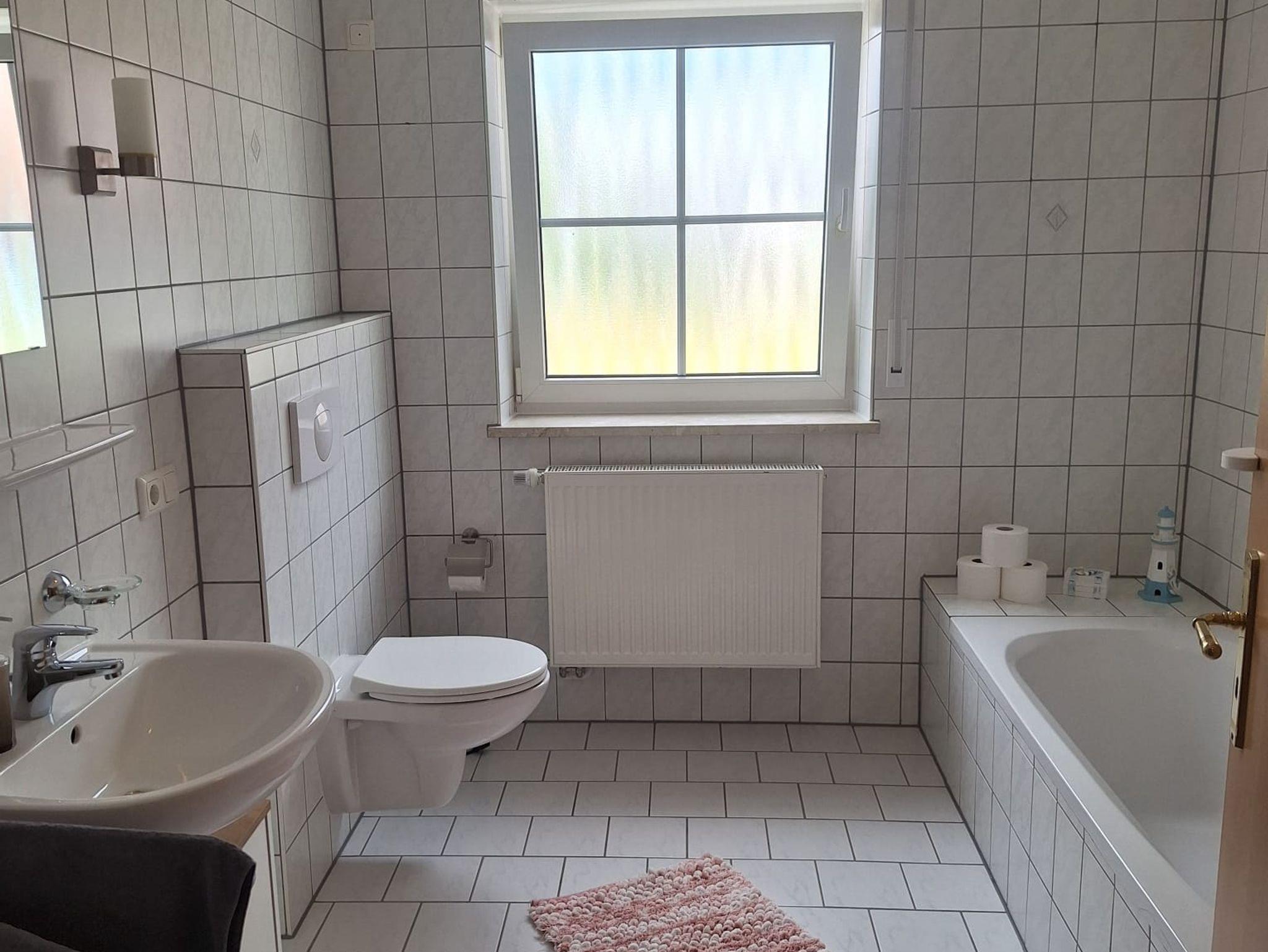 Das großzügige Tageslichtbad ist mit einer Dusche und einer Badewanne ausgestattet – perfekt für schnelle Erfrischung am Morgen oder ein entspannendes Bad am Abend.