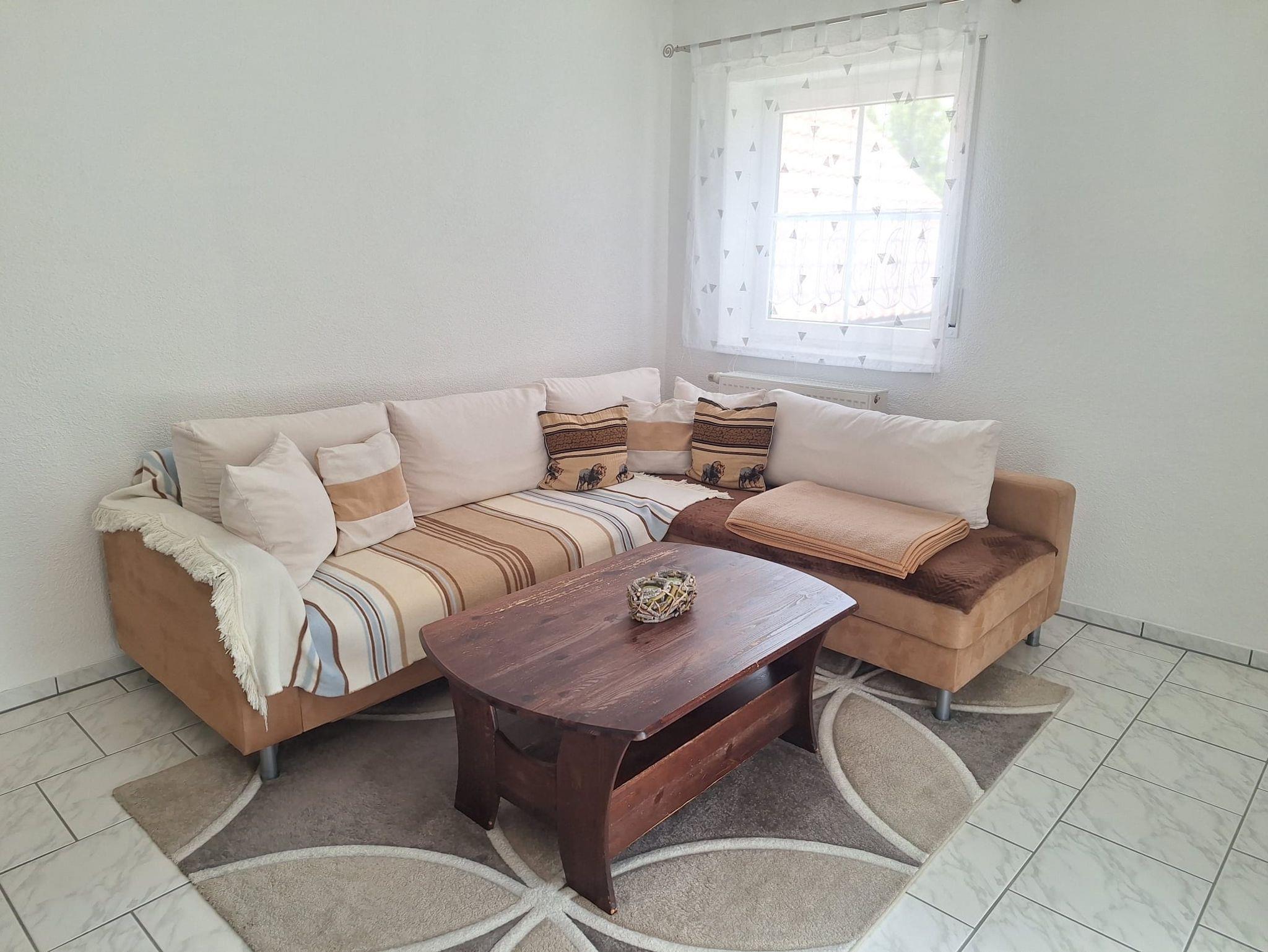 Das Wohnzimmer bietet ausreichend Platz zum Entspannen und Arbeiten – WLAN ist selbstverständlich vorhanden.