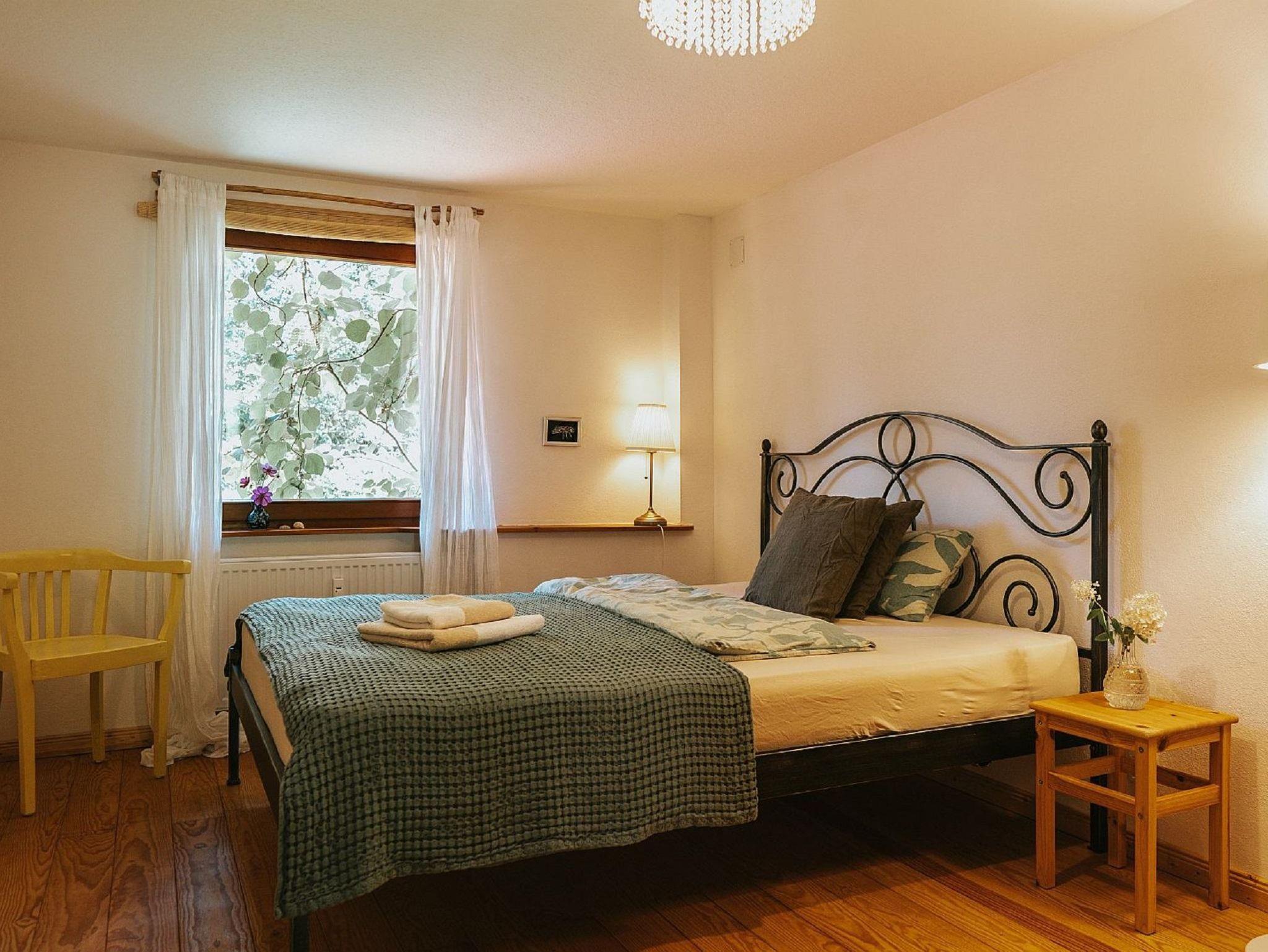 Die 55 qm große Ferienwohnung und der Behandlungsraum sind mit Mobiliar aus Vollholz, Lehmputz, Sumpfkalkfarbe, sowie Naturölen für die Holzböden kreiert worden. Die Wohnung besitzt ihren eigenen Hauseingang, sodass Sie ungestört die Ferienwohnung beziehen können. Ein Toaster, Wasserkocher und eine Kaffeepressmaschine sind selbstverständlich in der Küche. Der Kühlschrank verfügt über ein Tiefkühlfach. Das Bett misst eine Breite von 1,60 Meter, das gemütliche Schlafsofa im Wohnzimmer ebenfalls. Die Baumwoll-Bettwäsche, 2 Handtücher/Person und ein Fön sind im Preis inklusive. Das Bad verfügt über eine begehbare Dusche. Eine eigene Waschmaschine und Trockner sind gegen Aufpreis gerne nutzbar! WLAN ist jederzeit verfügbar. Fahrräder können gerne in der Garage abgestellt werden. Im ganzen Haus wird Ökostrom bezogen! Das Haus ist ein Nichtraucherhaus.