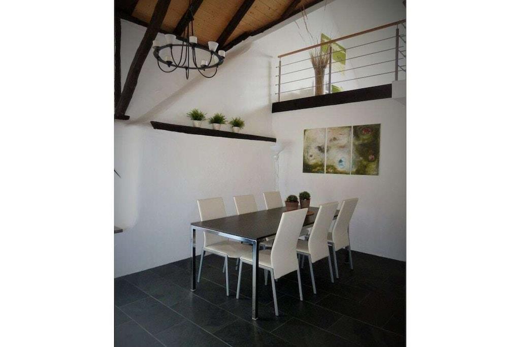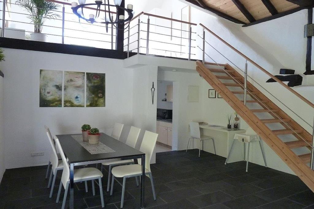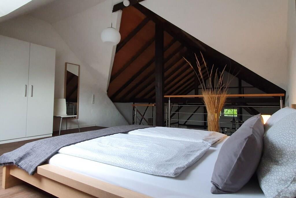 Our apartment is located in the former barn of a renovated farmhouse from 1876. The apartment was completed in September 2012 and offers approximately 72 m² living space for 1-4 people. The apartment is a non-smoking apartment with the division into hall, living-dining room with floor heating, sleeping gallery with double bed, new kitchen, bathroom and children's room with bunk bed. It can be reached via a separate entrance, at the outdoor area with grilling, bicycle shelter and garden furniture.