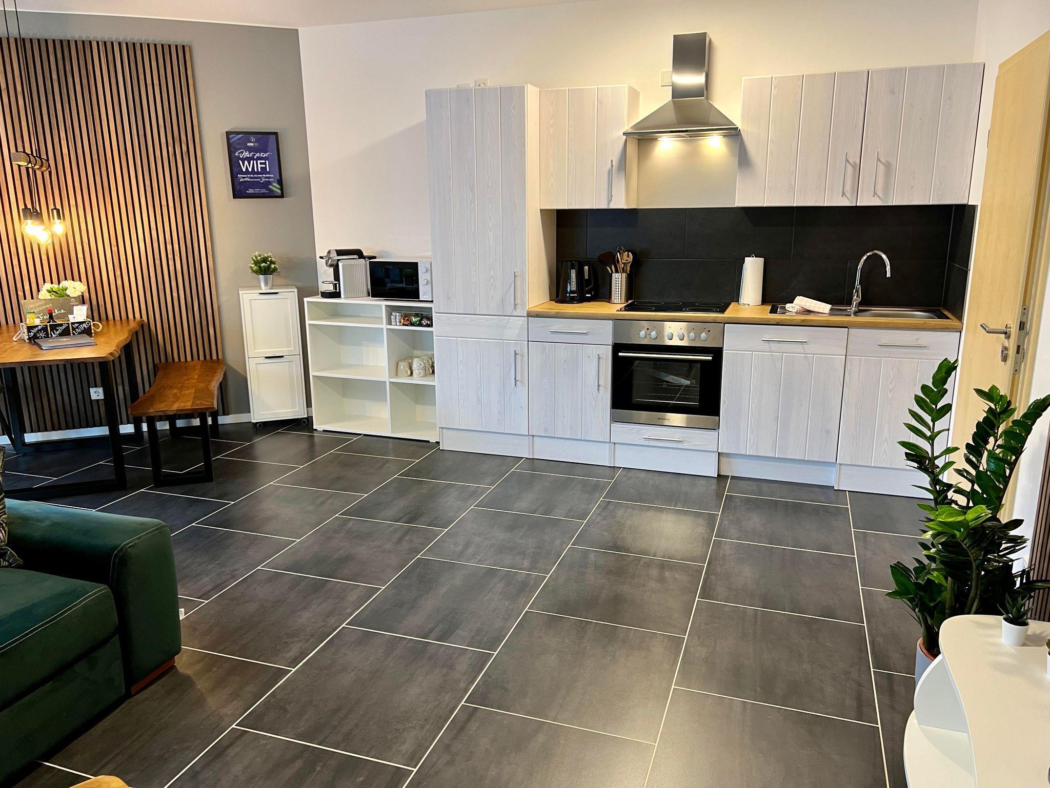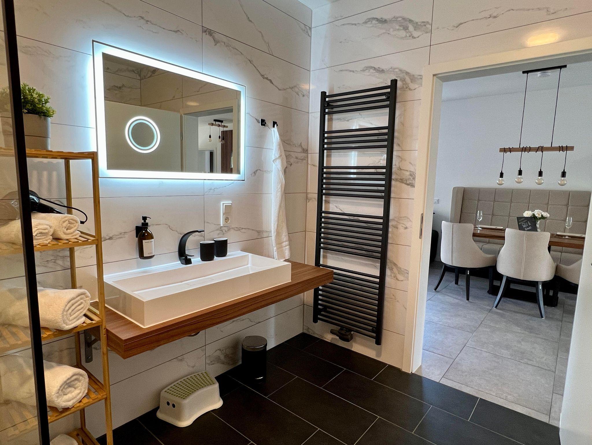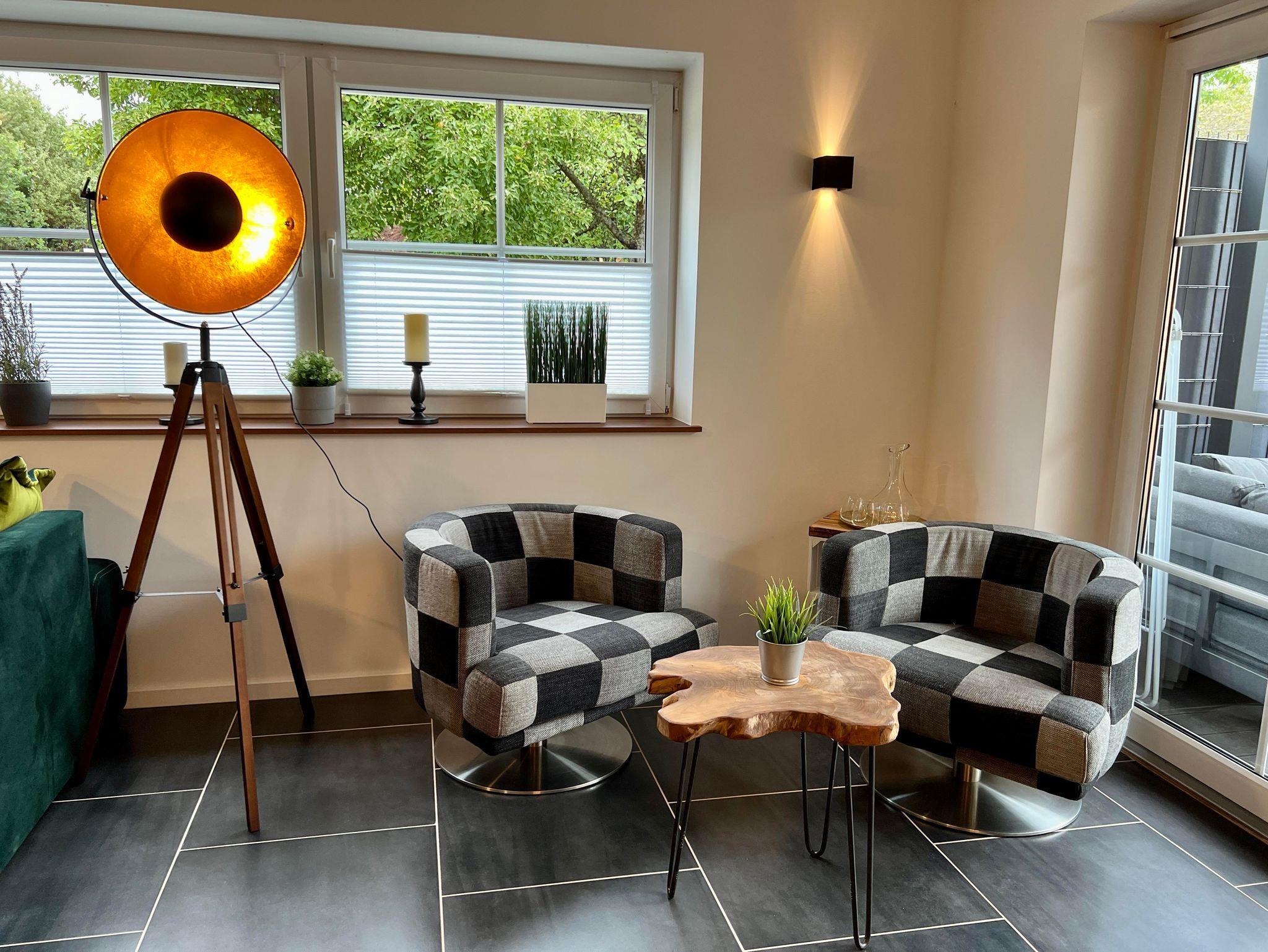 Die wunderschöne Ferienwohnung (90qm) für bis zu 3 Personen mit 1 Schlafzimmer (1 Doppelbett, 1 Einzelbett), einem großzügigen Bad mit ebenerdiger Dusche und stilvoll gestaltetem Wohn-Essbereich mit offener, voll ausgestatteter Küche bietet perfekten Wohnkomfort bei allen Gelegenheiten. Unsere Ferienwohnung der Luxusklasse verfügt neben Spülmaschine und Flachbild-TV über eine wunderschöne, ruhig gelegene Terrasse, die rundherum Sichtschutz bietet. Diesen brauchen Sie auch, wenn Sie in Ihrem persönlichen Whirlpool oder der Fasssauna im Garten einfach nur entspannen möchten!